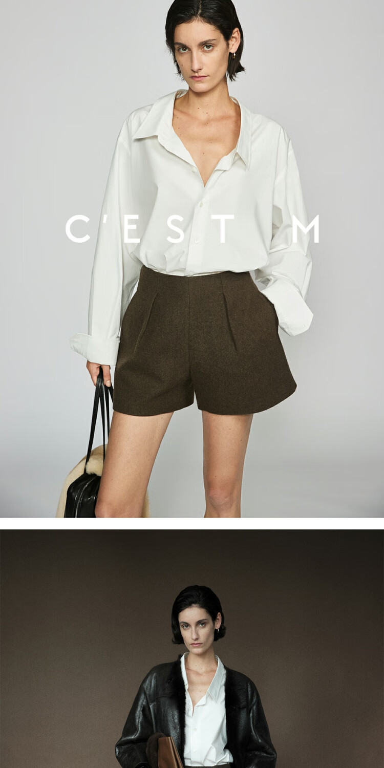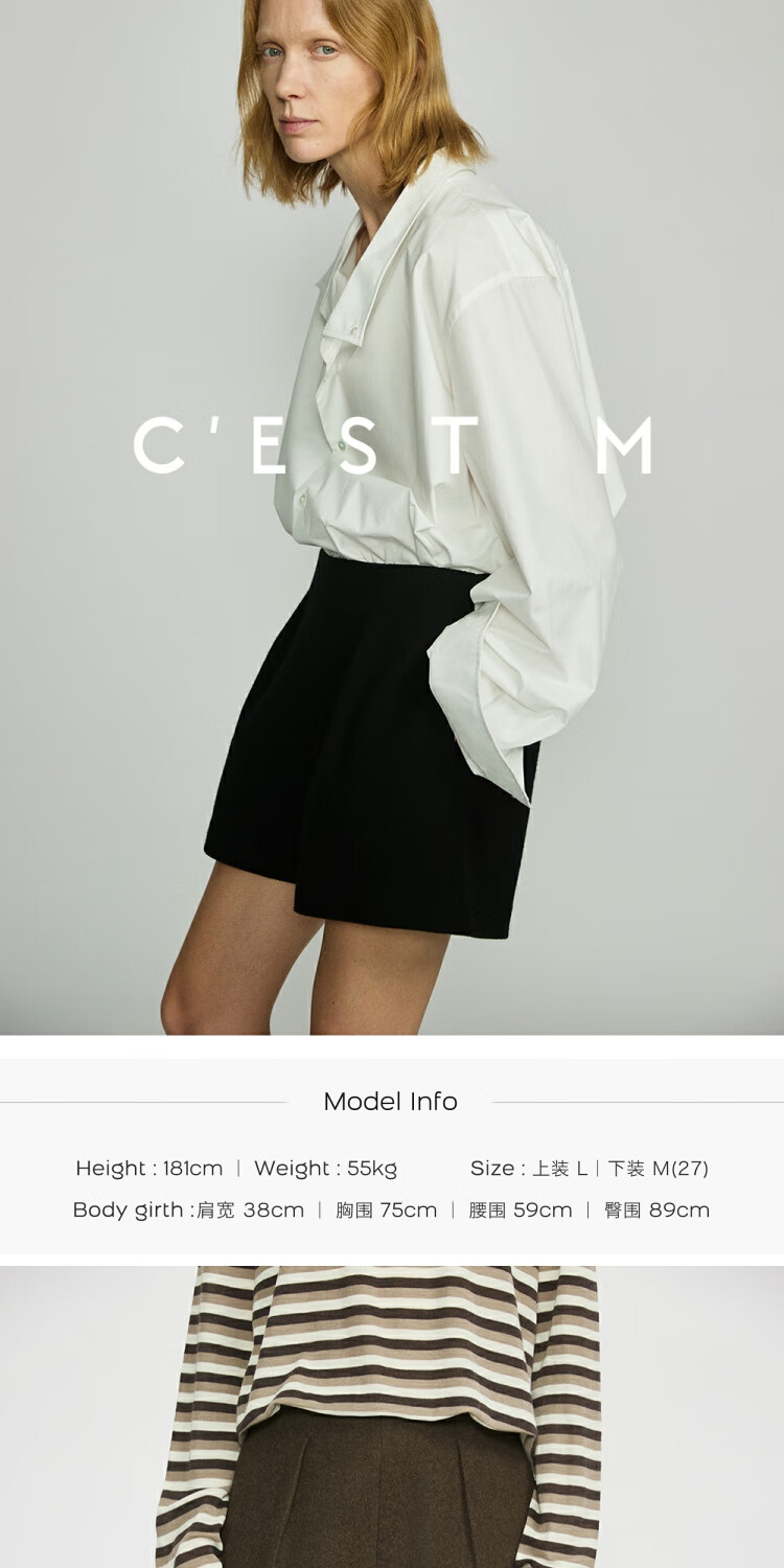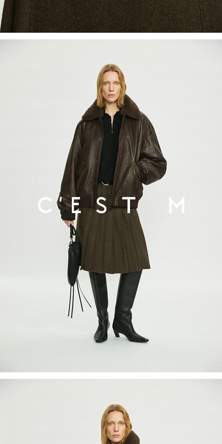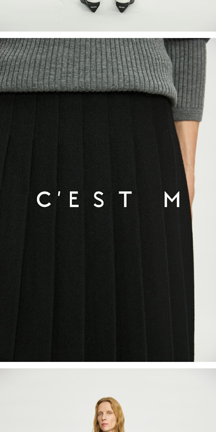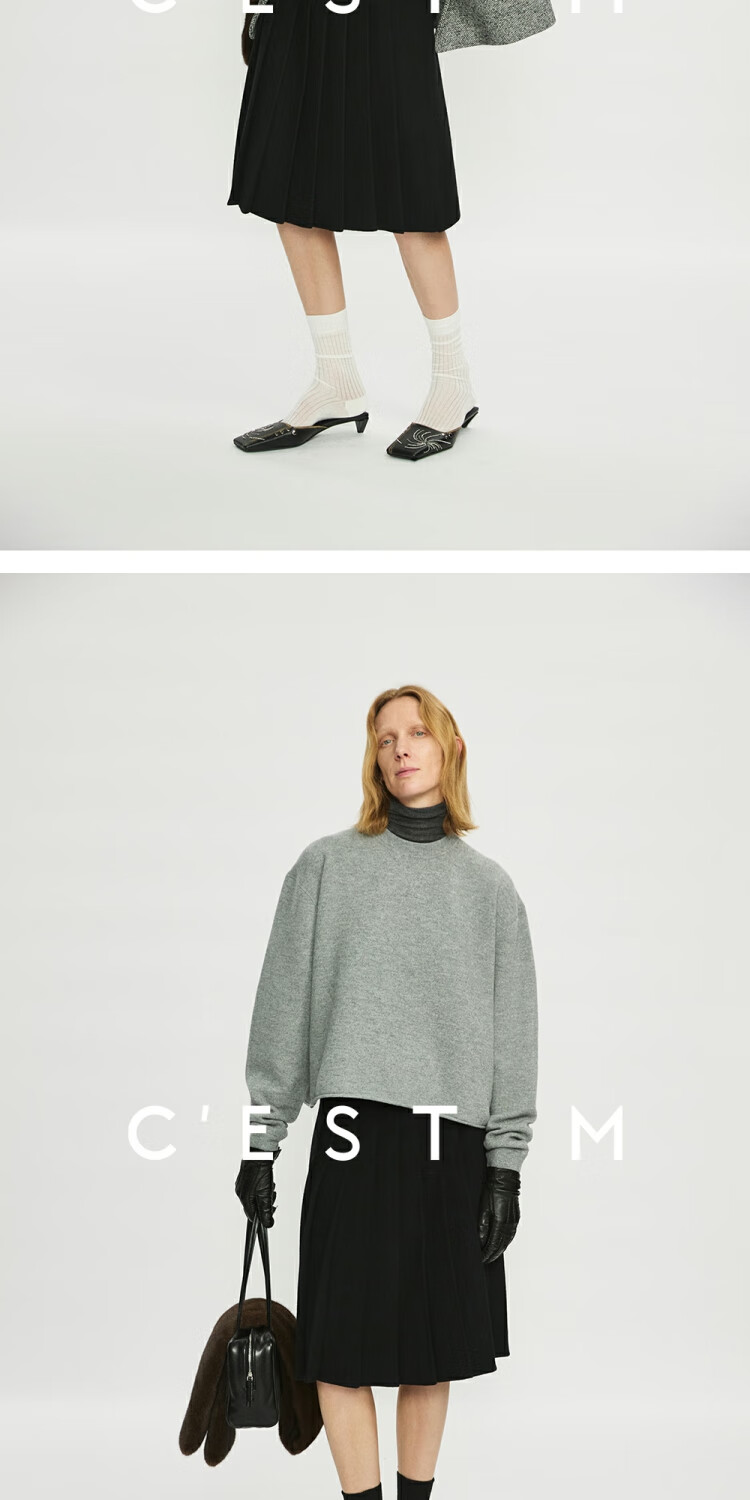 C EST M丨M1U style show intellectual style Exquisite and elegant wool pleated midi skirt & bud shorts Cuban brown green (shorts) S Ready in stock