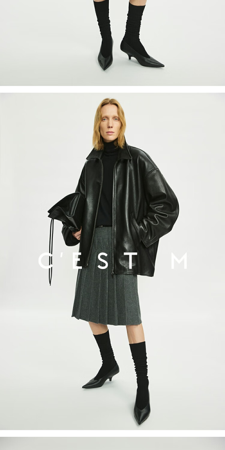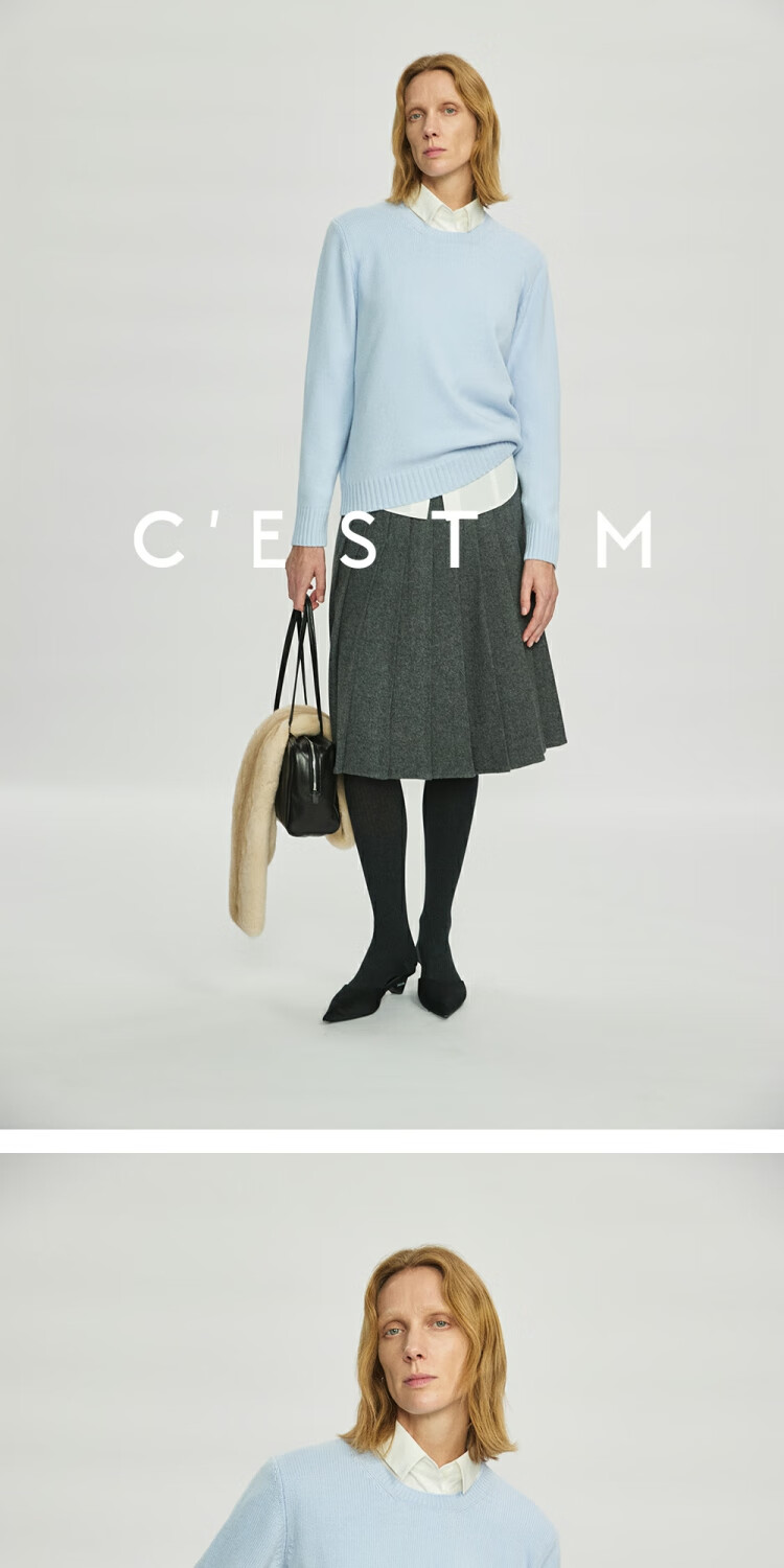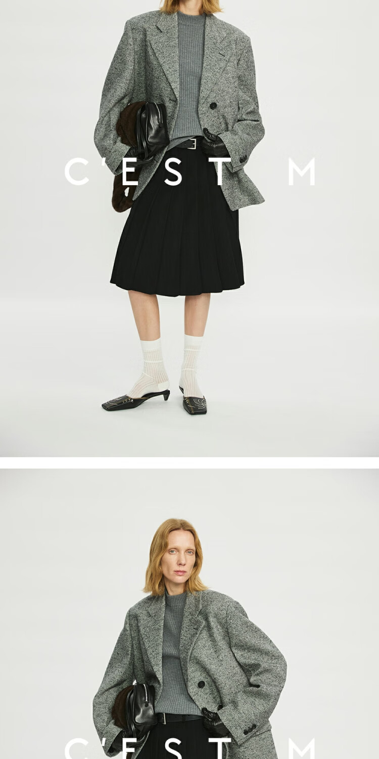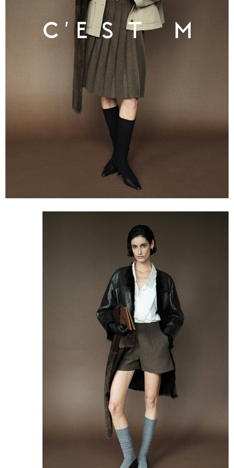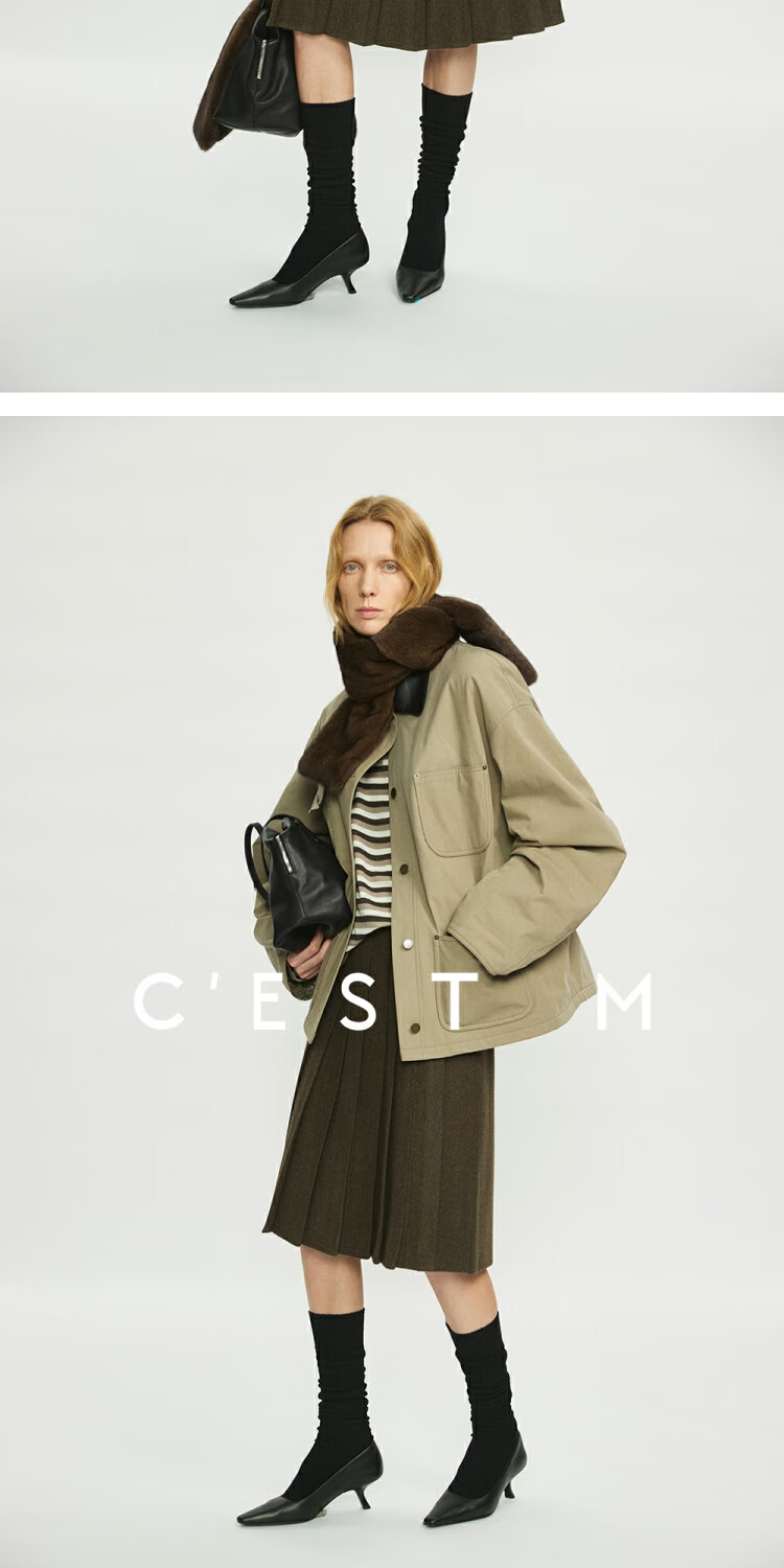 C EST M丨M1U style show intellectual style Exquisite and elegant wool pleated midi skirt & bud shorts Cuban brown green (shorts) S Ready in stock