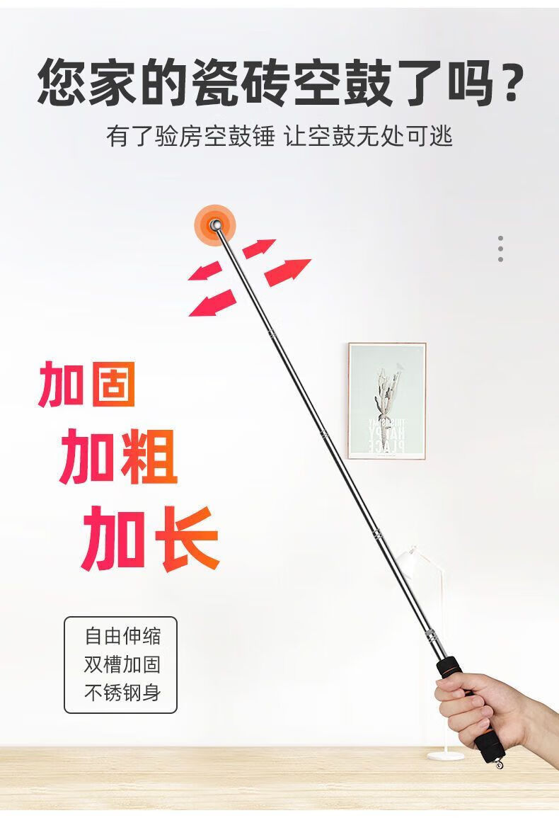 FANCYCHIC Home Inspection Empty Drum Hammer Extra Thick Ceramic Tile Knocking Inspection Hammer Flagpole Bold and Thickened Extra Long Telescopic Rod Home Inspection Tool Set Telescopic Integrated丨Replace When Used with a New one丨Empty Drum Test in Seconds 100cm Long丨One Marker