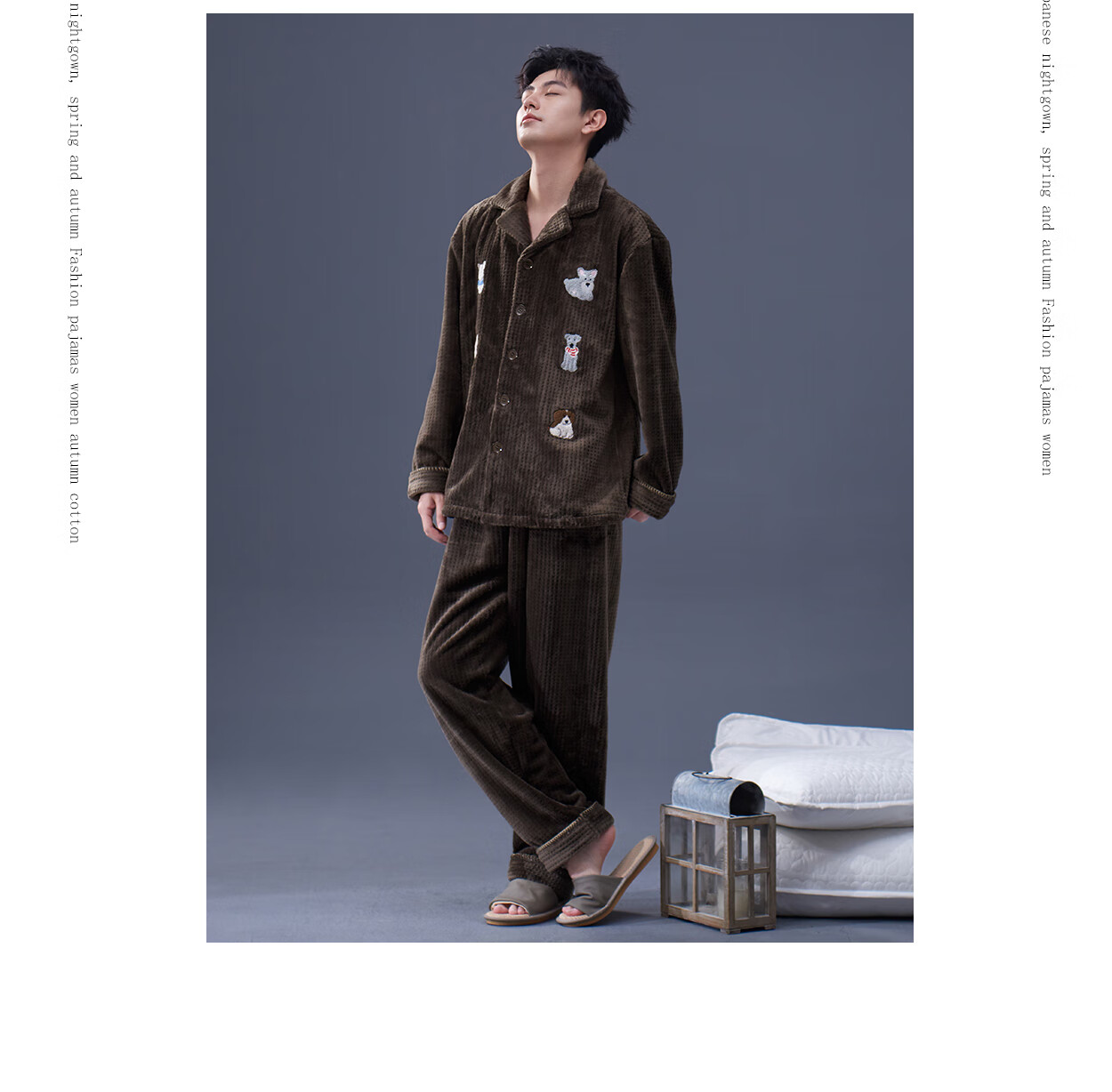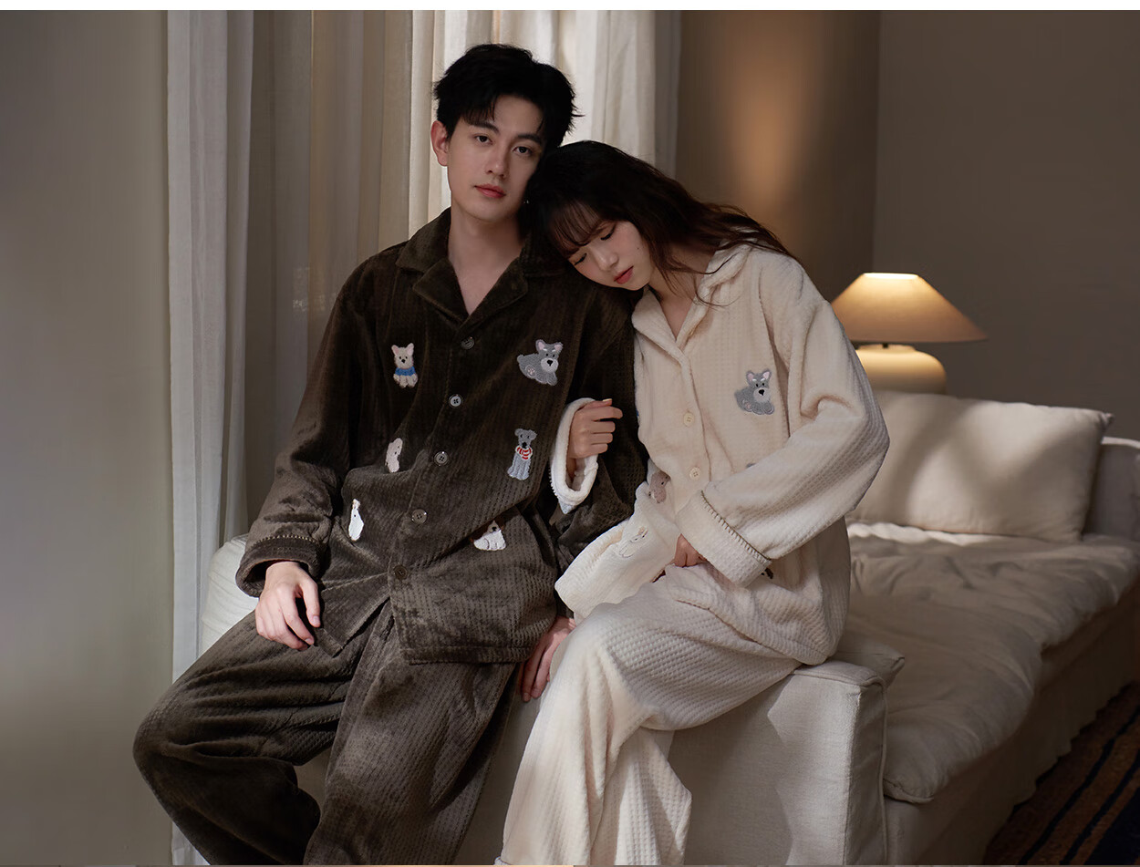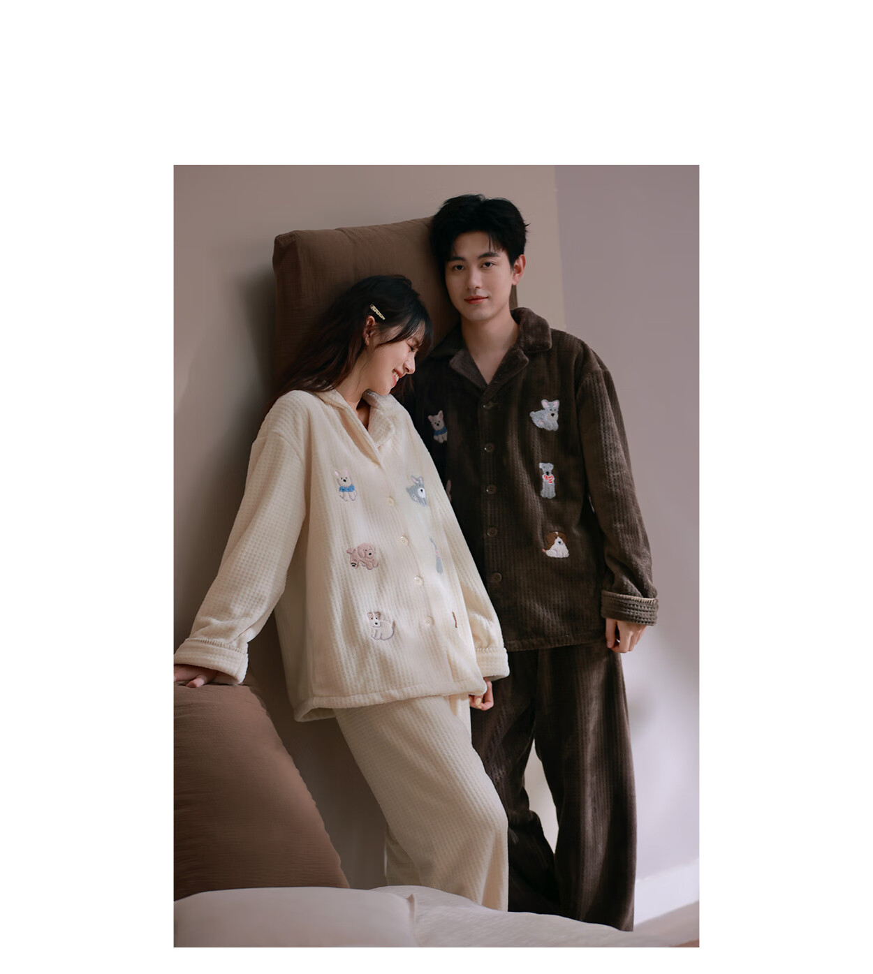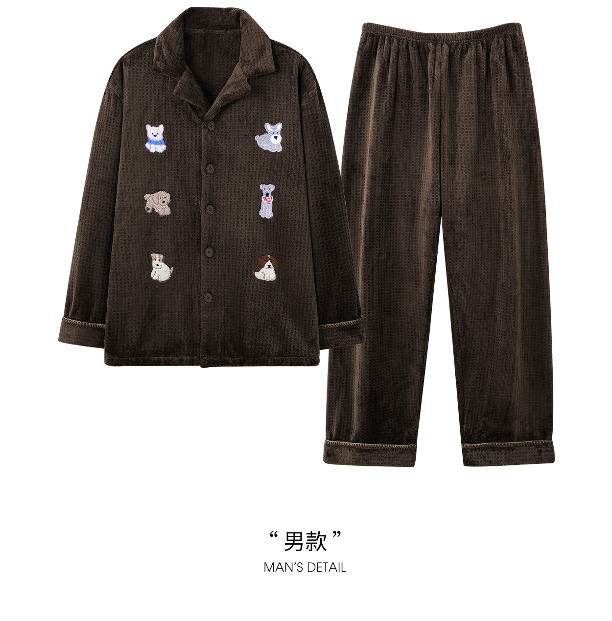 Princess Mark flannel couple pajamas for women in winter cute puppy thickened velvet cartoon autumn and winter home clothes for men HZR92954-cute dog couple men's XL