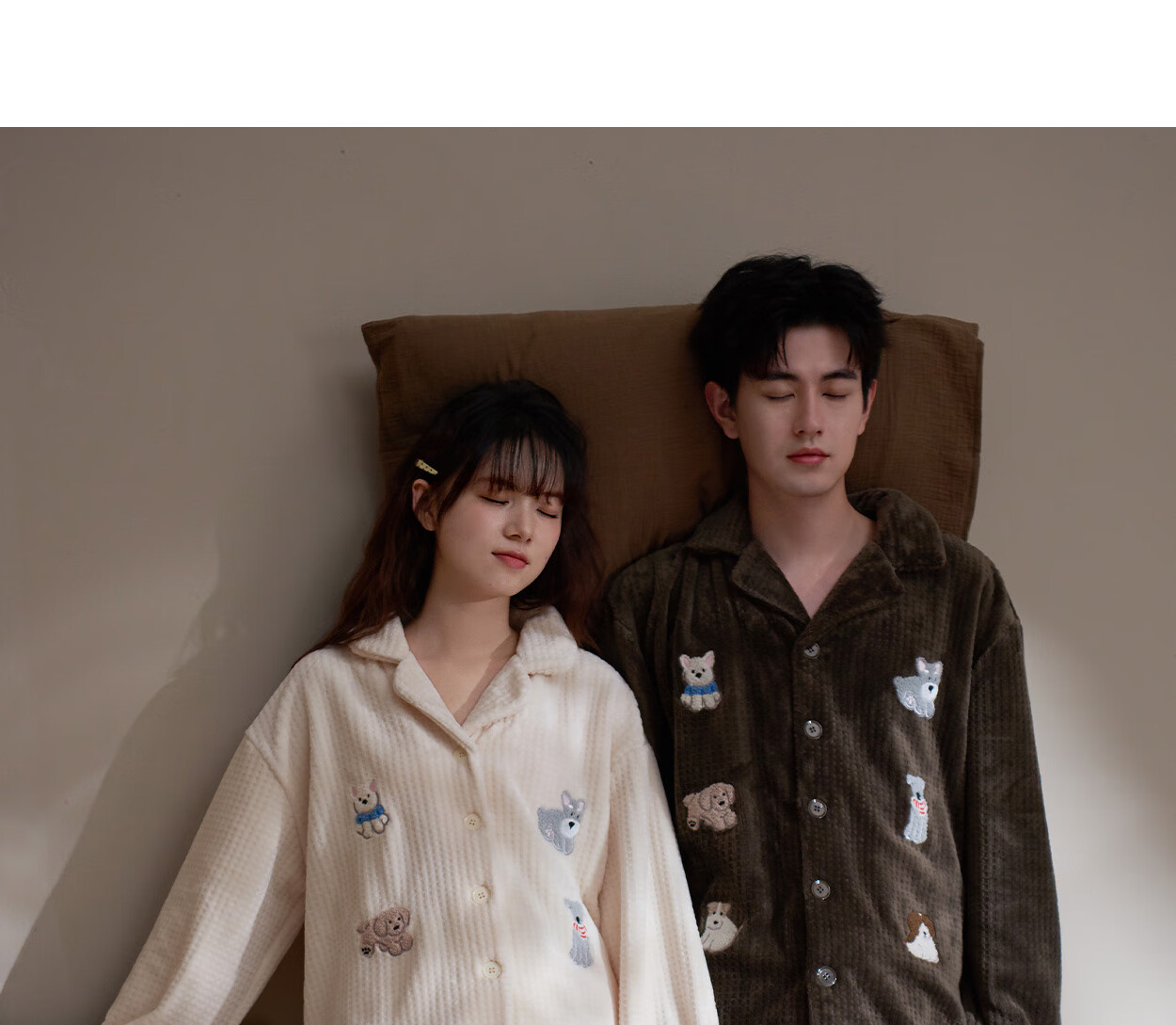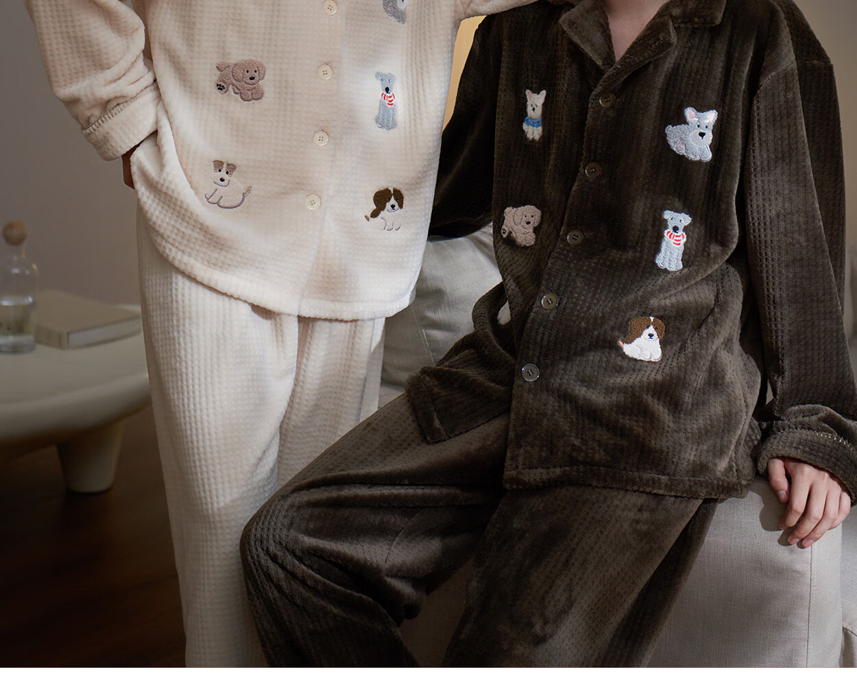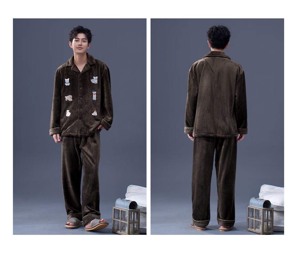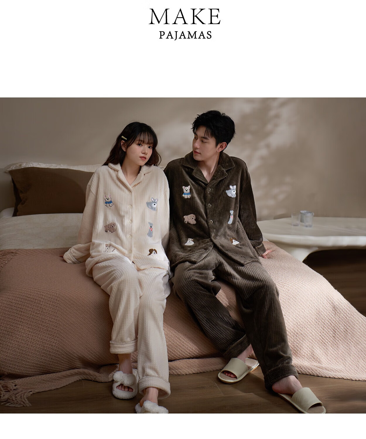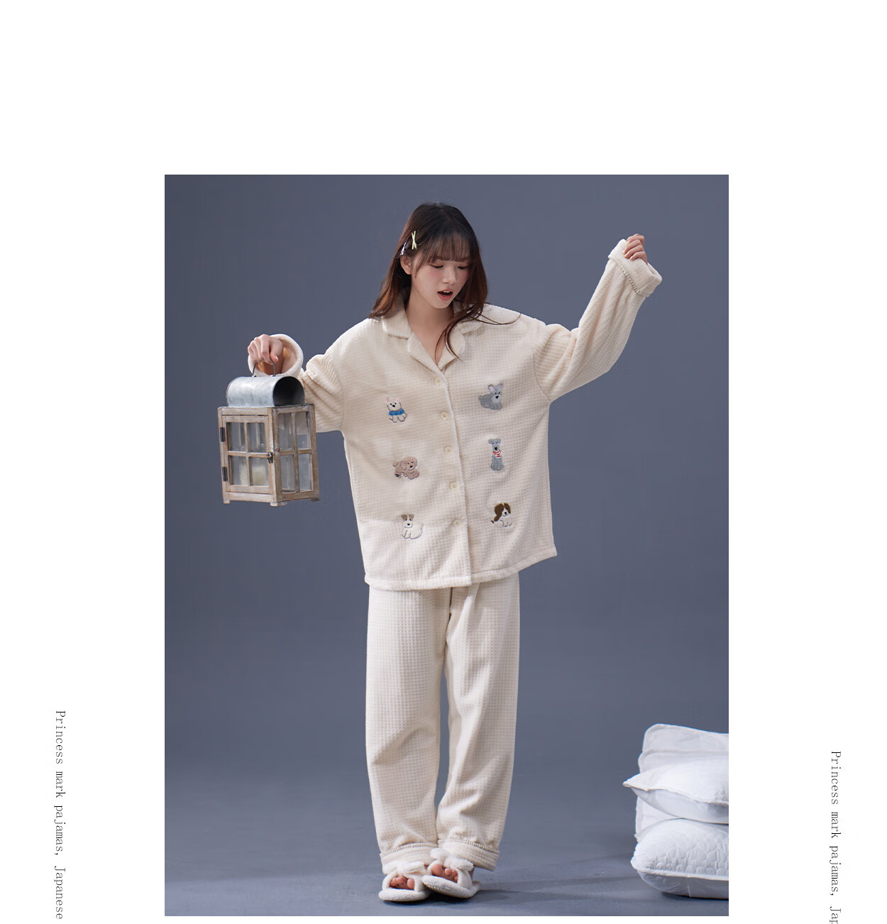 Princess Mark flannel couple pajamas for women in winter cute puppy thickened velvet cartoon autumn and winter home clothes for men HZR92954-cute dog couple men's XL