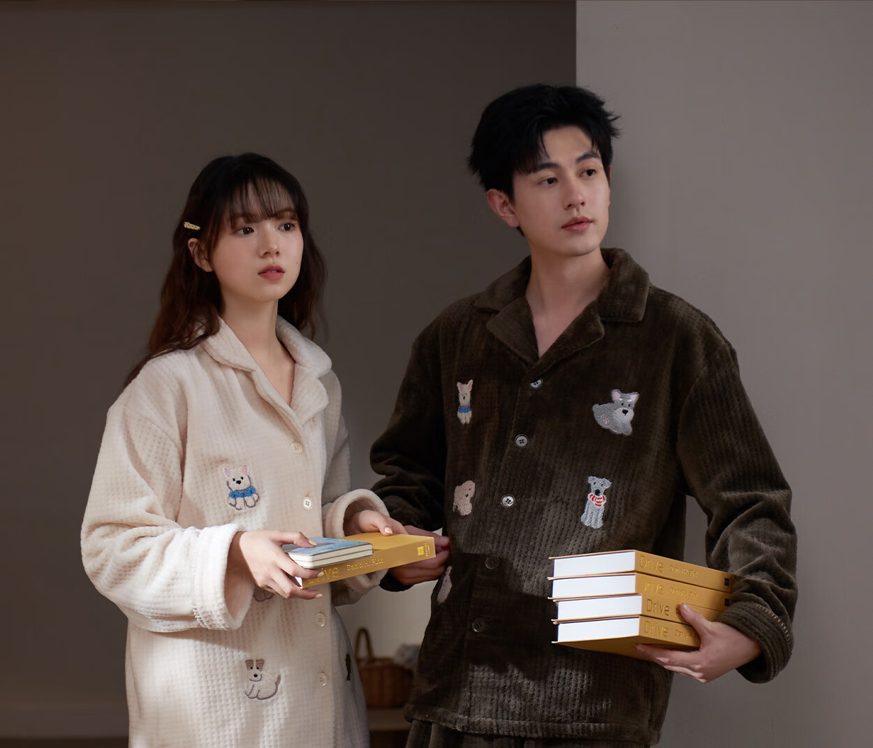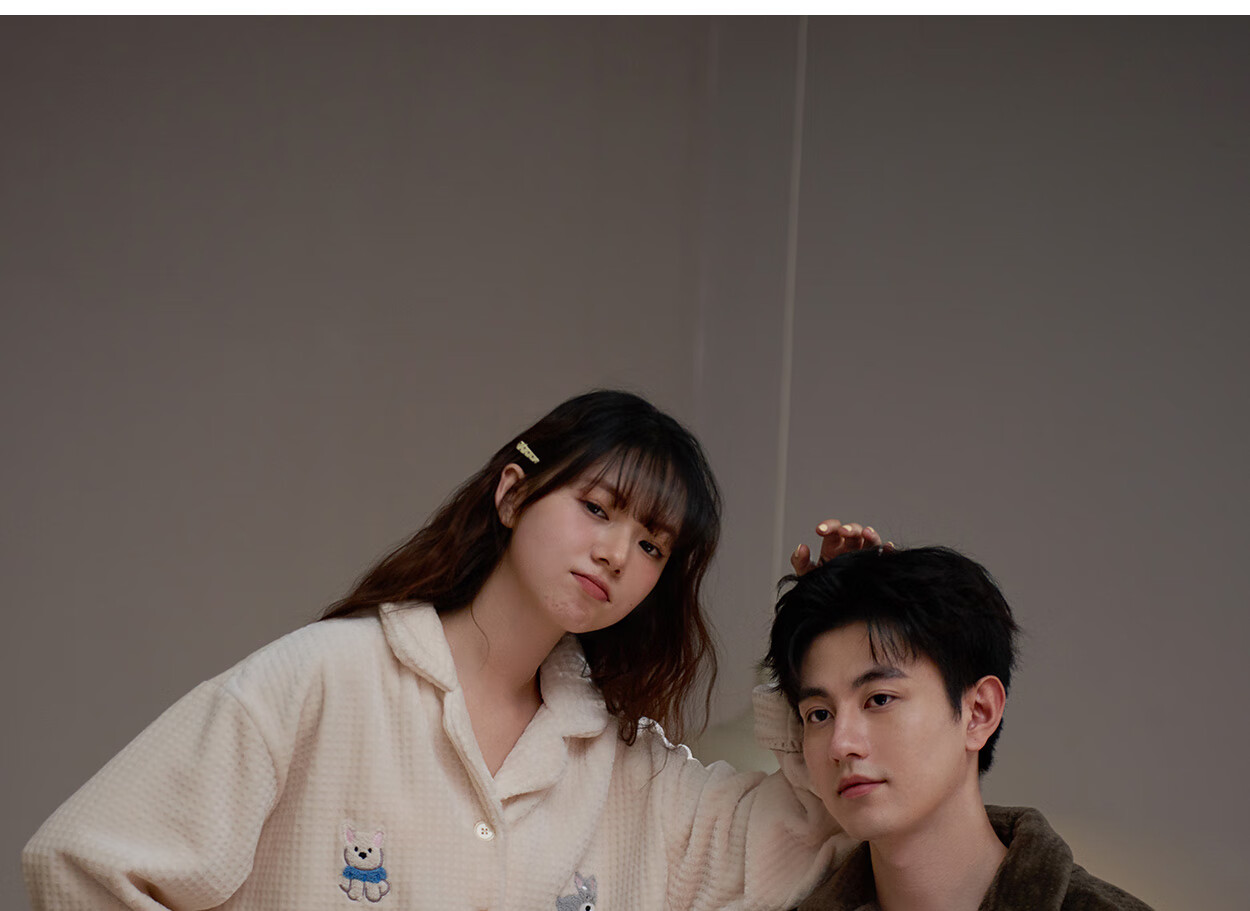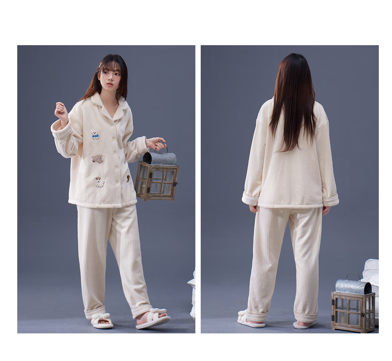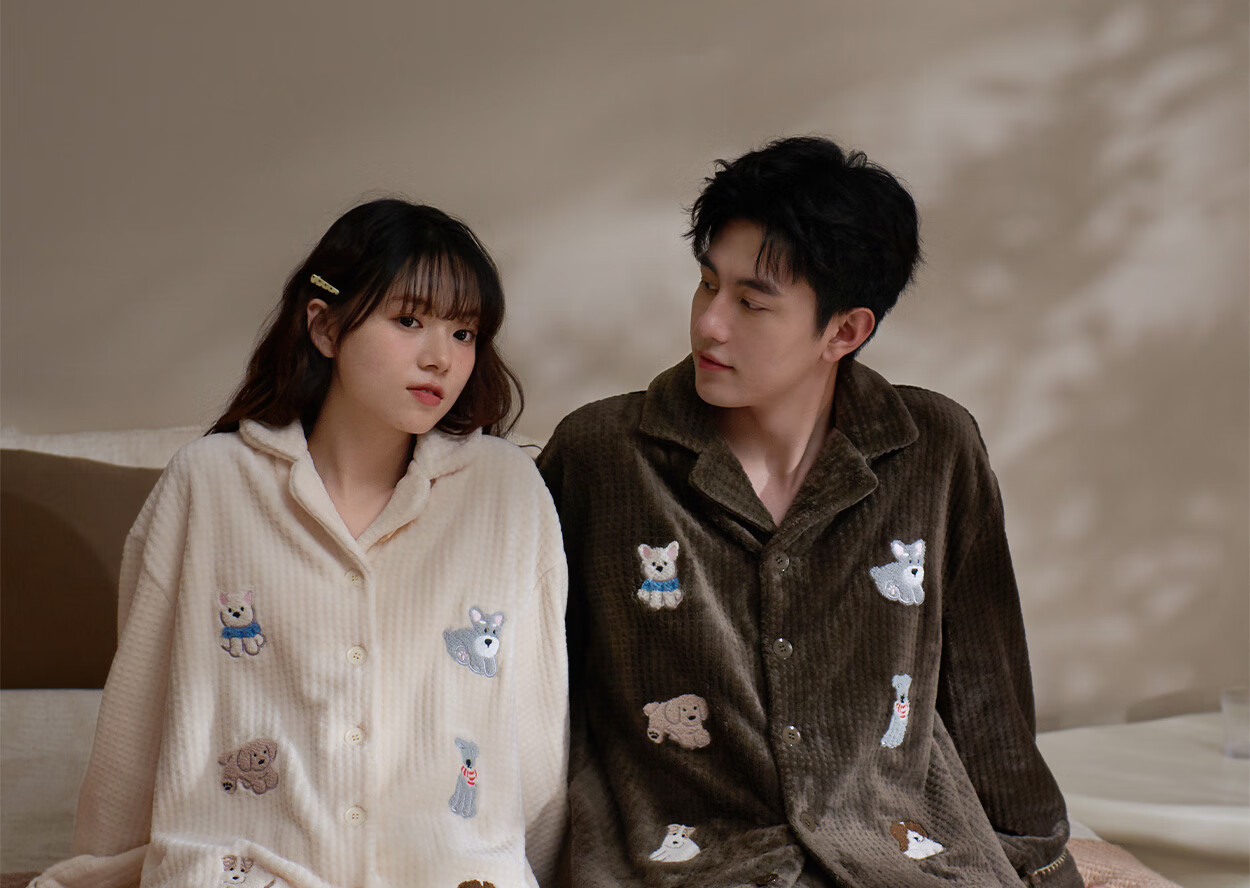 Princess Mark flannel couple pajamas for women in winter cute puppy thickened velvet cartoon autumn and winter home clothes for men HZR92954-cute dog couple men's XL