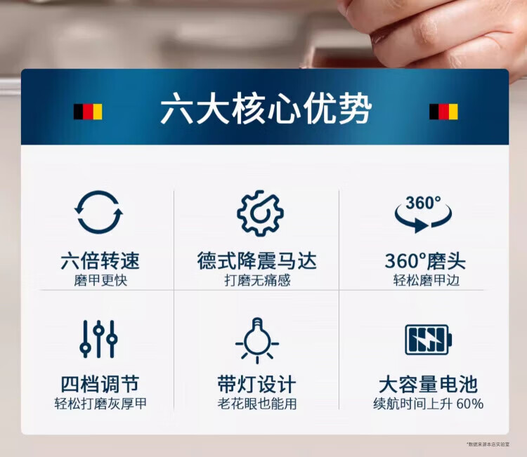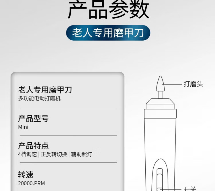 Mi Hong German electric nail clipper fully automatic hand and foot dual-use original nail polisher old man thick polisher gray trimming toenail white nail polisher shot 1 shot 6 4-speed adjustment to enhance horsepower