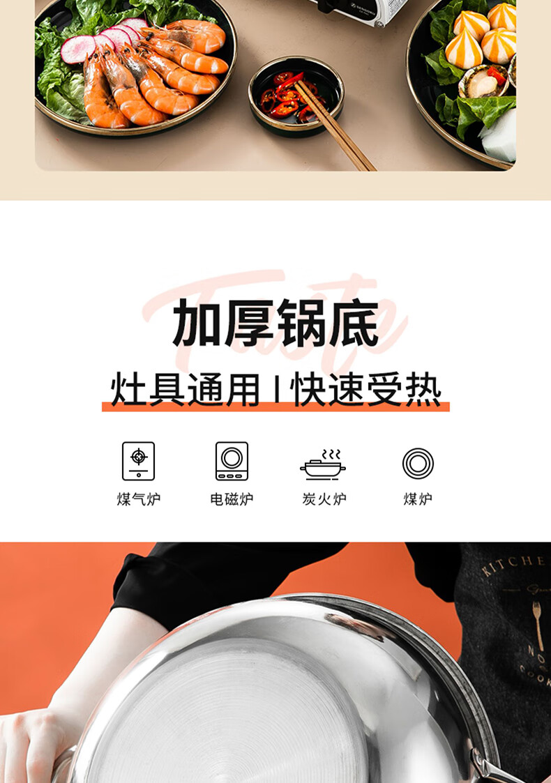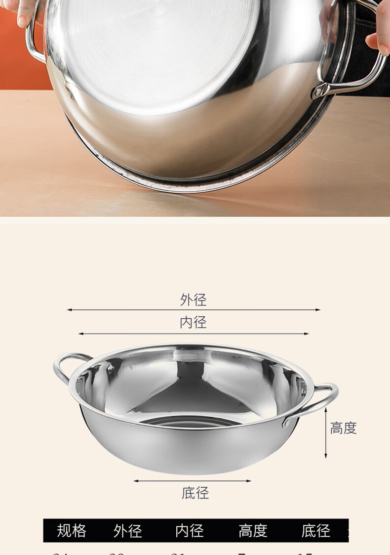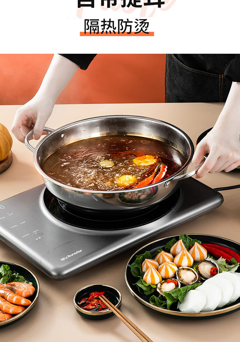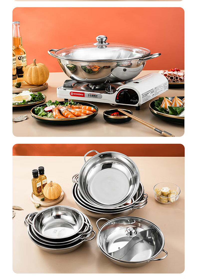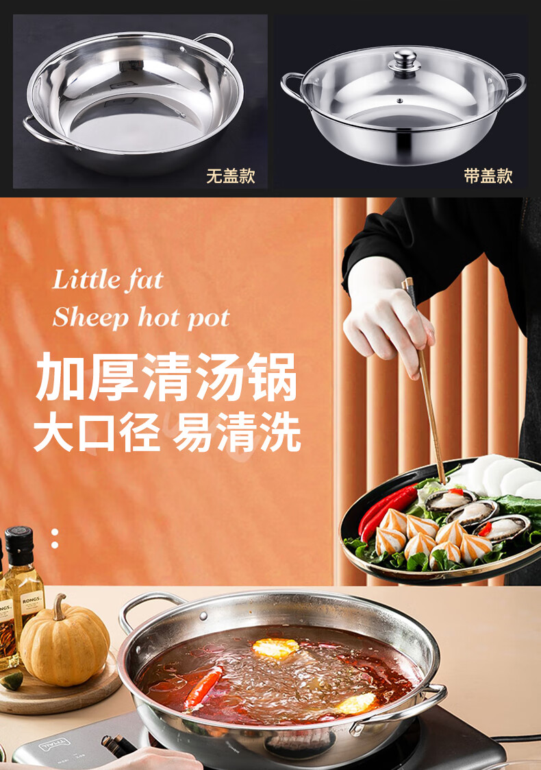 Special hot pot pot, clear soup pot, porridge and stew pot, gas stove, induction cooker, stainless steel hot pot basin, double-ear fat sheep pot, thickened with transparent lid, suitable for 6-8 people, 36cm 36cm