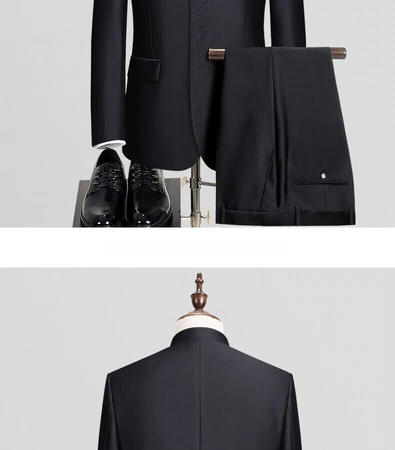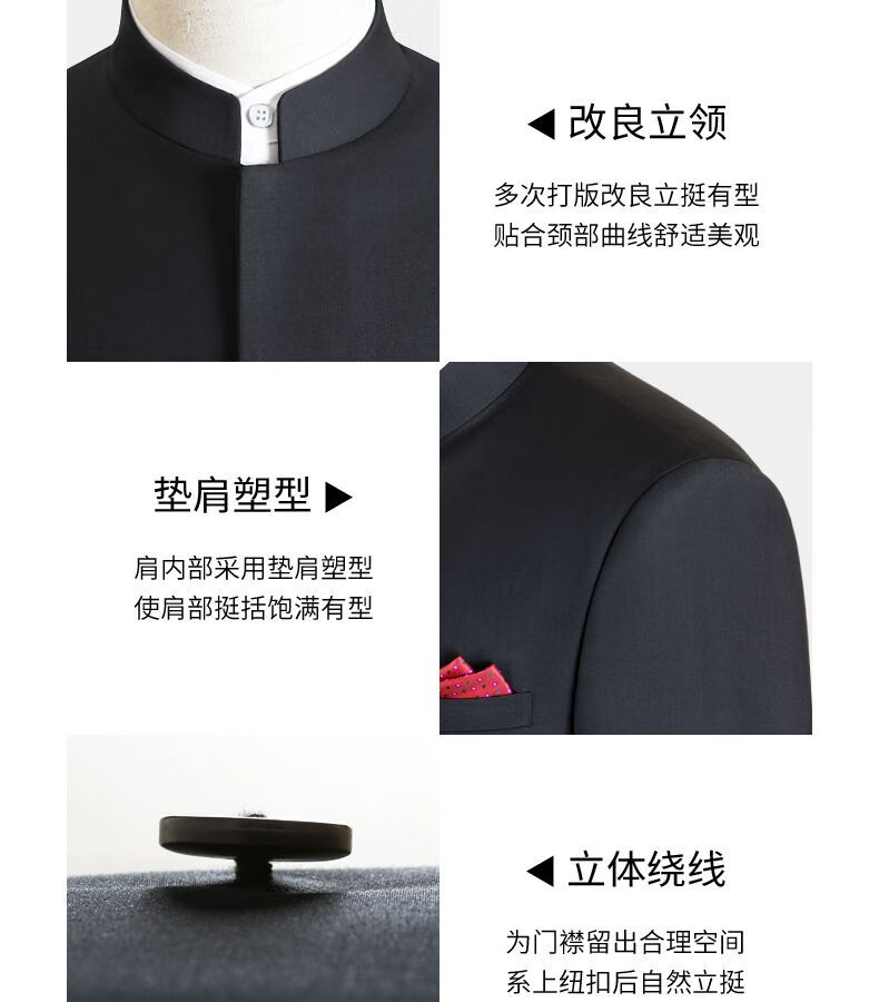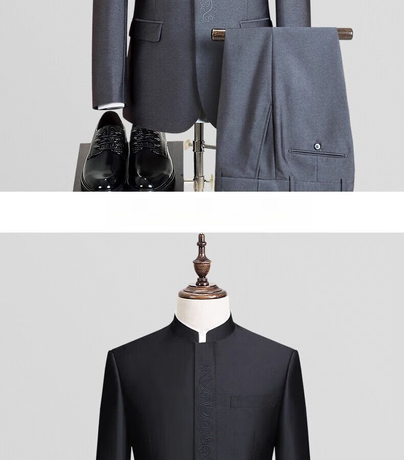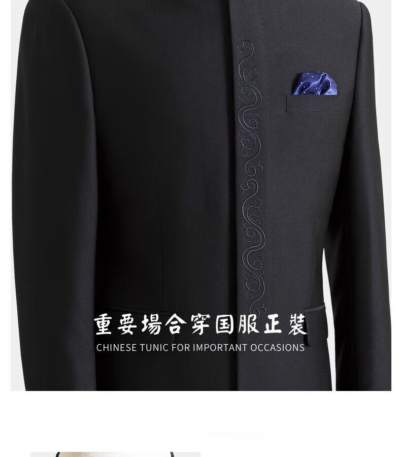 ROMON Chinese stand-up collar suit, Chinese tunic suit, men's embroidered Xiangyun wedding banquet dress, father's dress, spring and autumn gray single top + free pocket square, etc. 165A