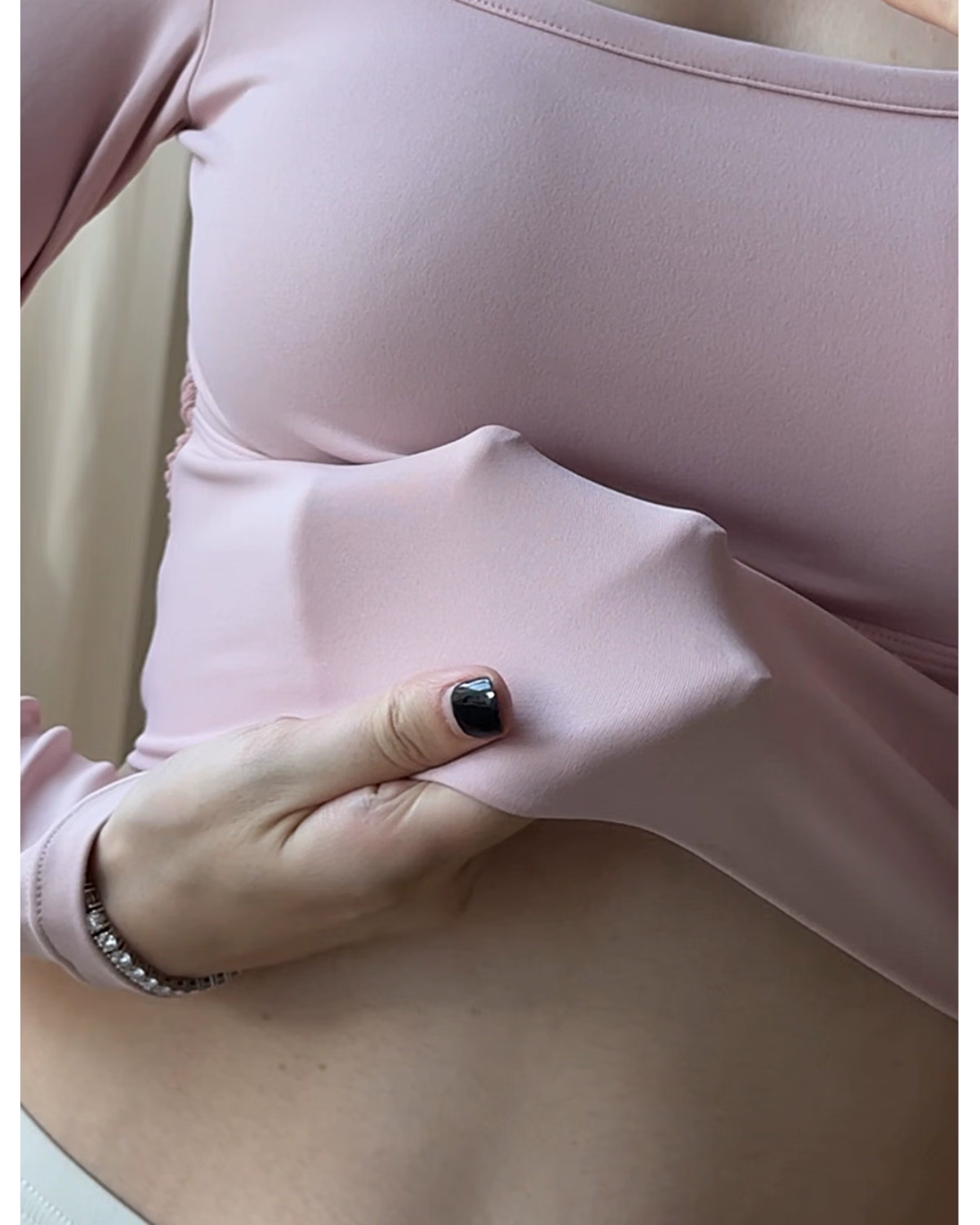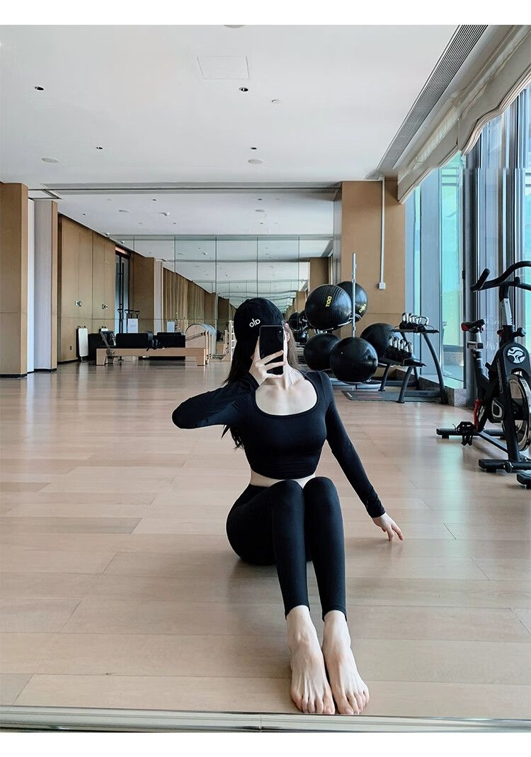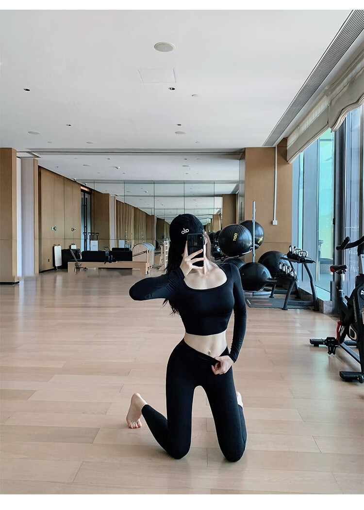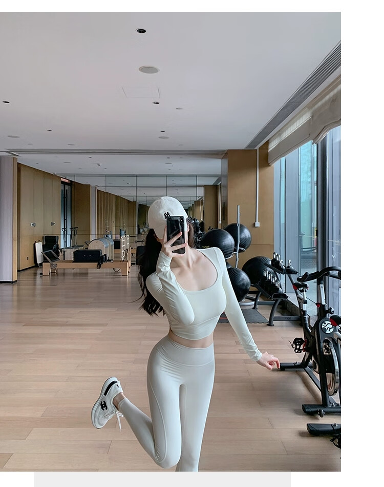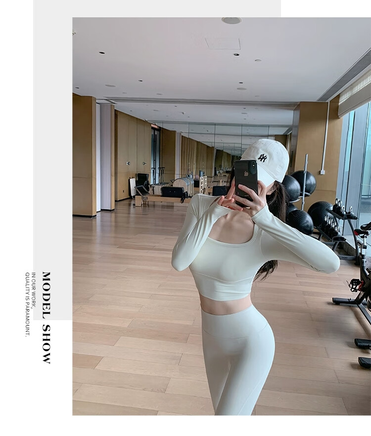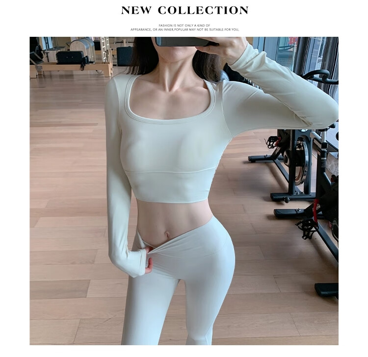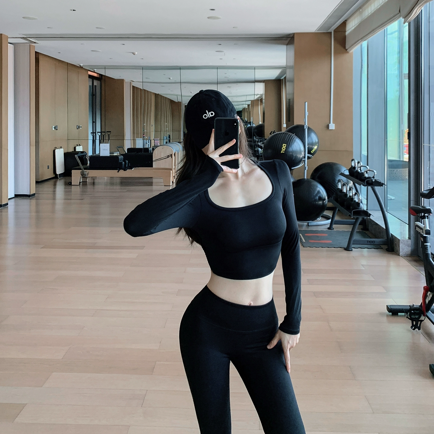 Autumn and winter yoga clothing, integrated chest pad, running training, long-sleeved, beautiful back, hollow fitness clothing, Pilates outer wear, light blue S