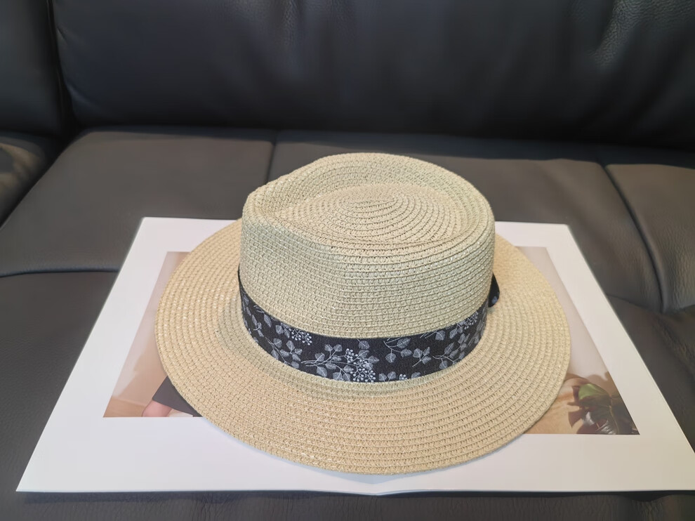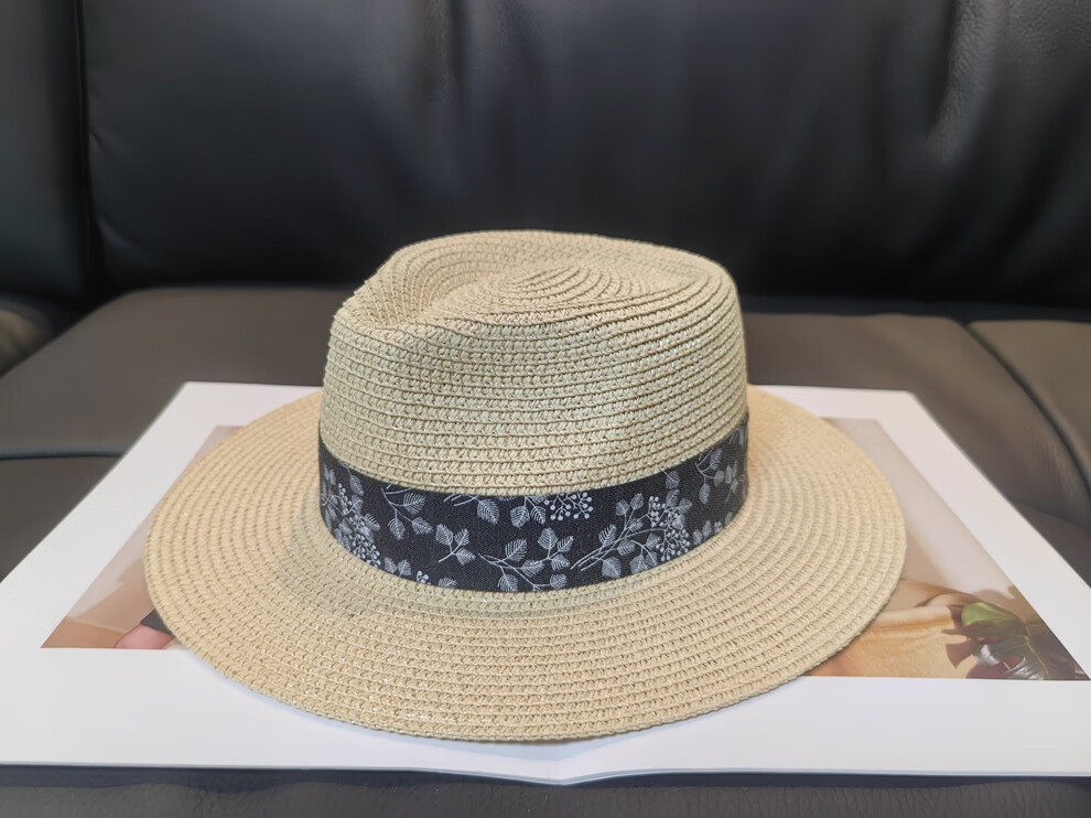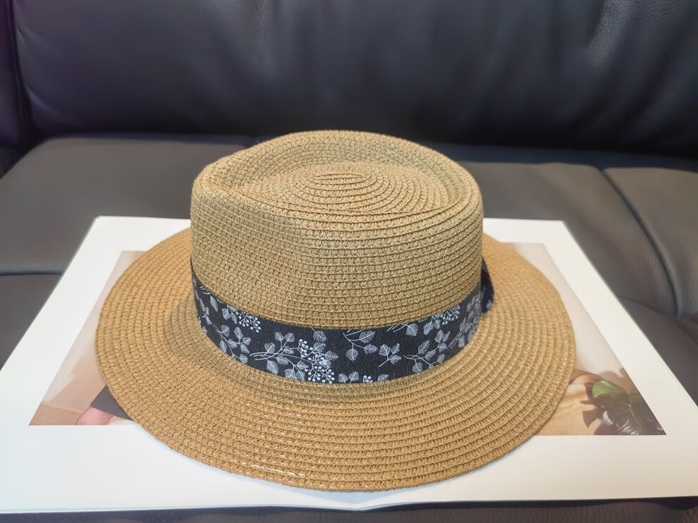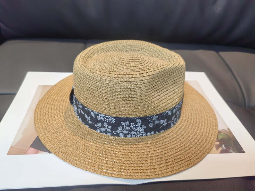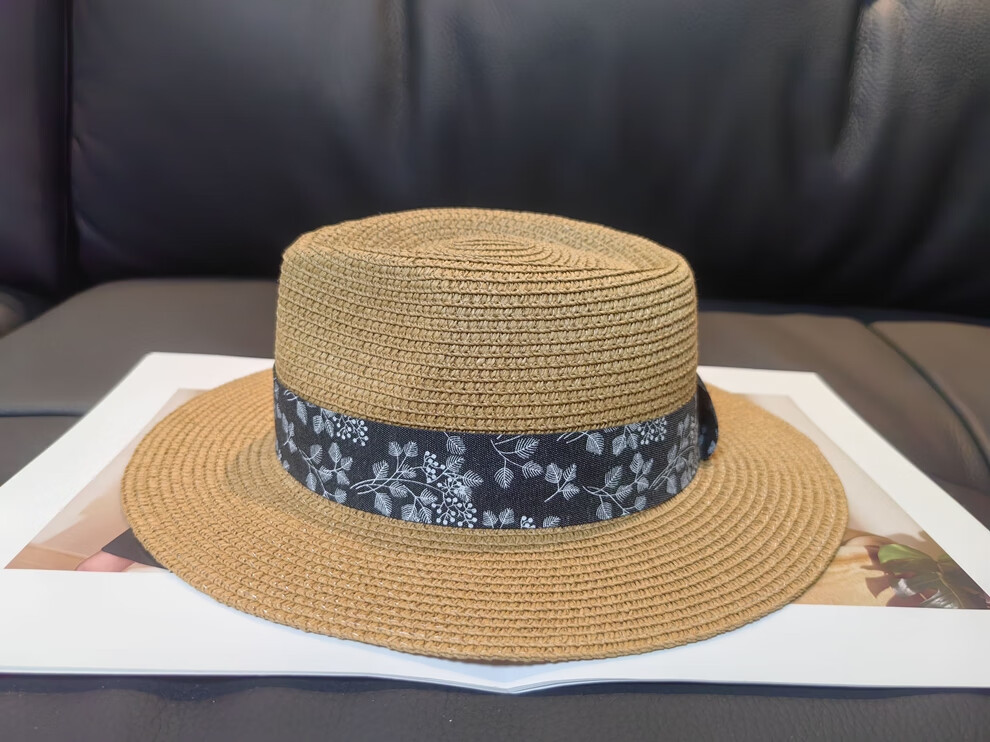 ALBINELE French flat-top straw hat for men and women sunshade and sun protection straw hat for summer travel to the seaside and beach vacation sun hat khaki 53-60CM/adjustable