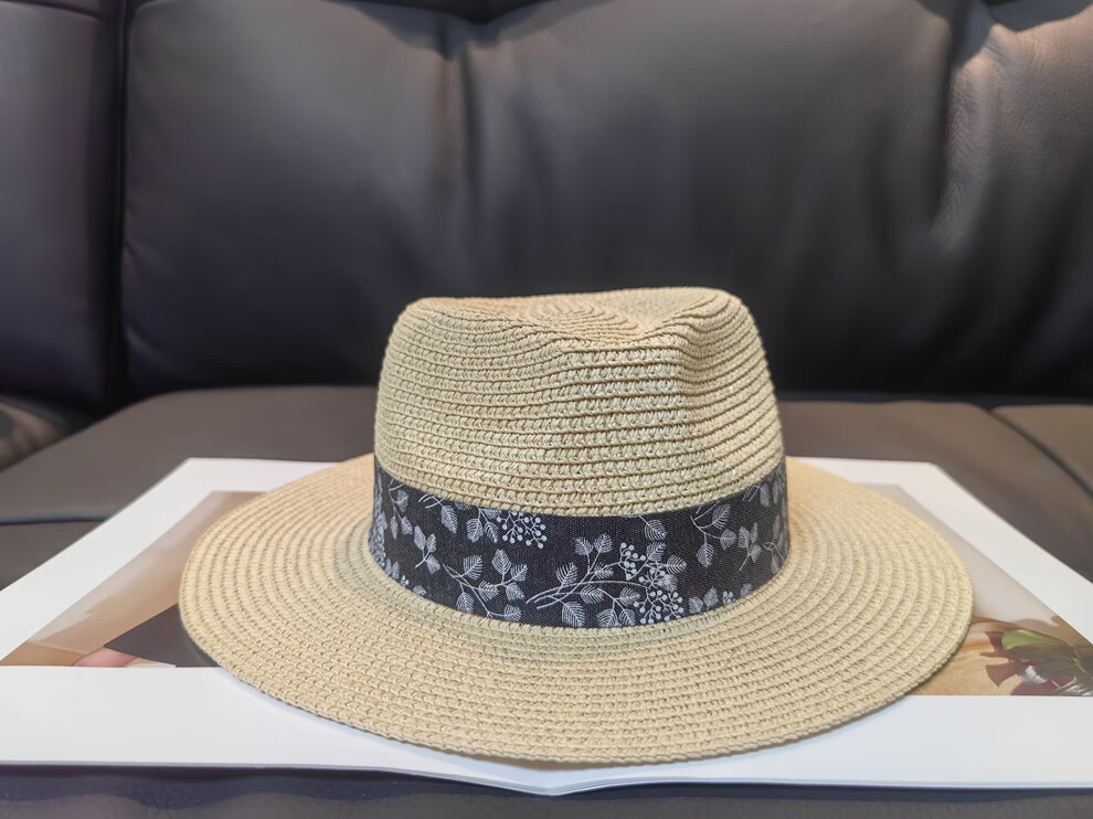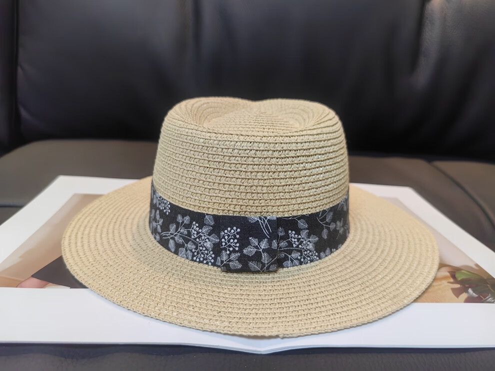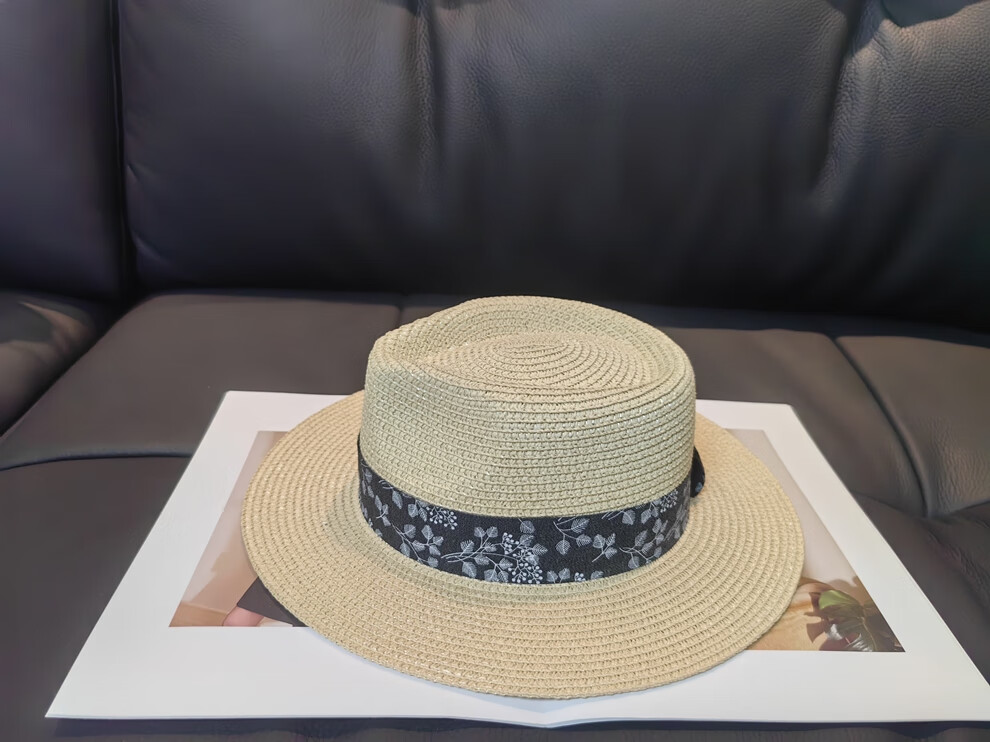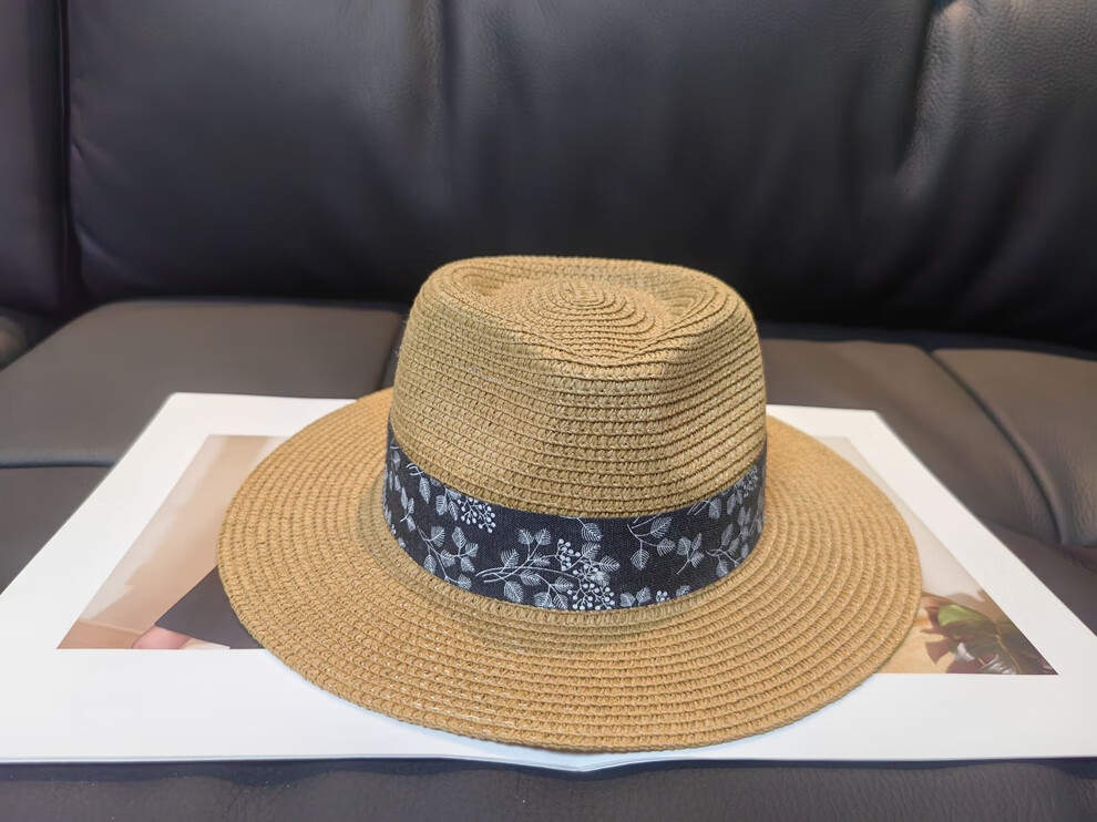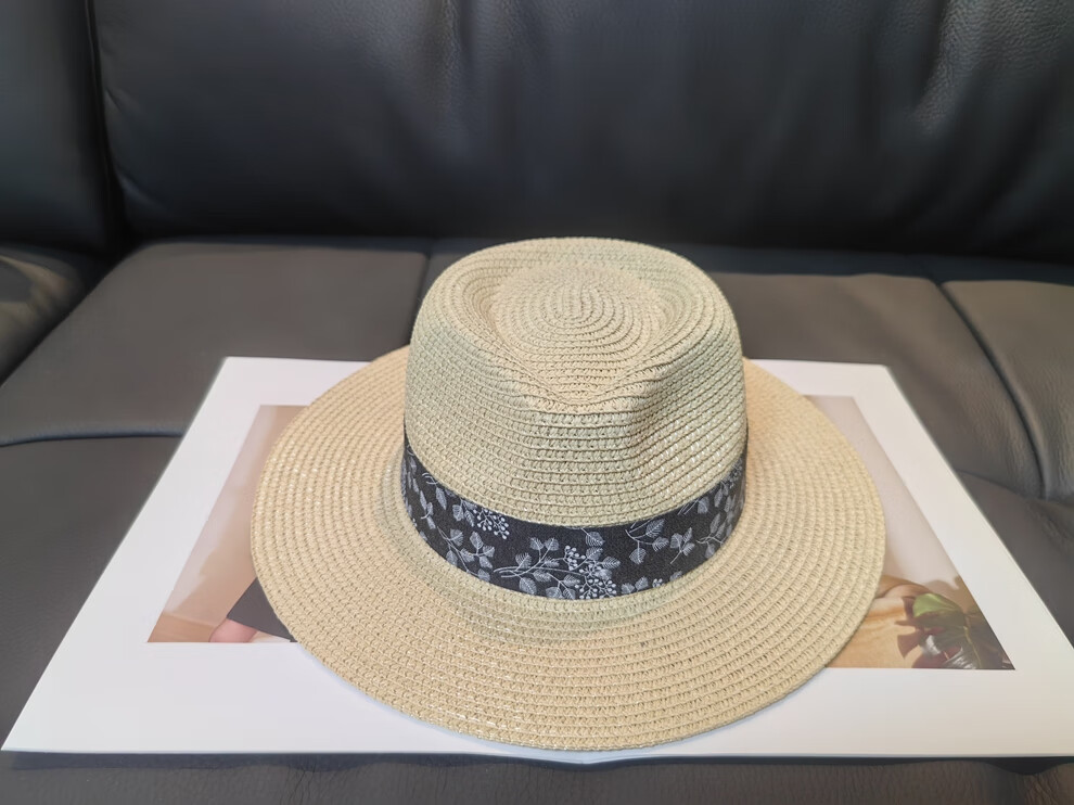 ALBINELE French flat-top straw hat for men and women sunshade and sun protection straw hat for summer travel to the seaside and beach vacation sun hat khaki 53-60CM/adjustable
