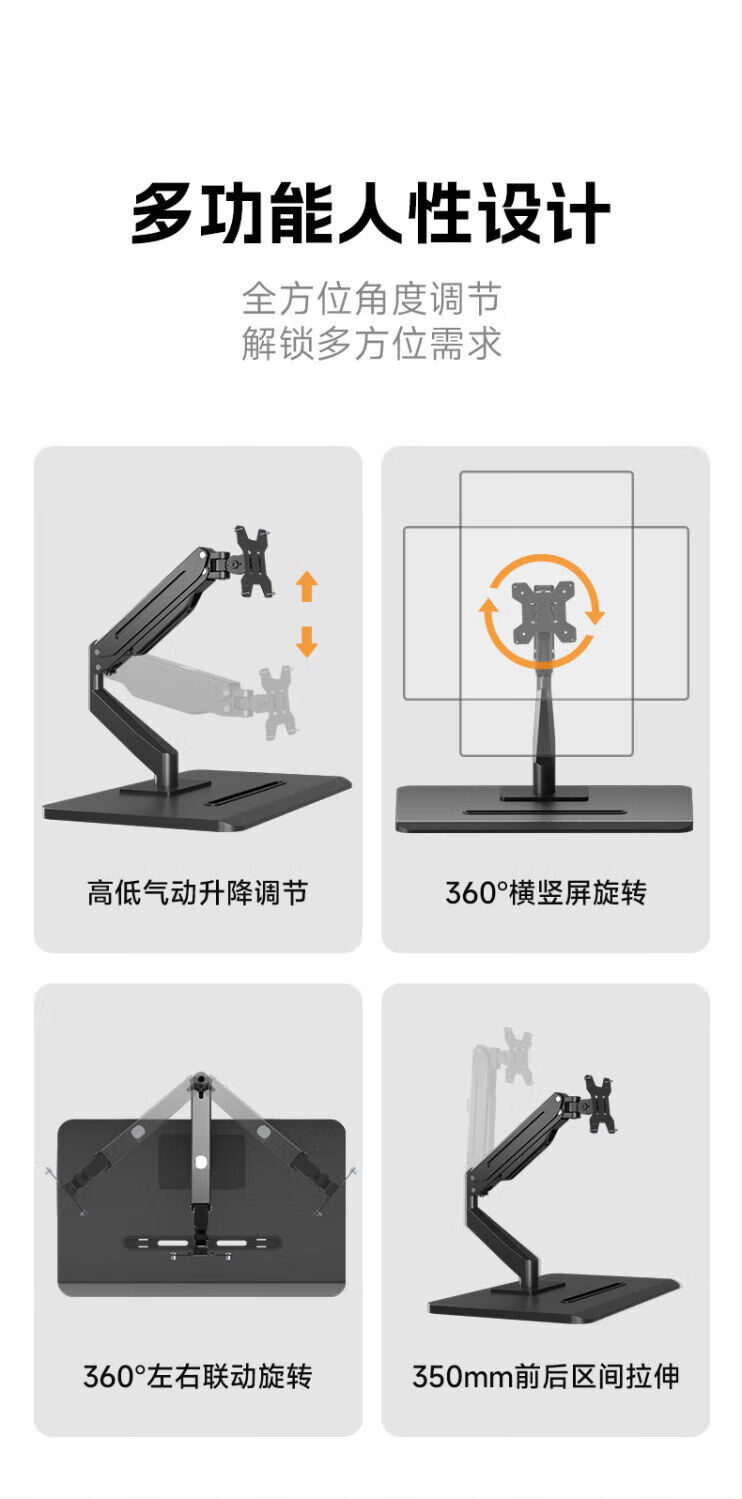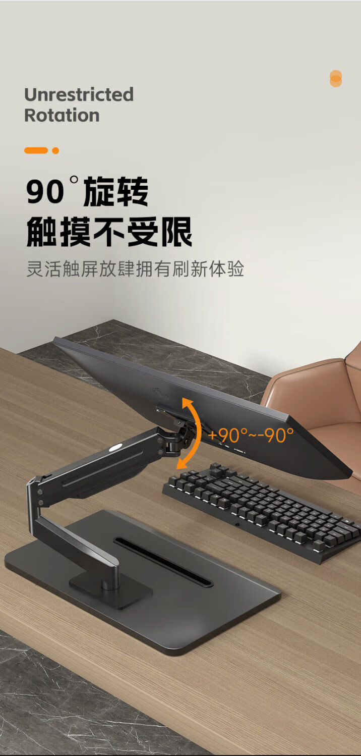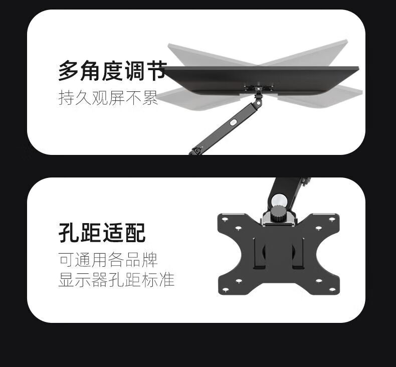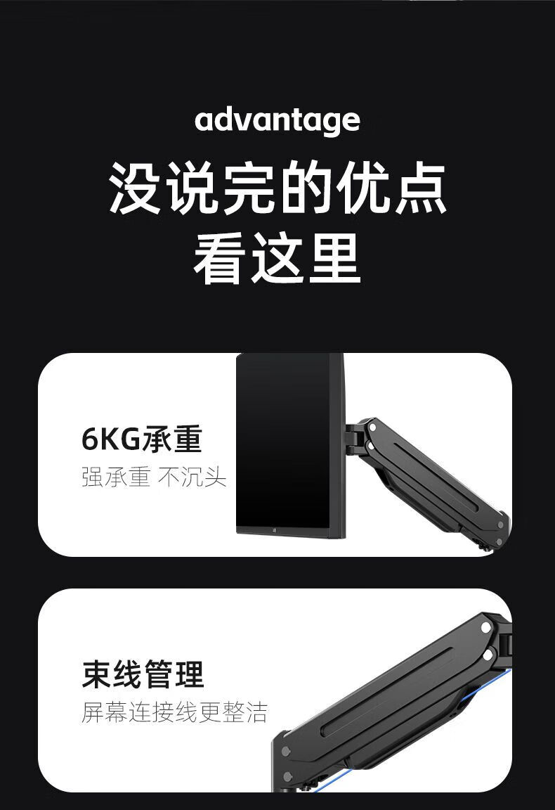Zhiercheng desktop punch-free computer pneumatic cantilever base monitor stand free lifting and rotating heightening with mobile phone slot two-section arm base bracket bold and thickened cold-rolled steel material with mobile phone slot