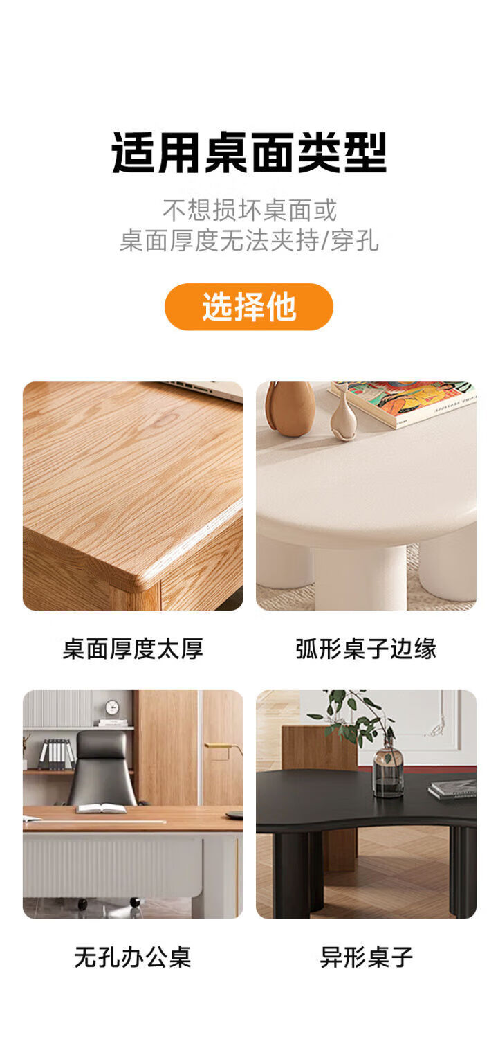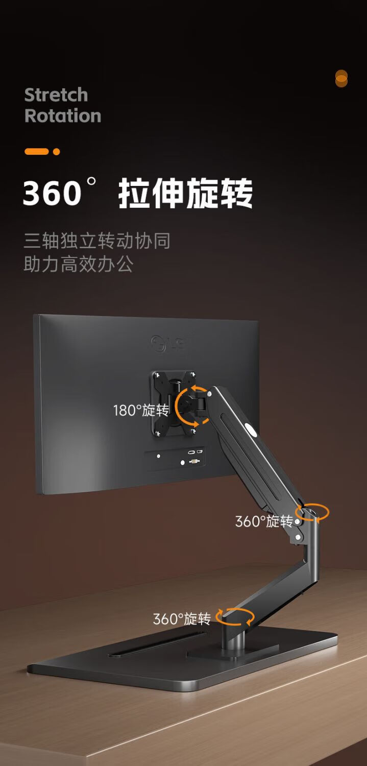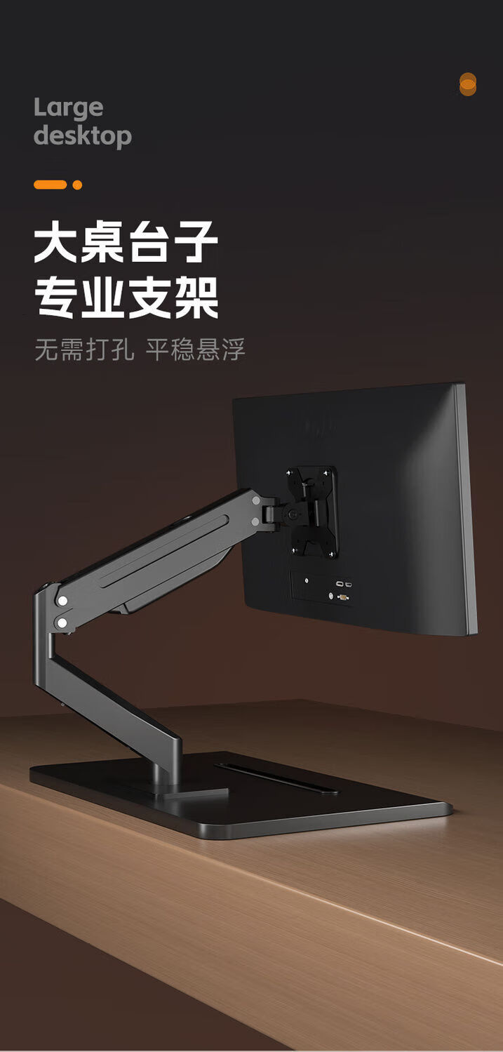 Zhiercheng desktop punch-free computer pneumatic cantilever base monitor stand free lifting and rotating heightening with mobile phone slot two-section arm base bracket bold and thickened cold-rolled steel material with mobile phone slot