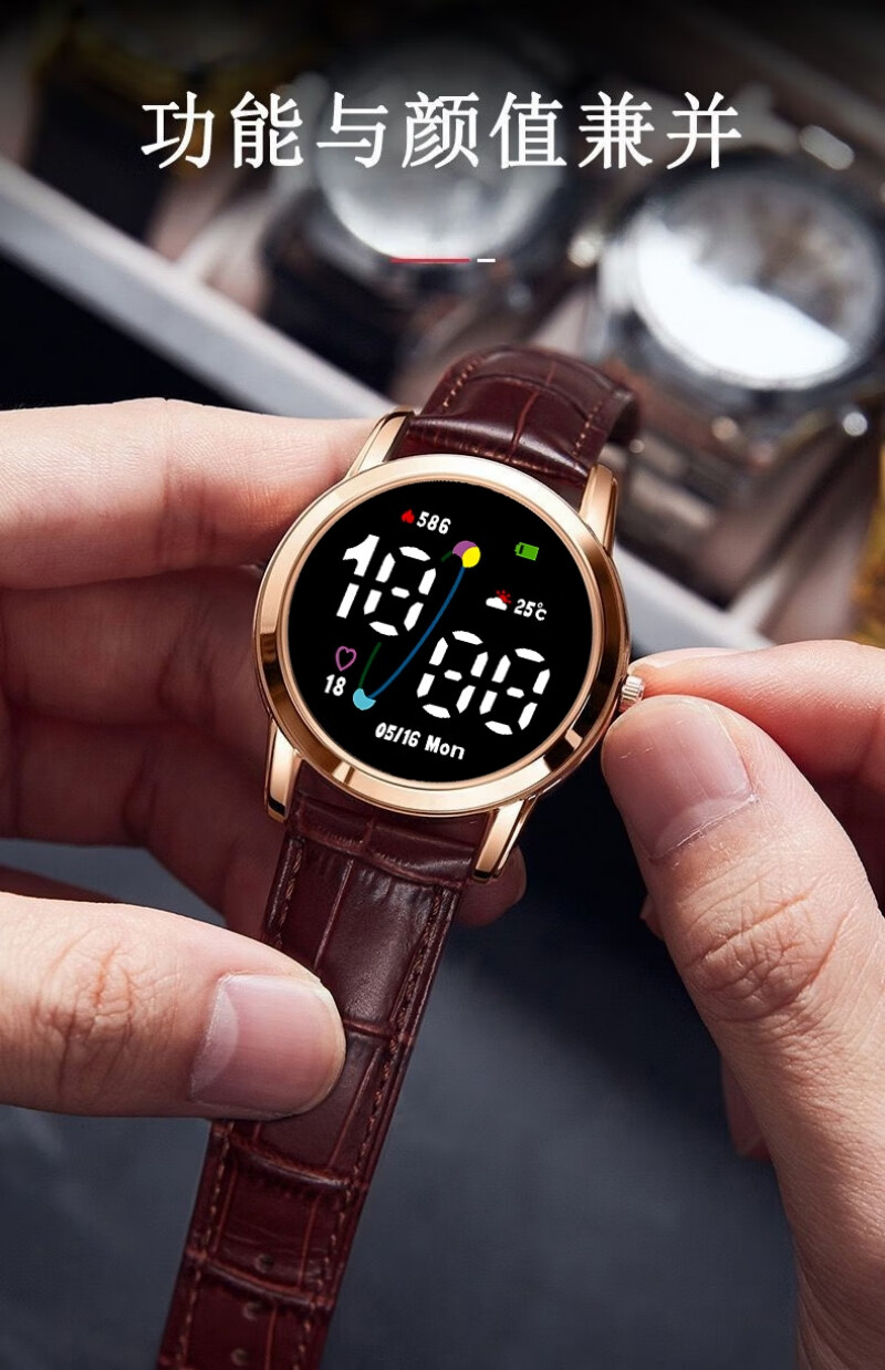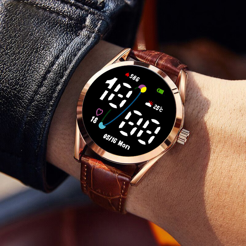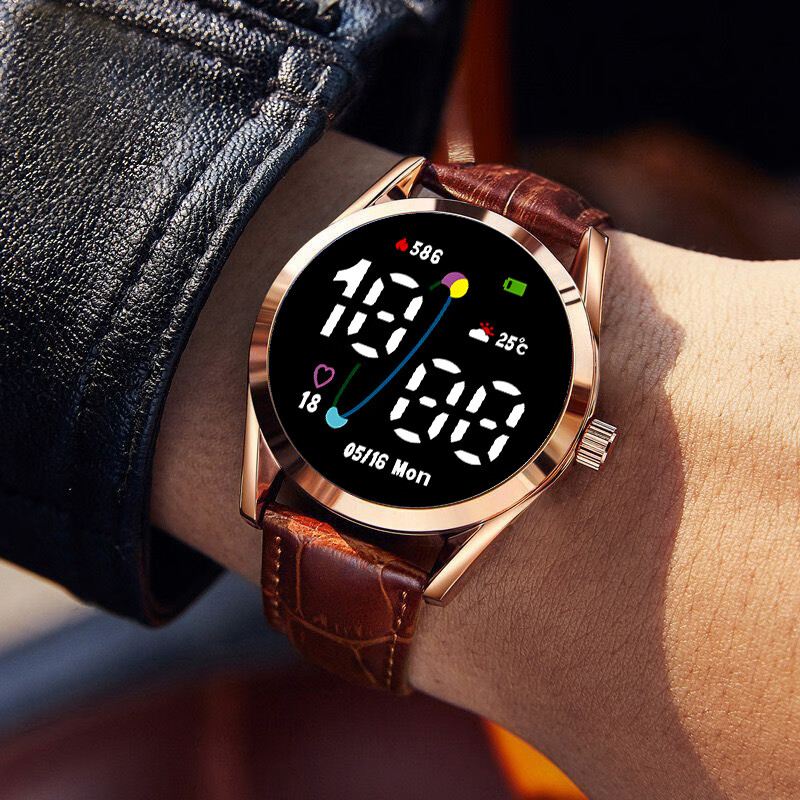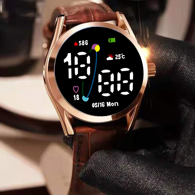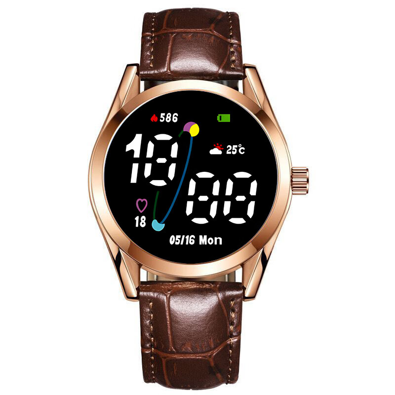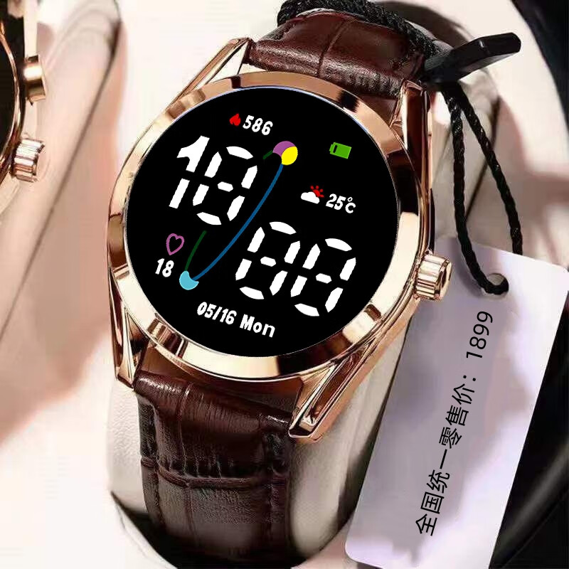 High-looking LED luminous electronic watch, quartz watch, simple leather strap, fashionable temperament for junior high school and high school students, multi-functional time display sports electronic watch Y23 LED luminous + time display + upgraded model - textured brown leather