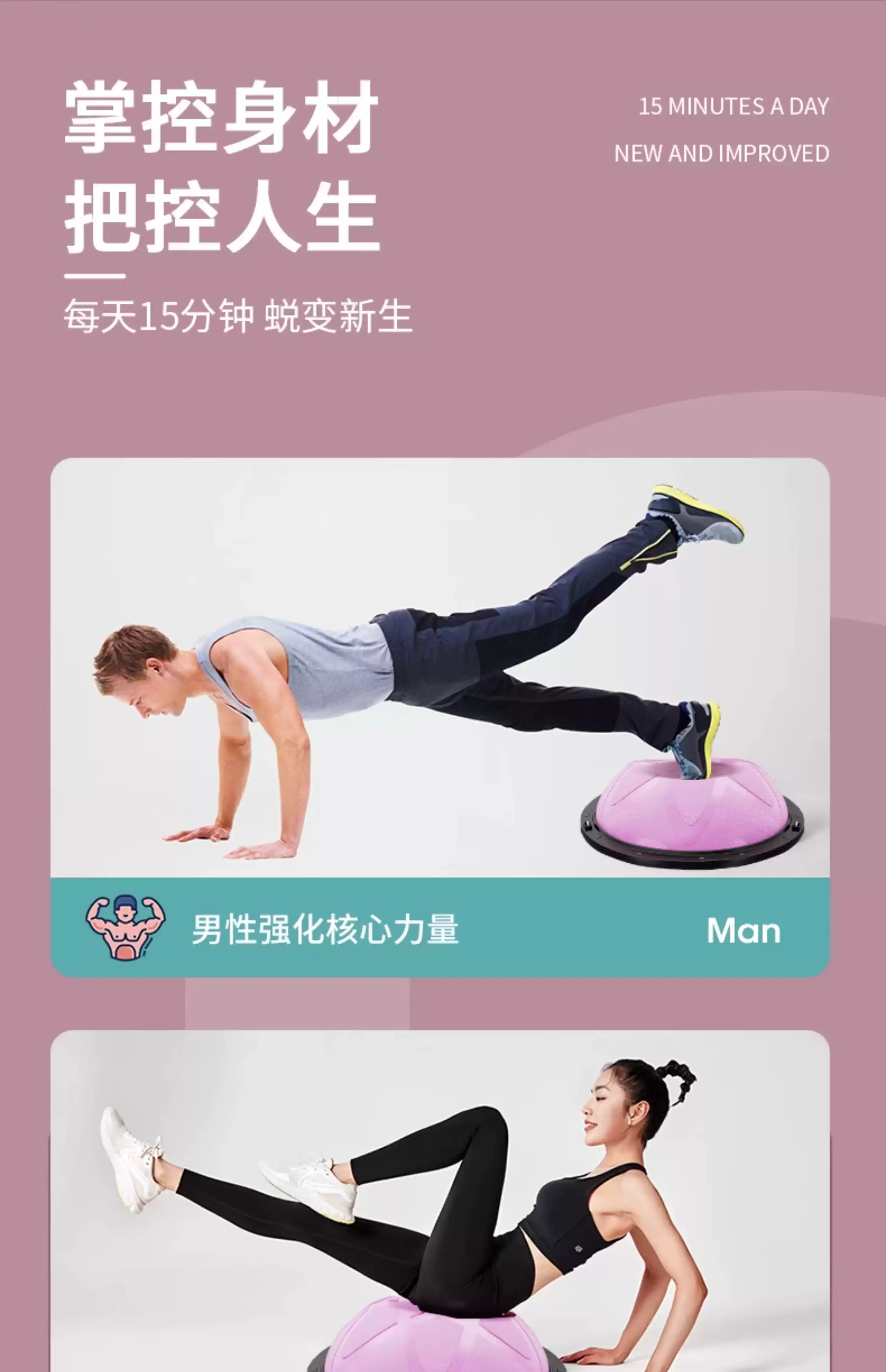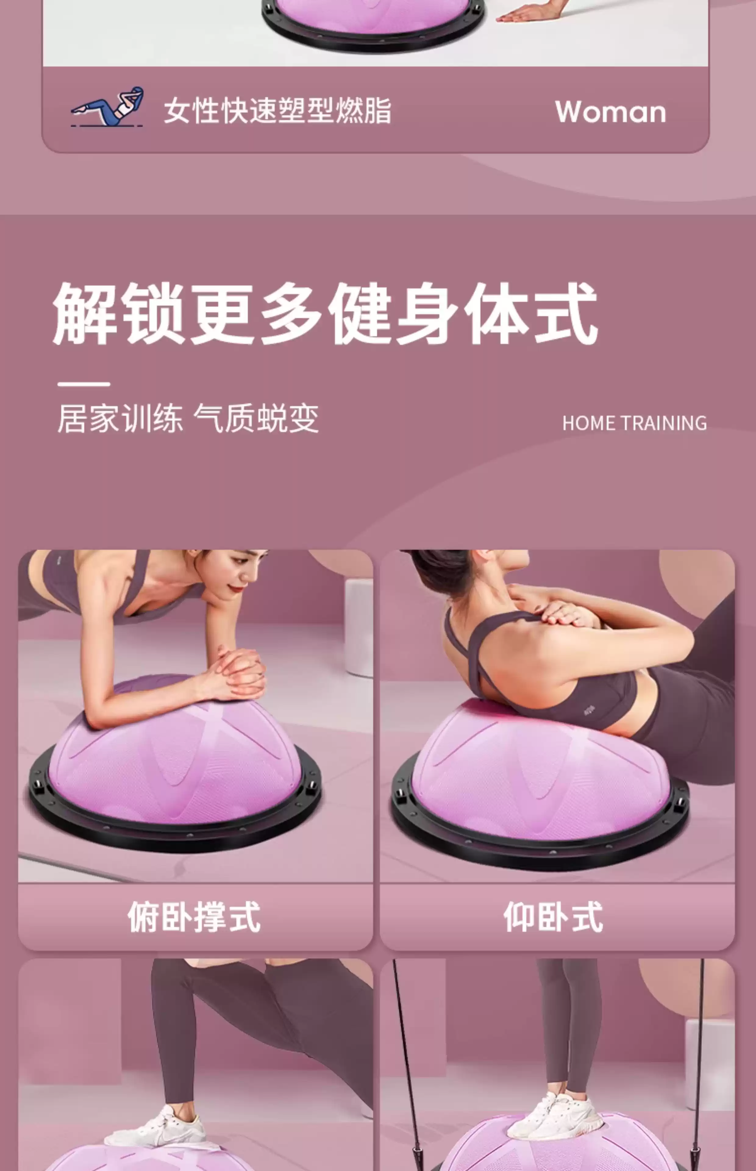 Bosu semicircular balance ball yoga fitness hemispheric balance core training bosu bosu ball fat burning equipment cool black diameter 58cm stable non-slip free tension rope more yoga ball sizes