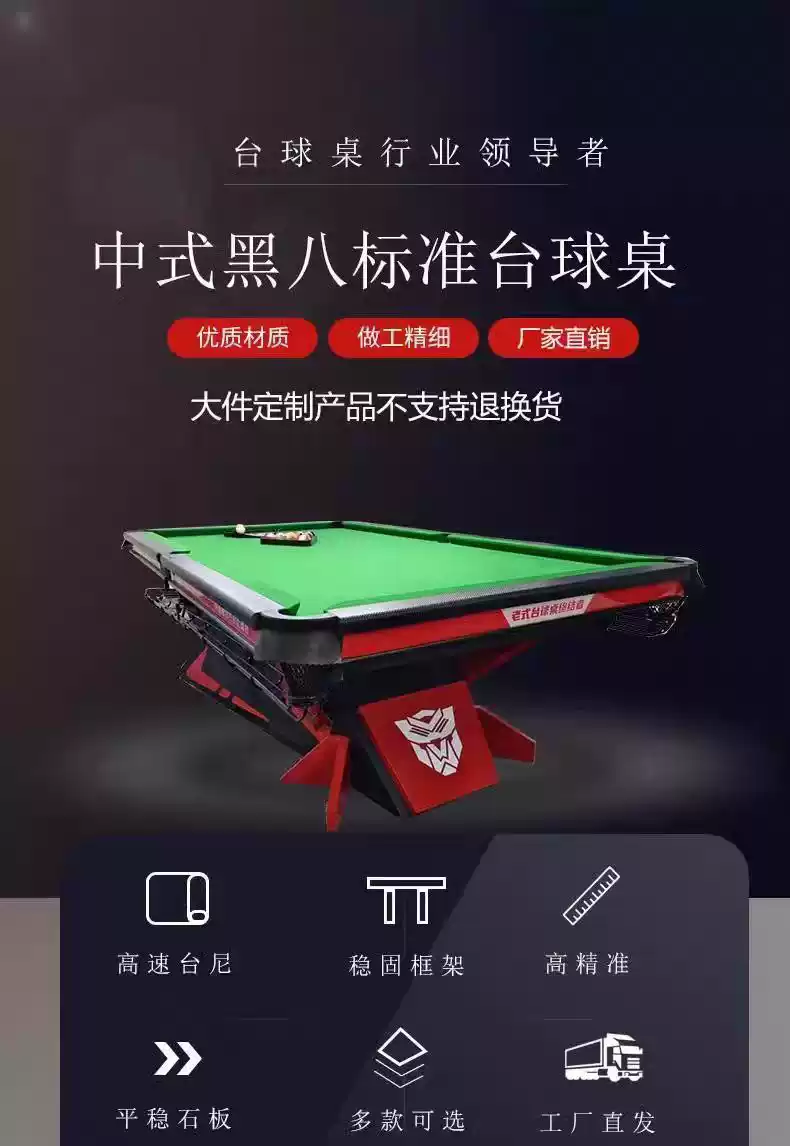 Billiard table commercial fang style steel warehouse Chinese style black eight standard club imitation Dushan rock ball room competition table customized LOGO