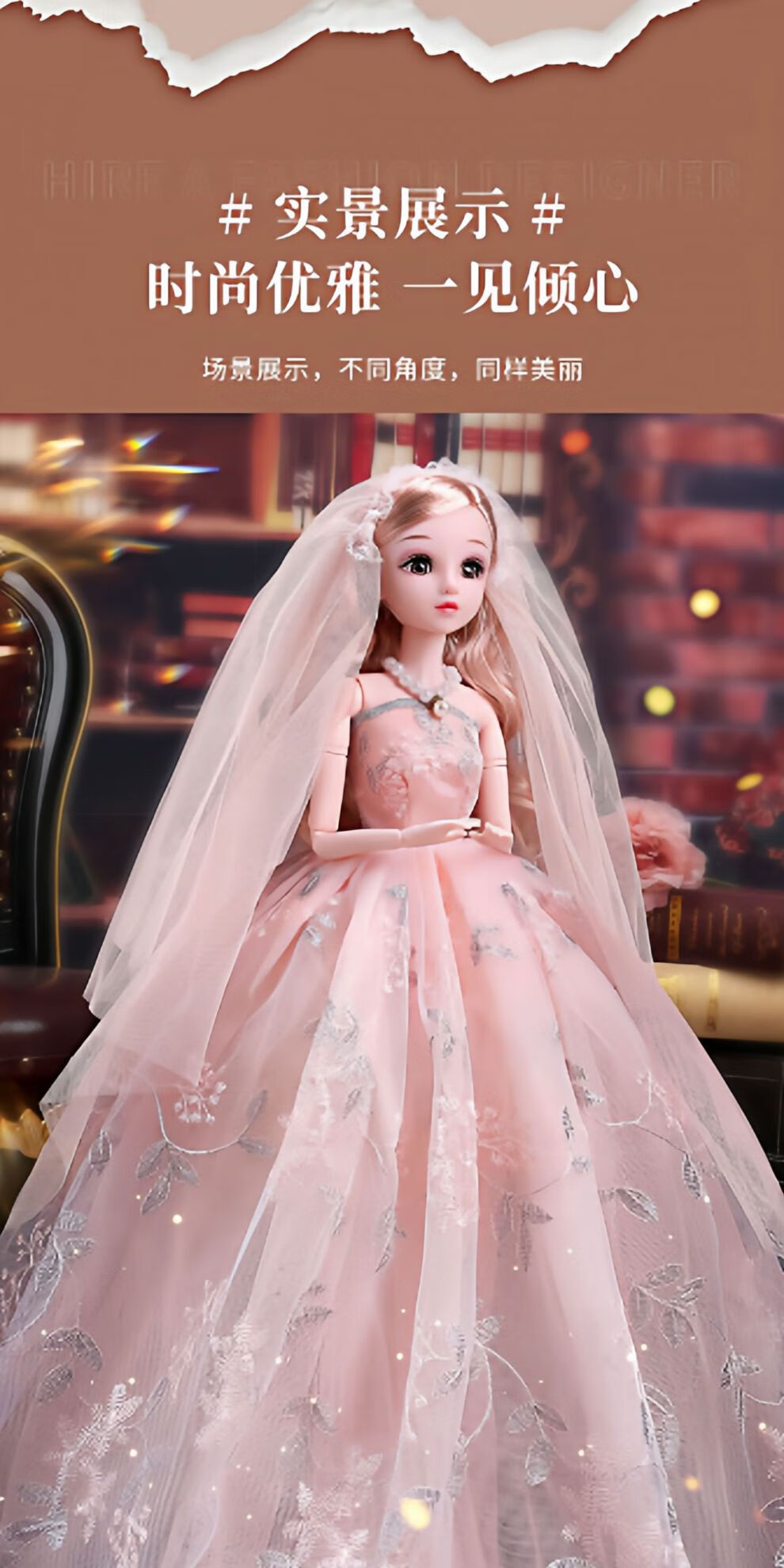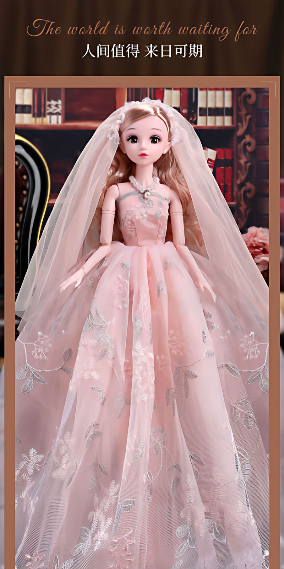 Shantou Lincun's new 60cm children's dress-up doll princess wedding gift box toy birthday gift Bingjing (floor-length skirt + wink) standard version + gift package A (handle gift box)