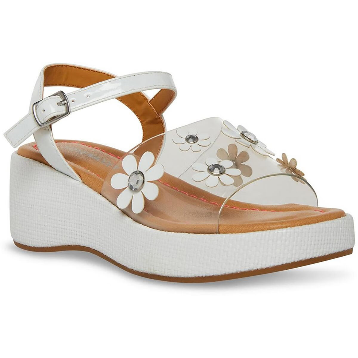 Steve Madden Girls' Shoes Unisex Farrah Wedge Sandals, White White 4 Big Kid