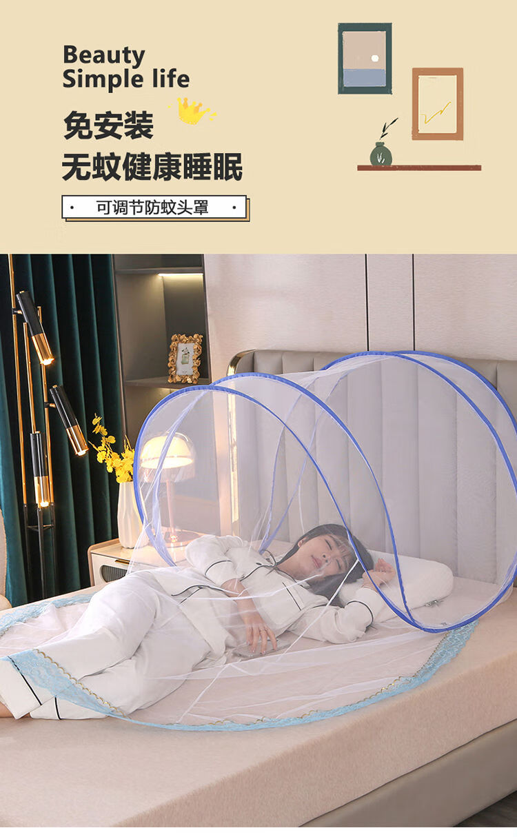 Yusenyi anti-mosquito hood for sleeping, mini head small mosquito net, hooded mask, simple folding face travel single person, large width 70*length 50*height 40CM blue