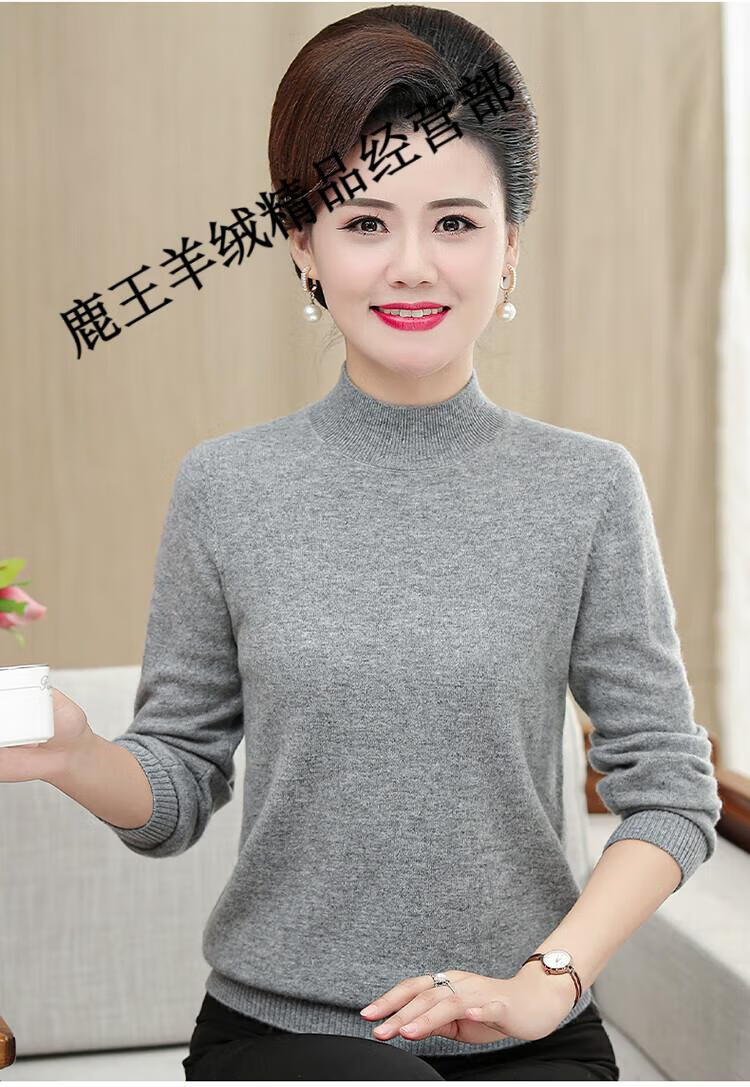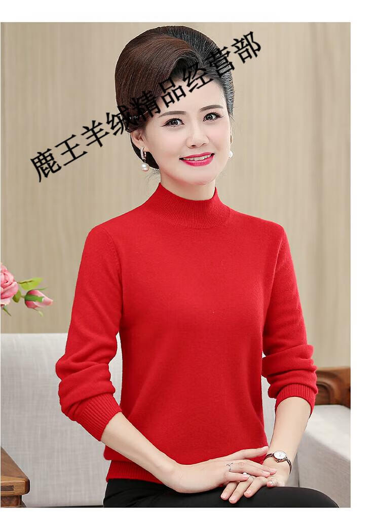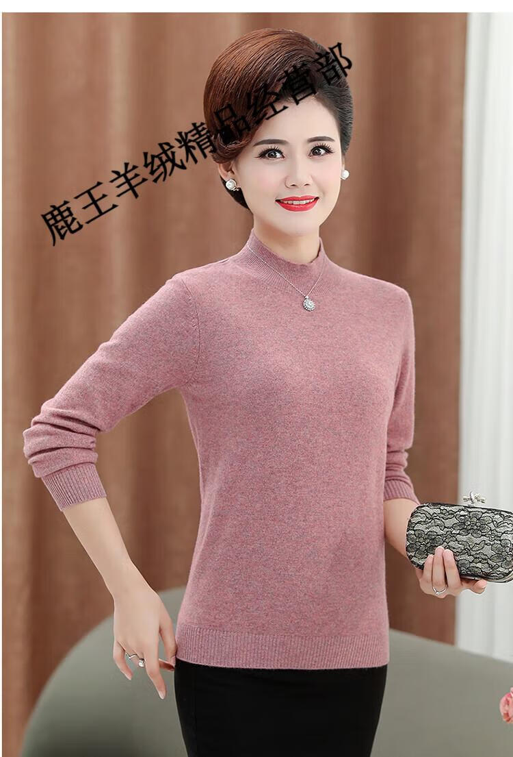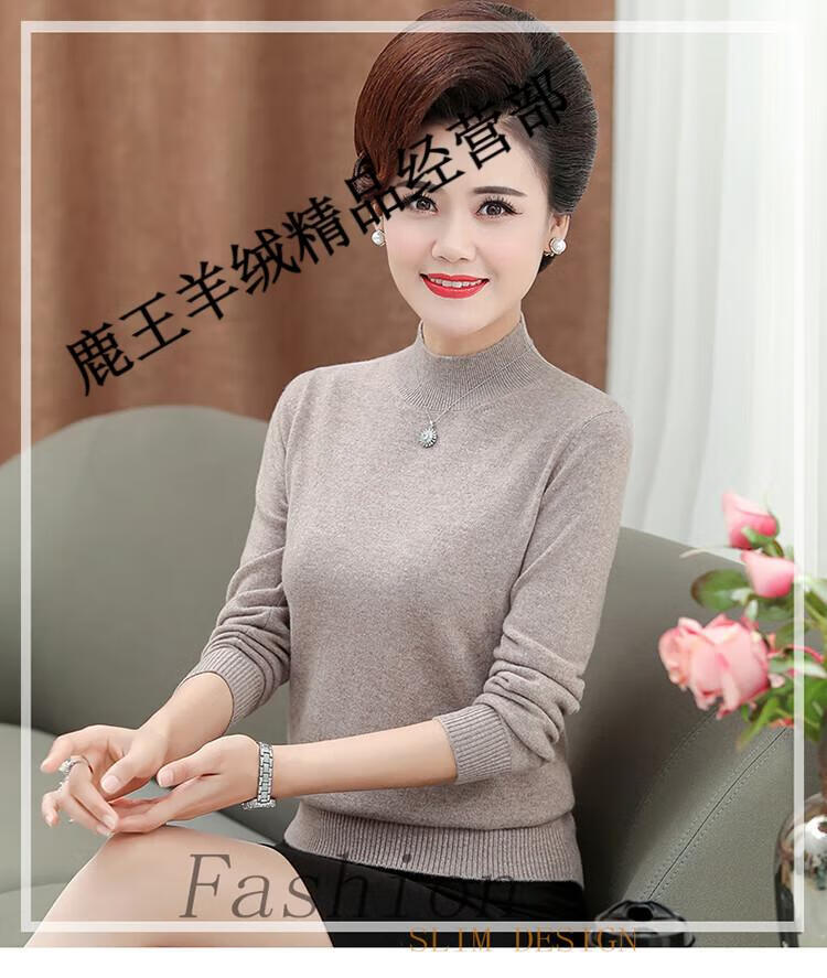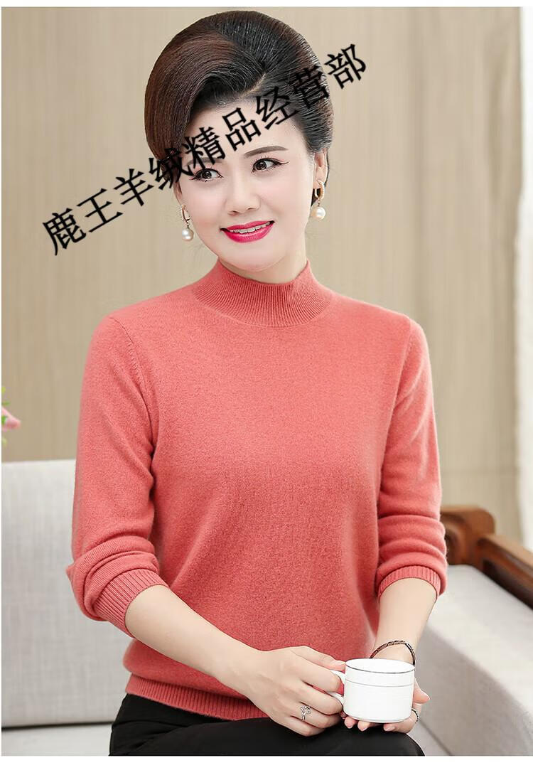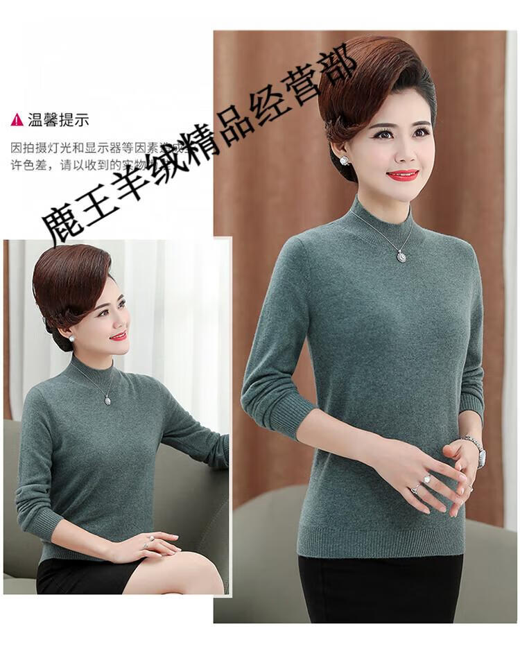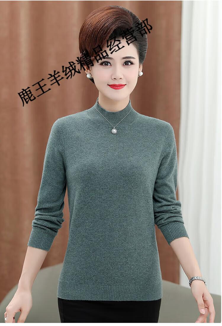 KING DEER middle-aged and elderly women's pure cashmere soft waxy sweater mother's clothing autumn and winter new solid color wool bottoming sweater green 3XL 150Jin Jin equals within 0.5 kg counter