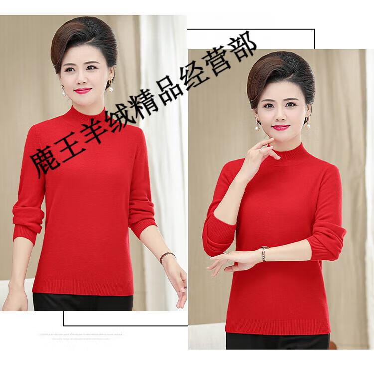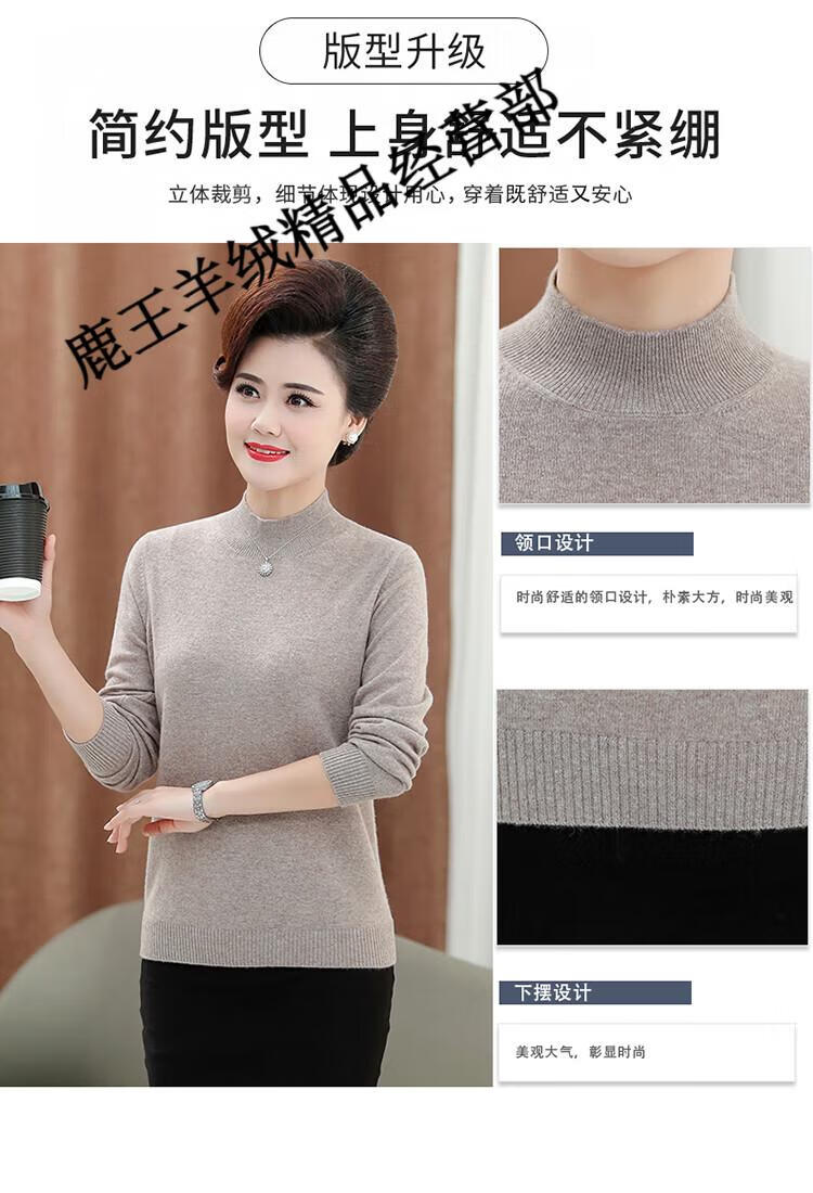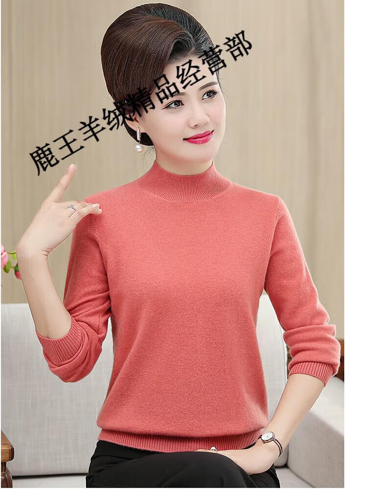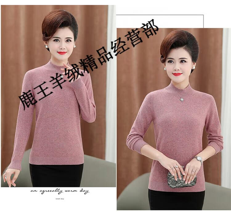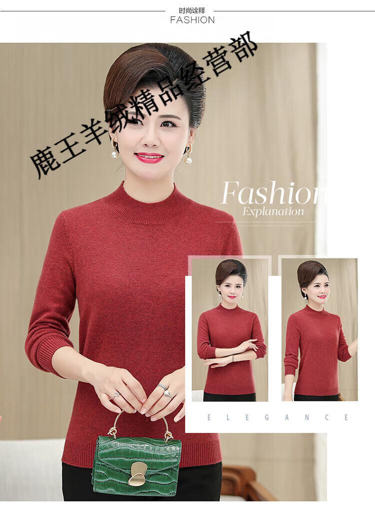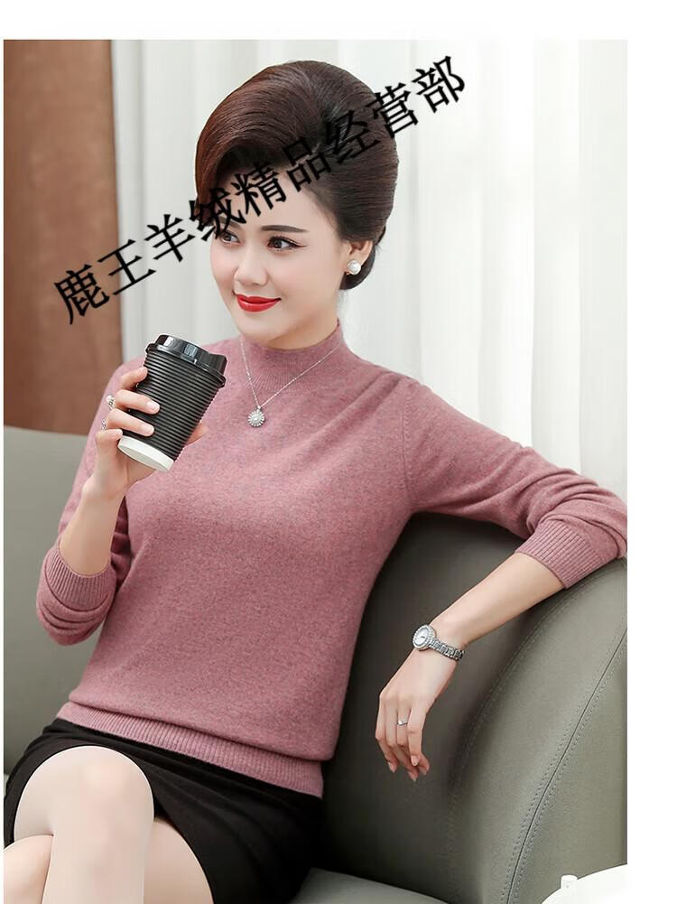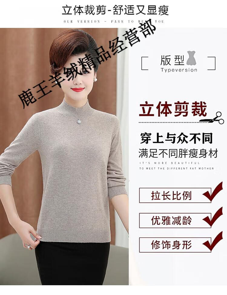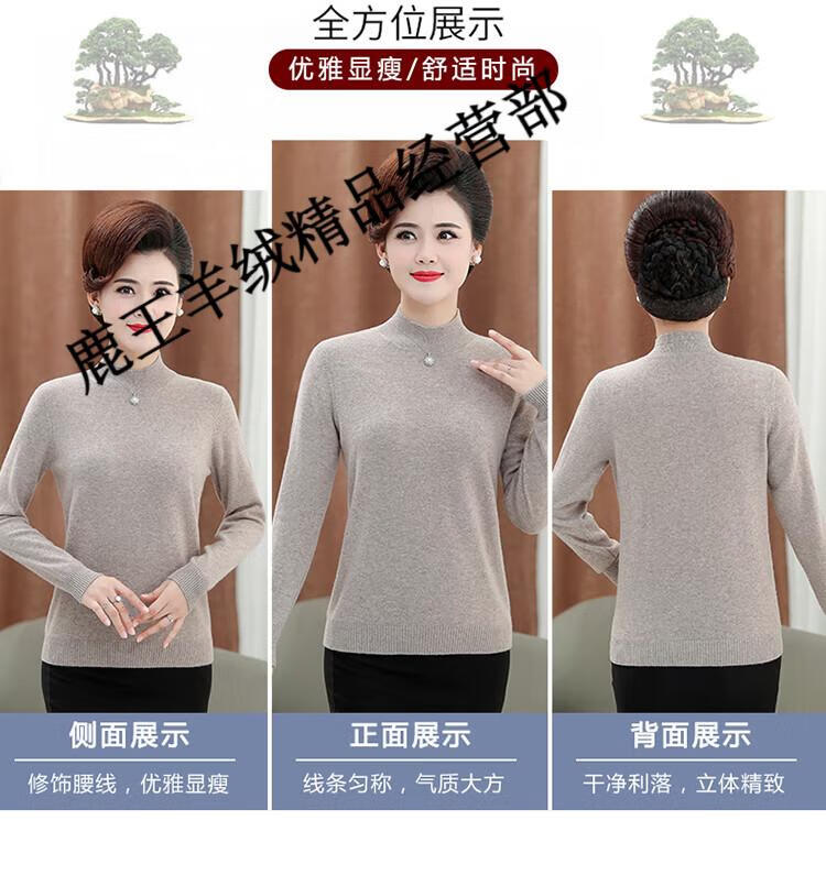 KING DEER middle-aged and elderly women's pure cashmere soft waxy sweater mother's clothing autumn and winter new solid color wool bottoming sweater green 3XL 150Jin Jin equals within 0.5 kg counter