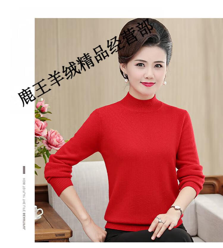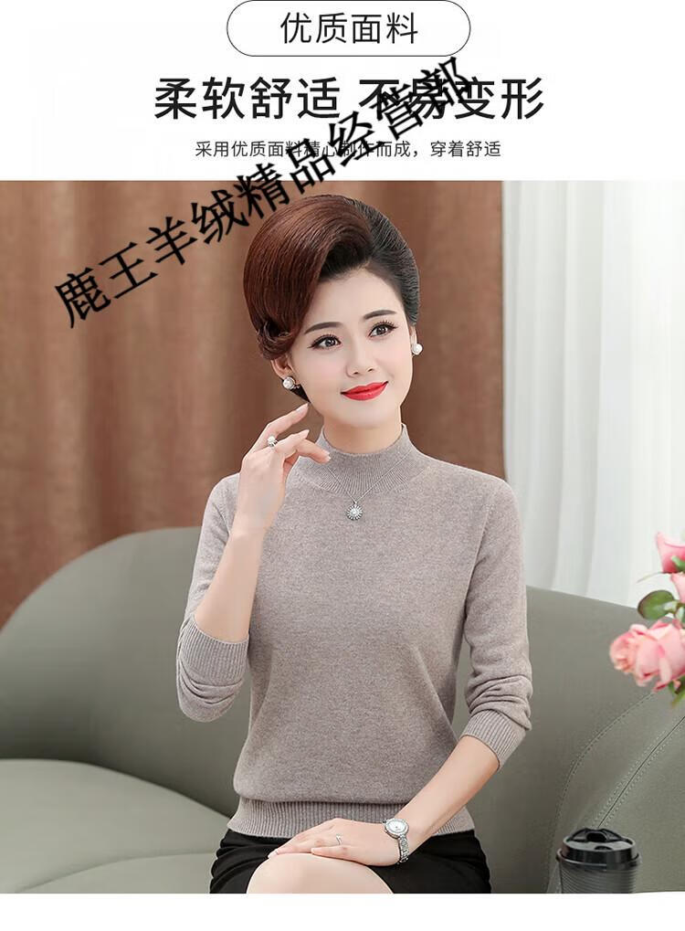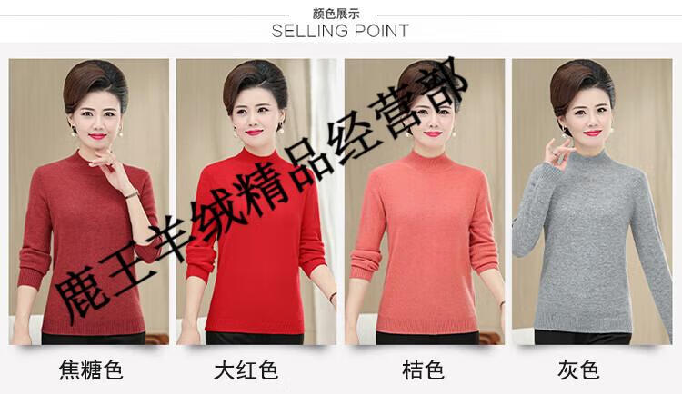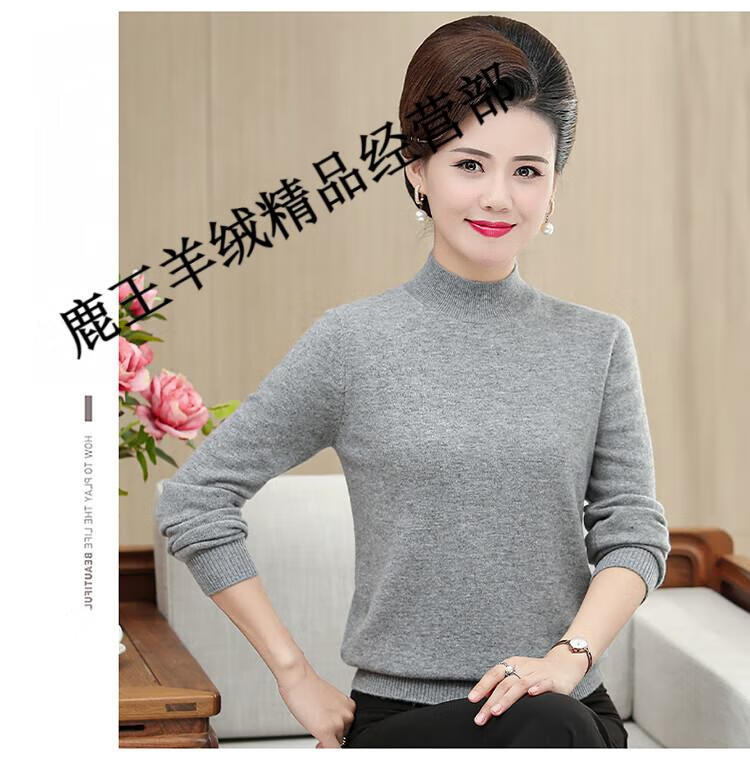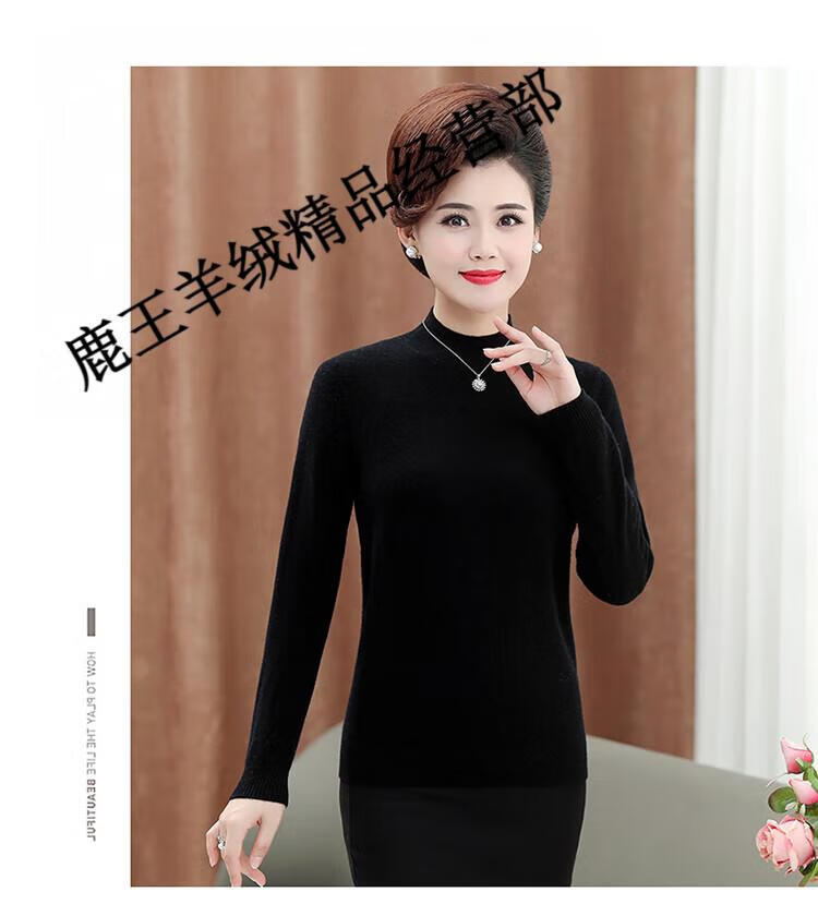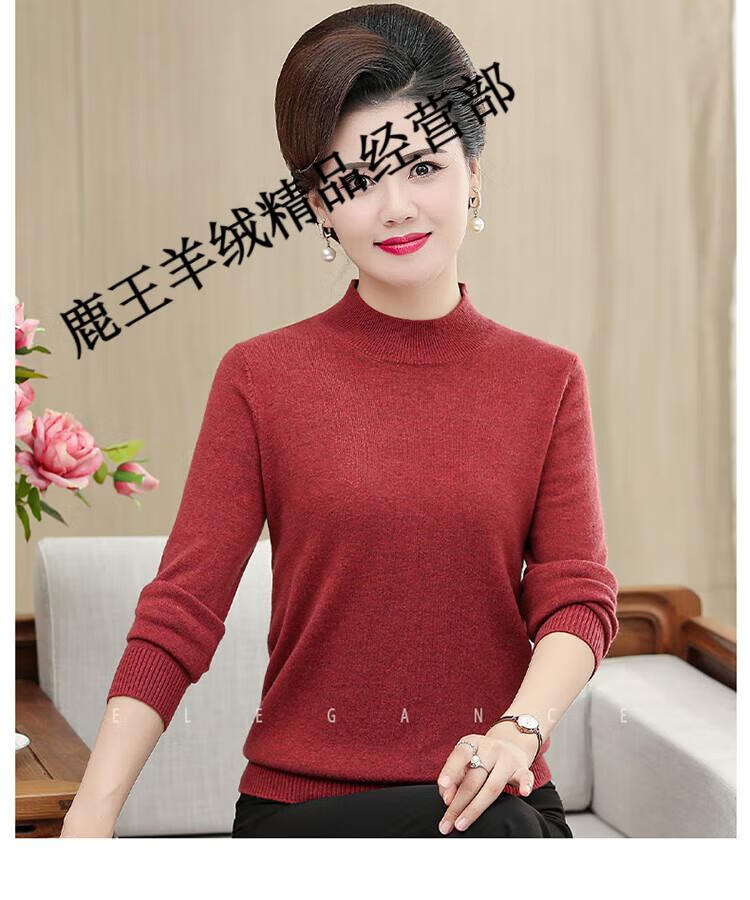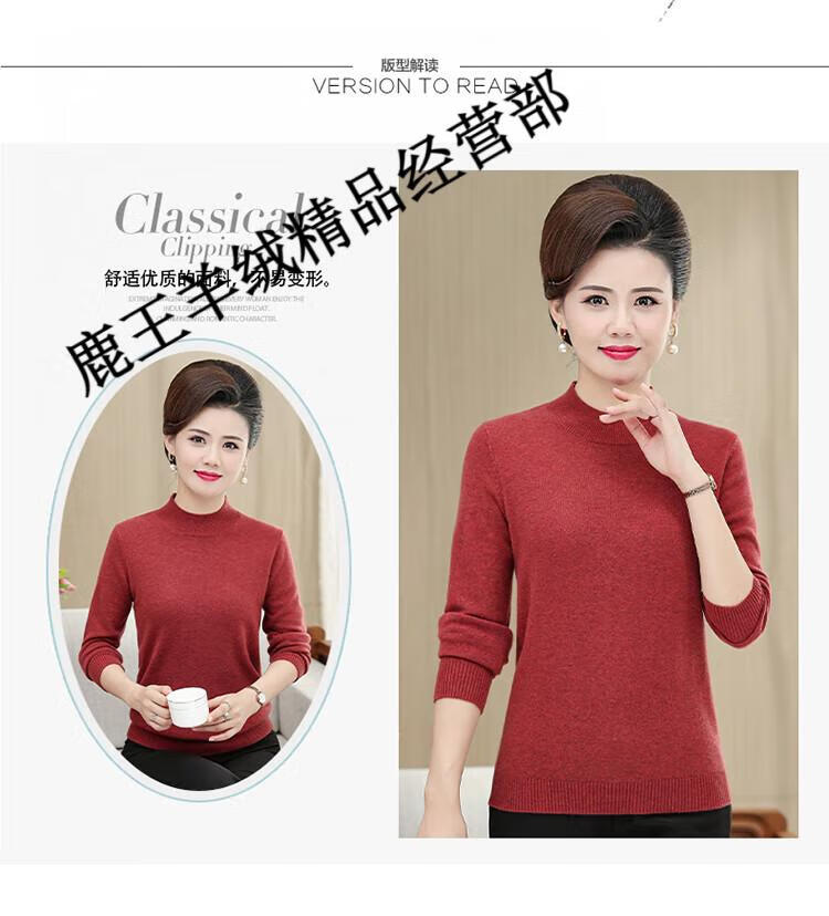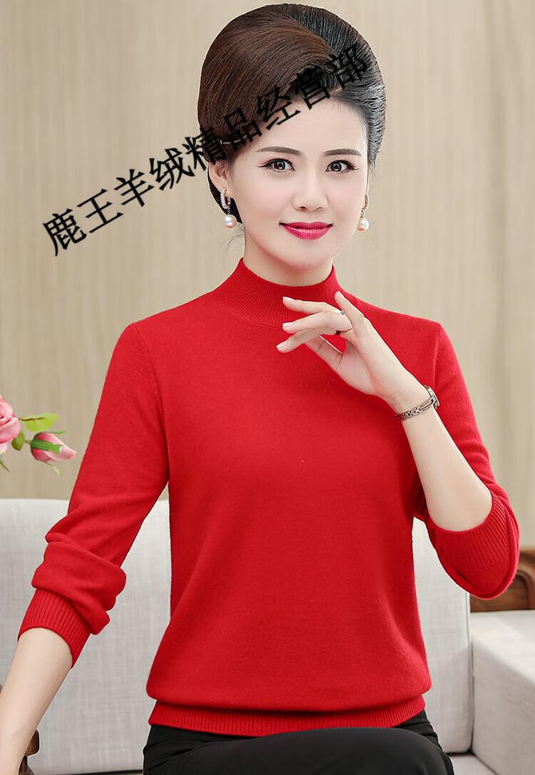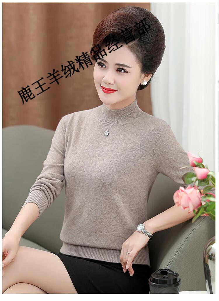 KING DEER middle-aged and elderly women's pure cashmere soft waxy sweater mother's clothing autumn and winter new solid color wool bottoming sweater green 3XL 150Jin Jin equals within 0.5 kg counter