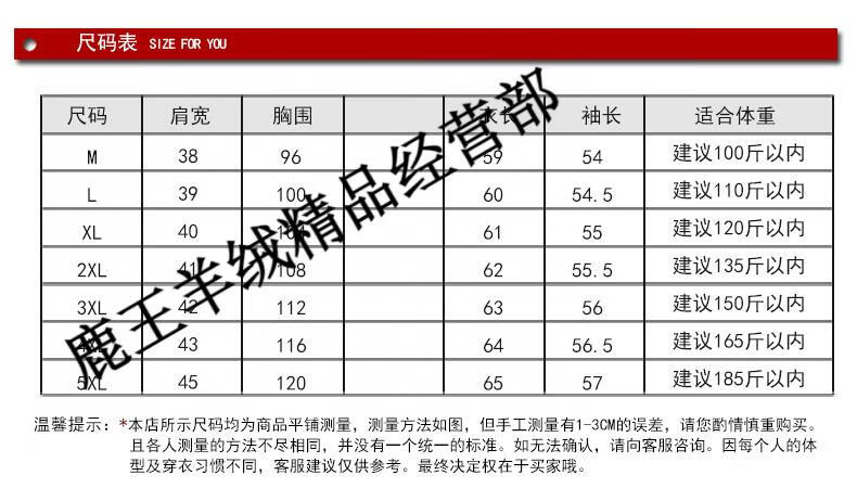 China (cm) 165 / 88-90 170 / 96-98 175 / 108-110 180 / 118-122 185 / 126-130