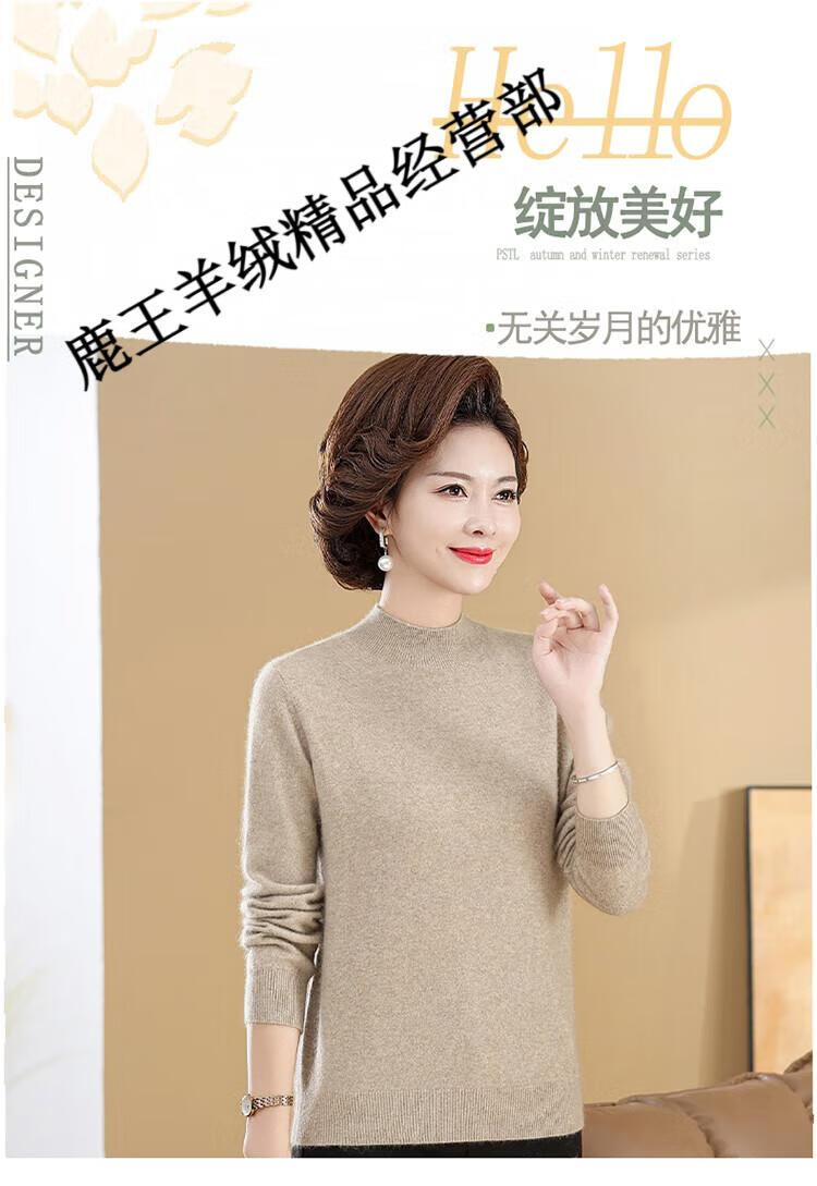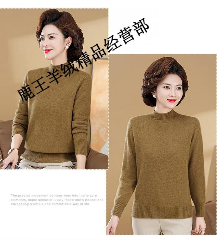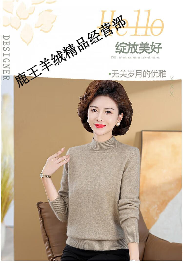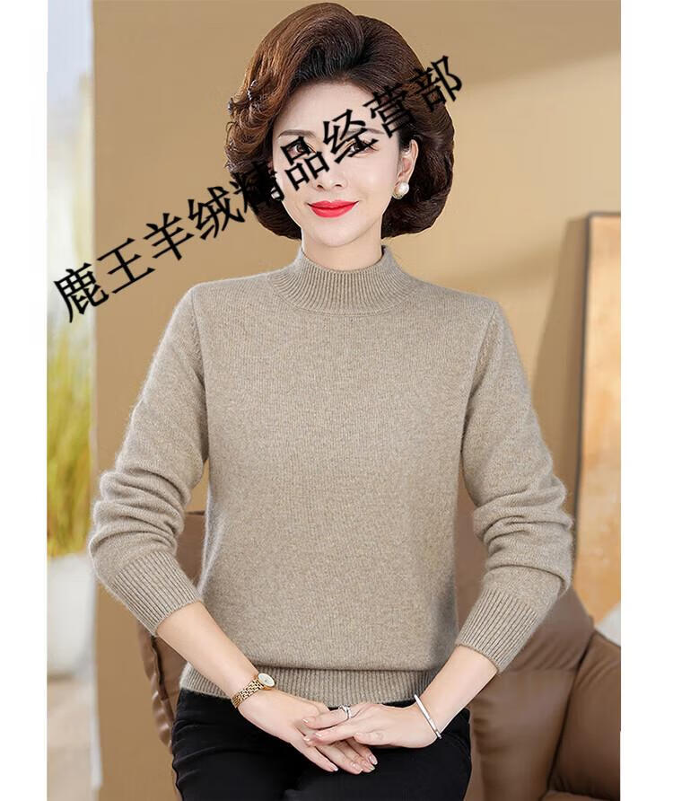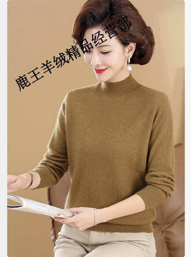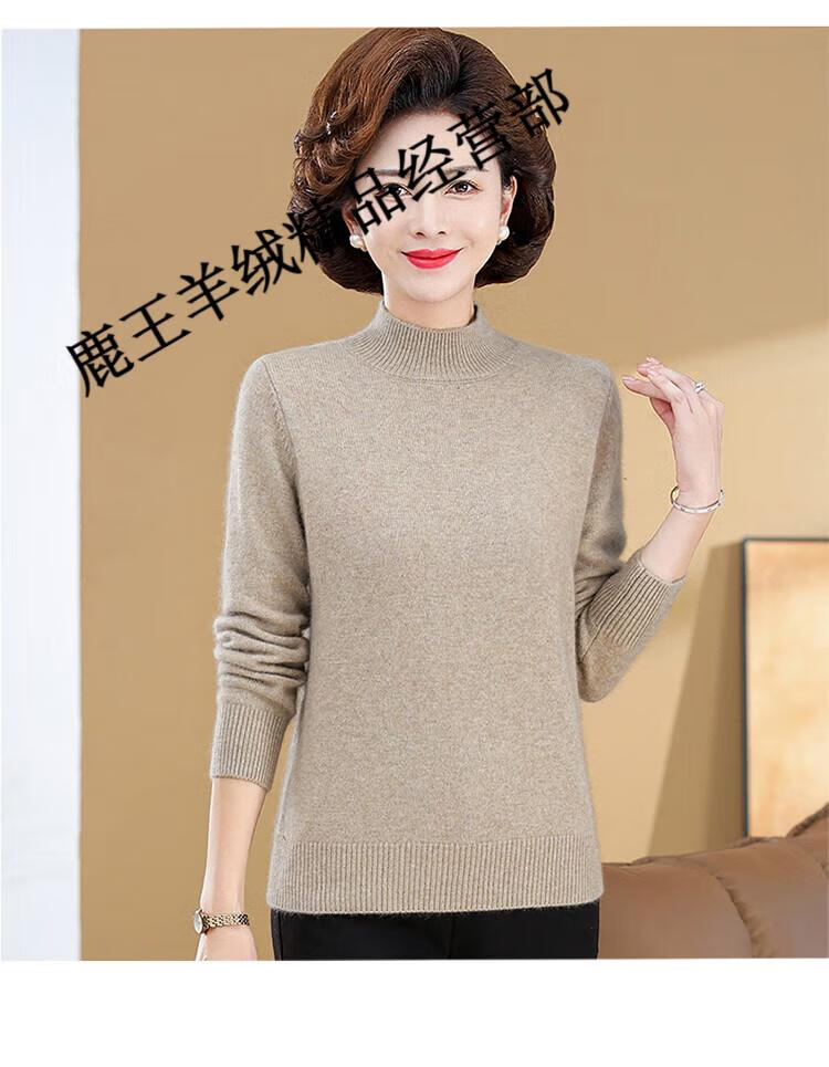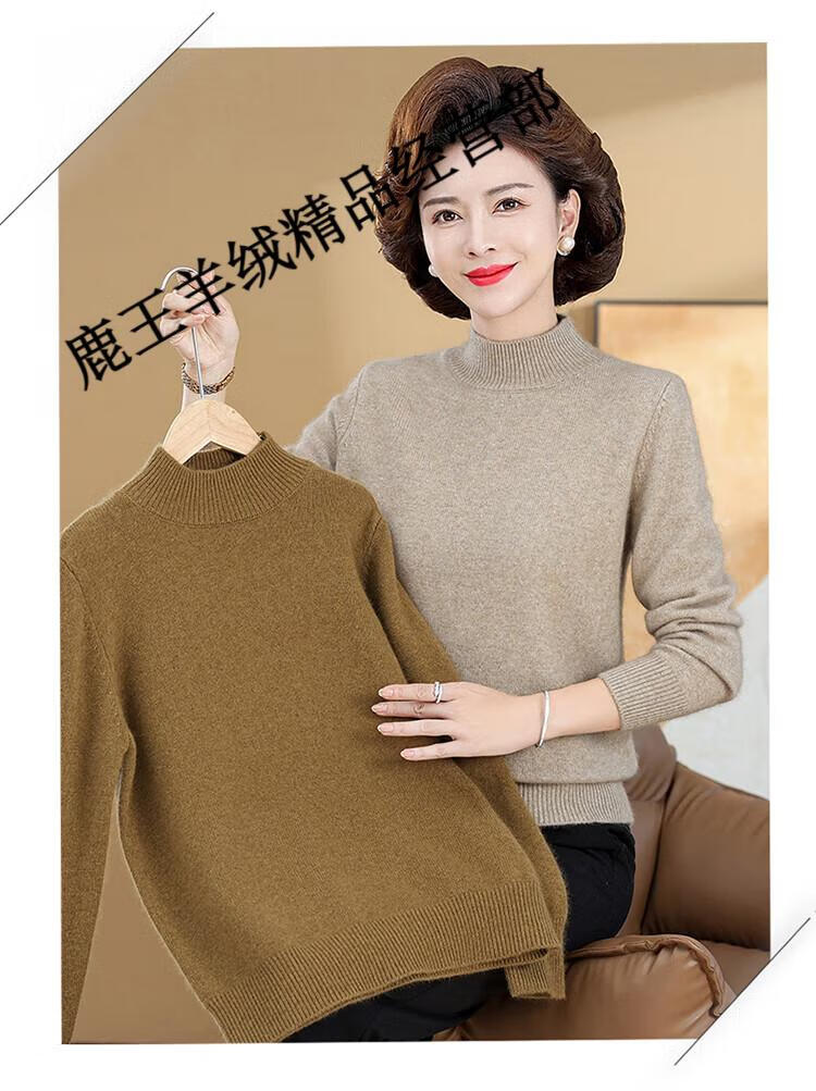 KING DEER Autumn and Winter New Middle-aged and Elderly Half-Turtle Collar Cashmere Sweater Women's Sweater Thick Bottoming Loose Knitted Large Size Short Bottoming Camel XL 115Jin Jin equals 0.5kg -130Jin Jin equals 0.5kg