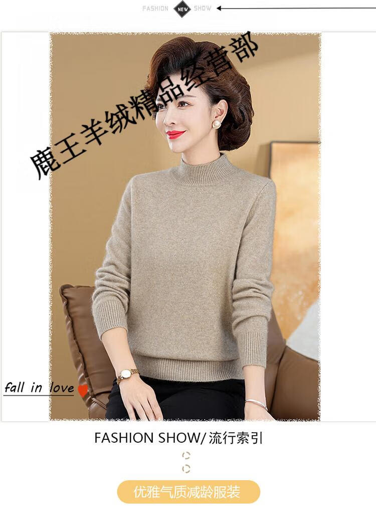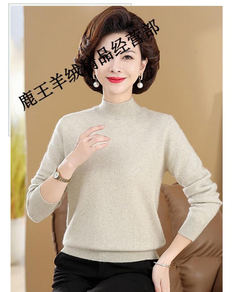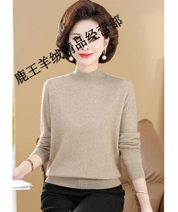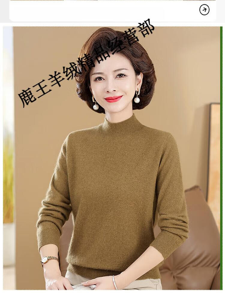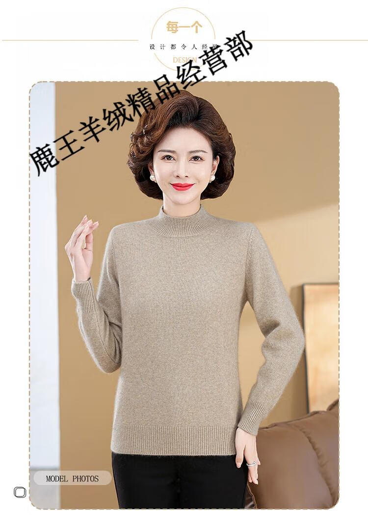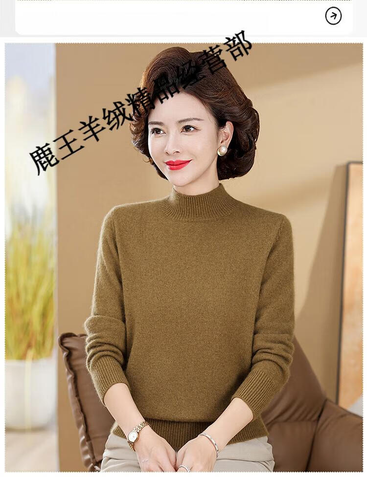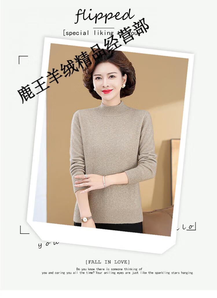 KING DEER Autumn and Winter New Middle-aged and Elderly Half-Turtle Collar Cashmere Sweater Women's Sweater Thick Bottoming Loose Knitted Large Size Short Bottoming Camel XL 115Jin Jin equals 0.5kg -130Jin Jin equals 0.5kg