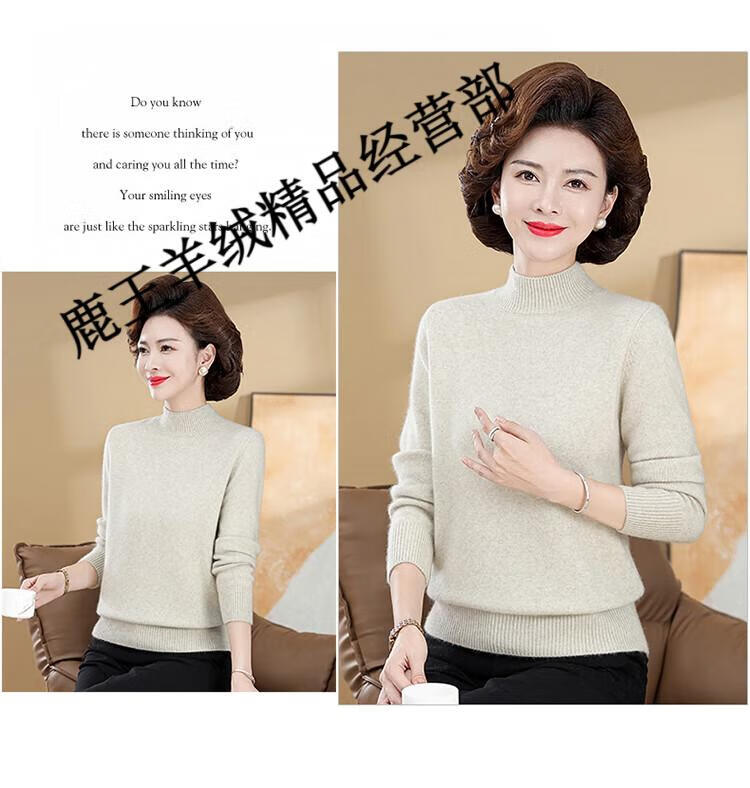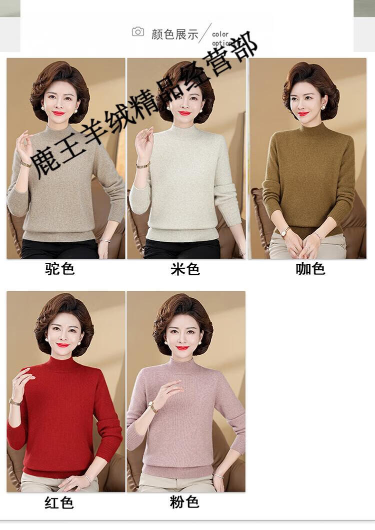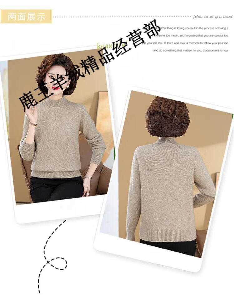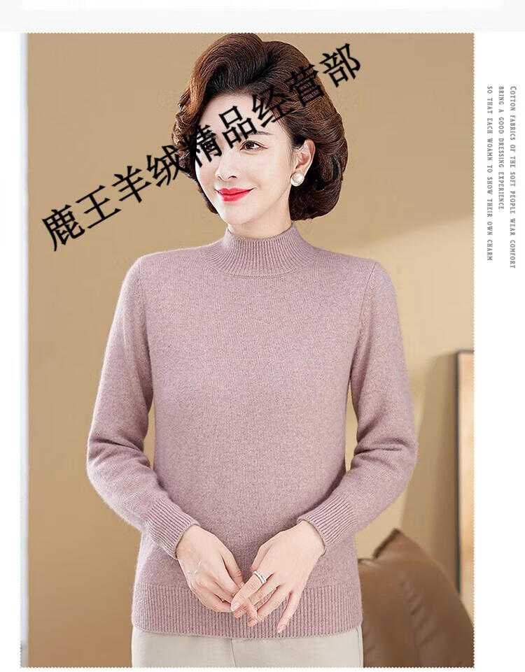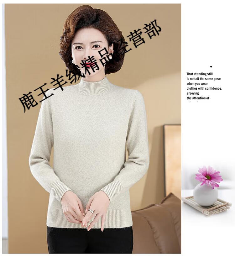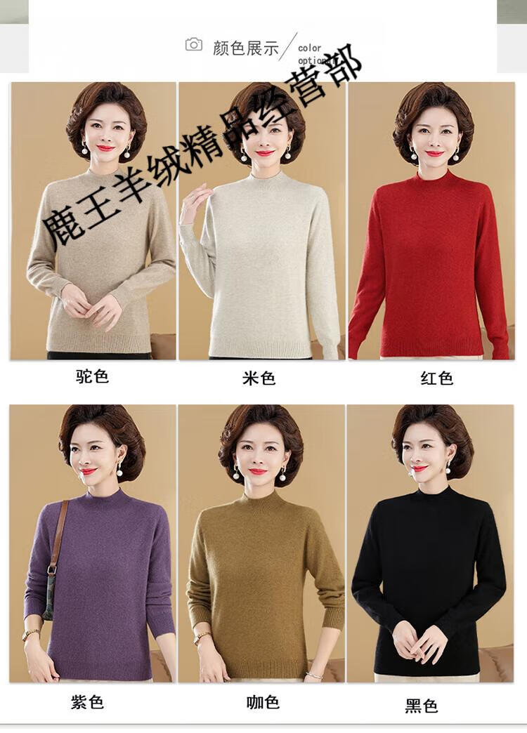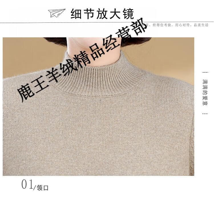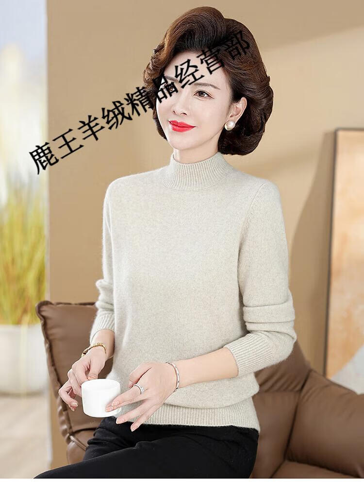 KING DEER Autumn and Winter New Middle-aged and Elderly Half-Turtle Collar Cashmere Sweater Women's Sweater Thick Bottoming Loose Knitted Large Size Short Bottoming Camel XL 115Jin Jin equals 0.5kg -130Jin Jin equals 0.5kg
