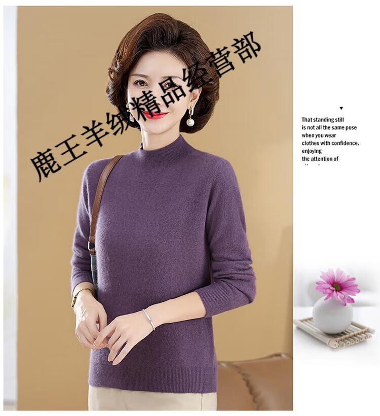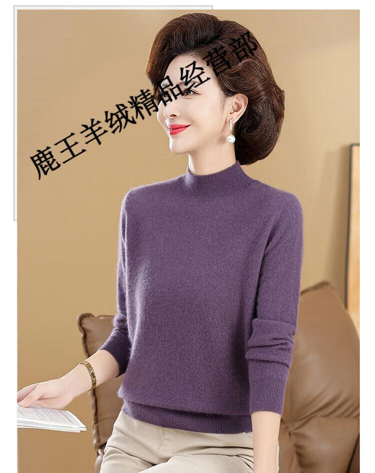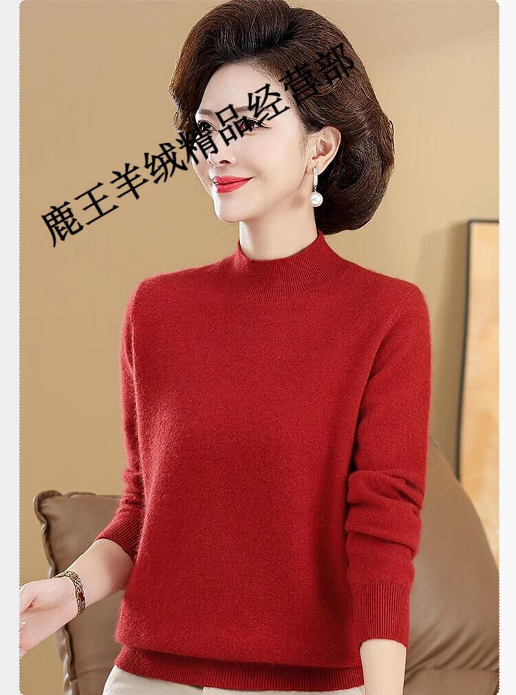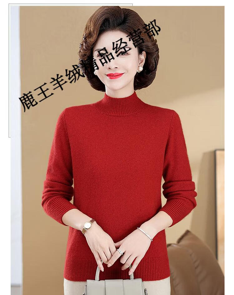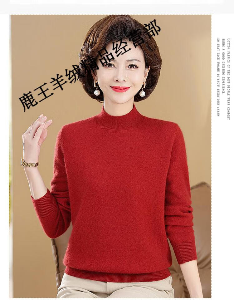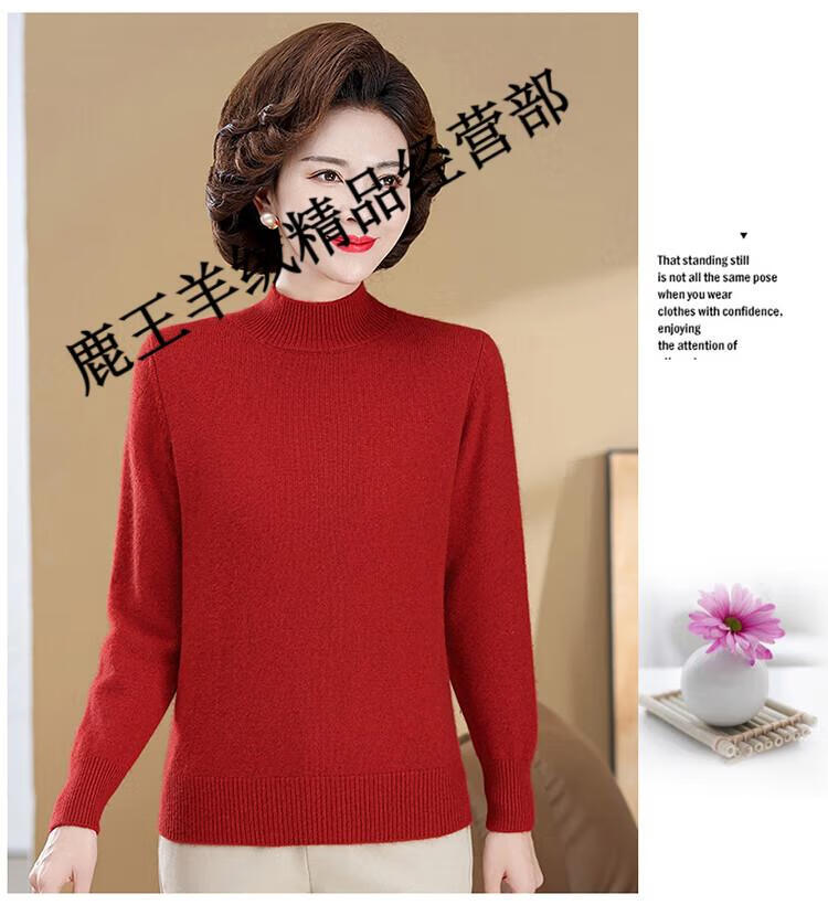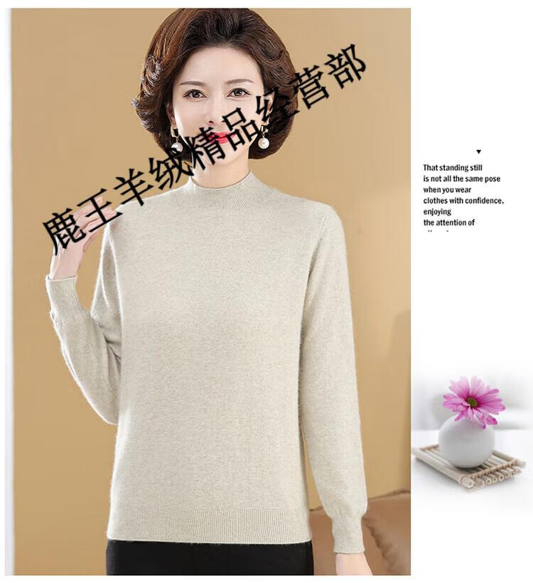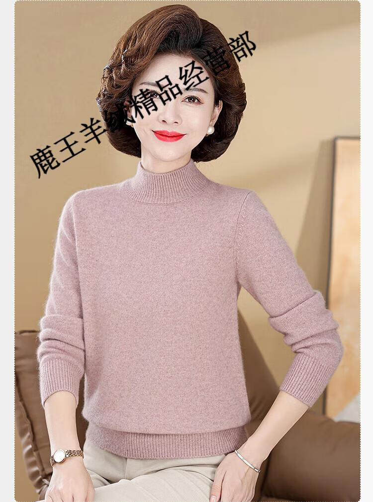 KING DEER Autumn and Winter New Middle-aged and Elderly Half-Turtle Collar Cashmere Sweater Women's Sweater Thick Bottoming Loose Knitted Large Size Short Bottoming Camel XL 115Jin Jin equals 0.5kg -130Jin Jin equals 0.5kg