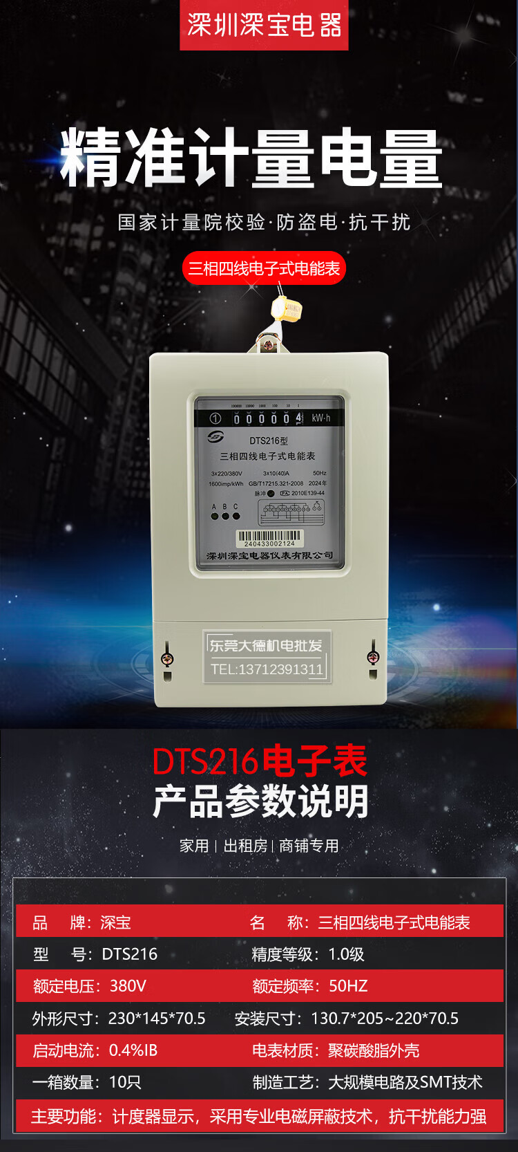 Shenbao electric meter 100A80A60A40A three-phase four-wire electronic meter 380V transformer meter 1.5-6A DTS216 1.5(6)A factory inspection needs to be used with a transformer
