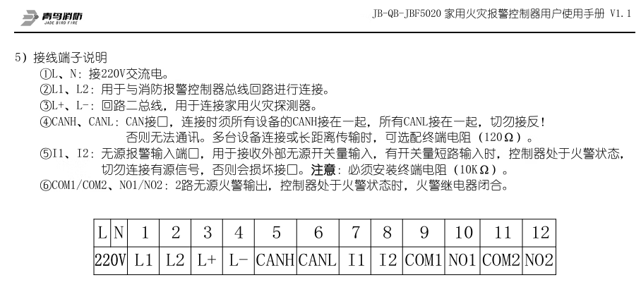 Beida Jade Bird household fire alarm controller wall-mounted Jade Bird JBF5023DC Jade Bird JB-QB-JBF5020 original