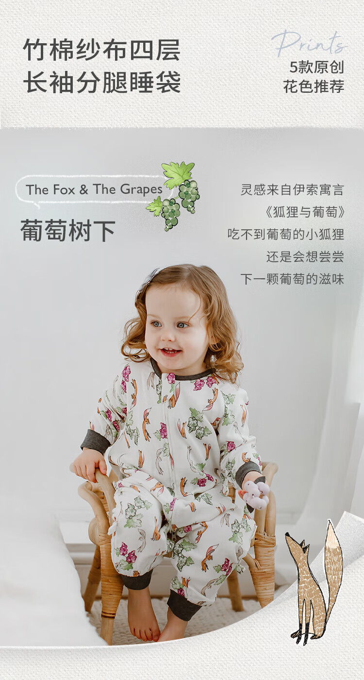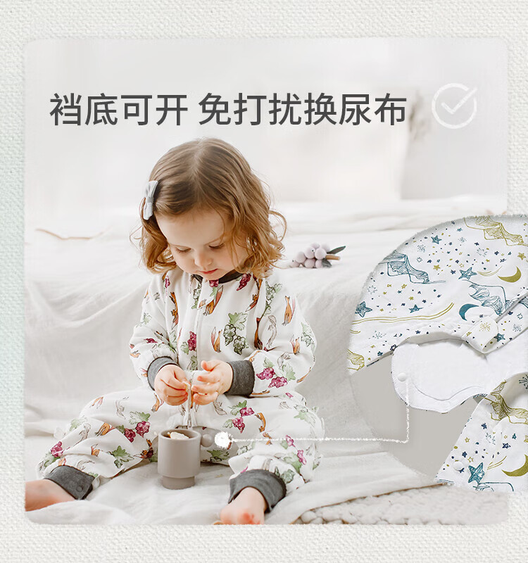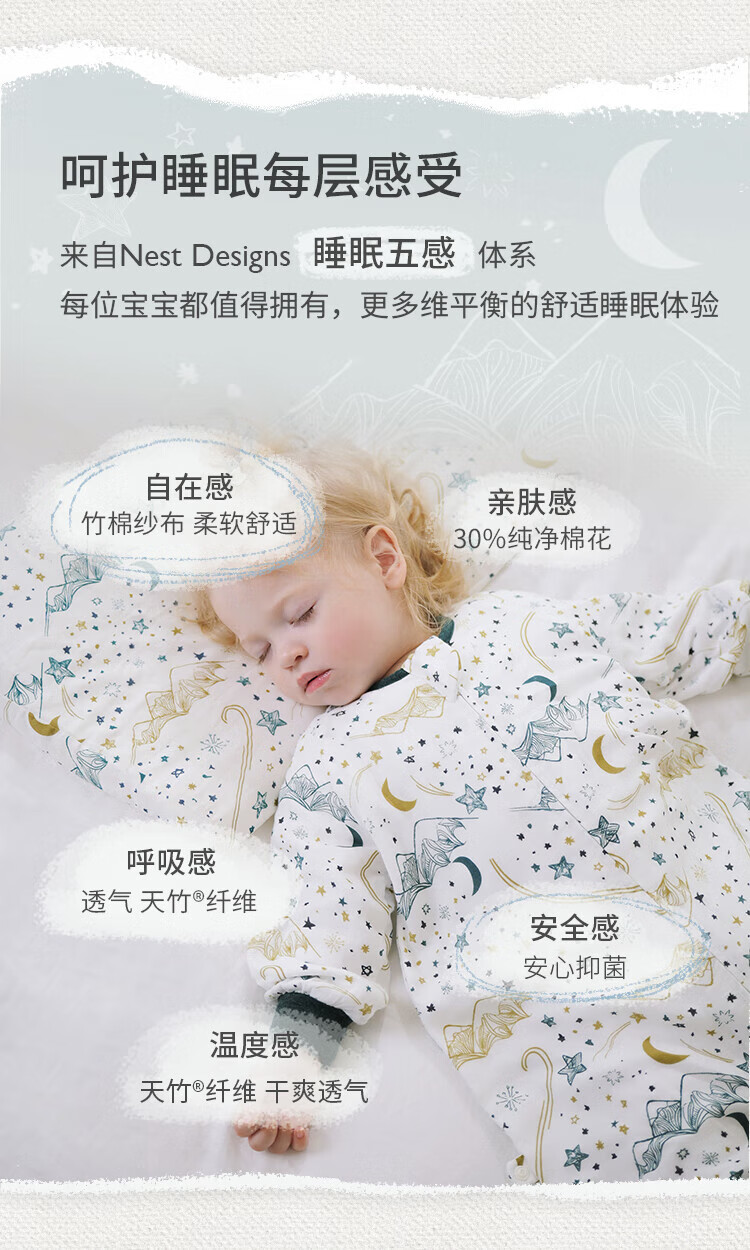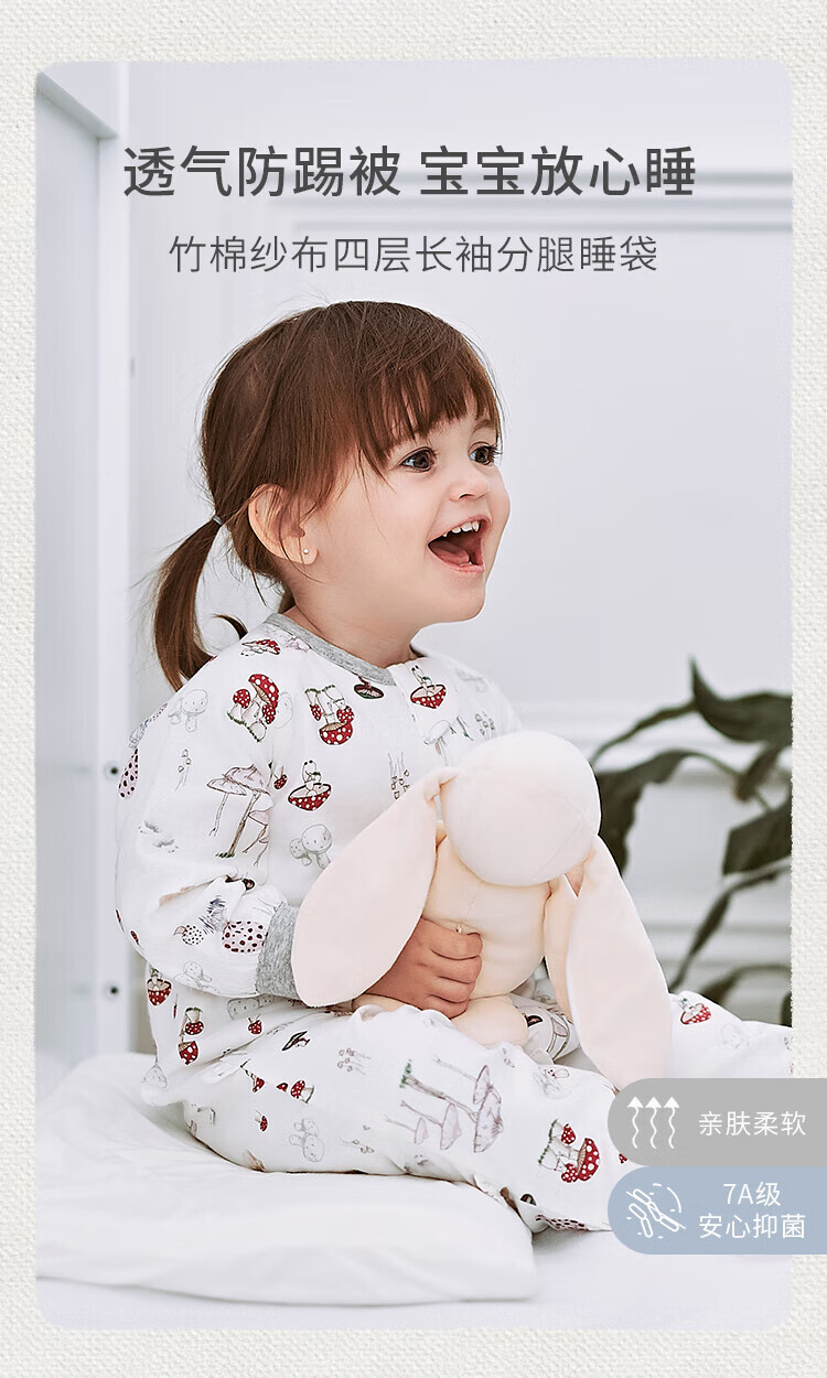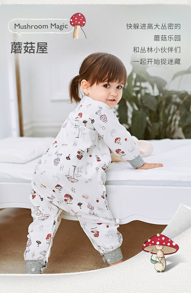 Nest designsdesigns baby sleeping bag infant spring and autumn four-layer double-layer bamboo cotton gauze baby split-leg sleeping bag 17554 mushroom house-double layer recommended room temperature 26-28 8070-80cm age 0 o'clock 6-1 o'clock 5 years old