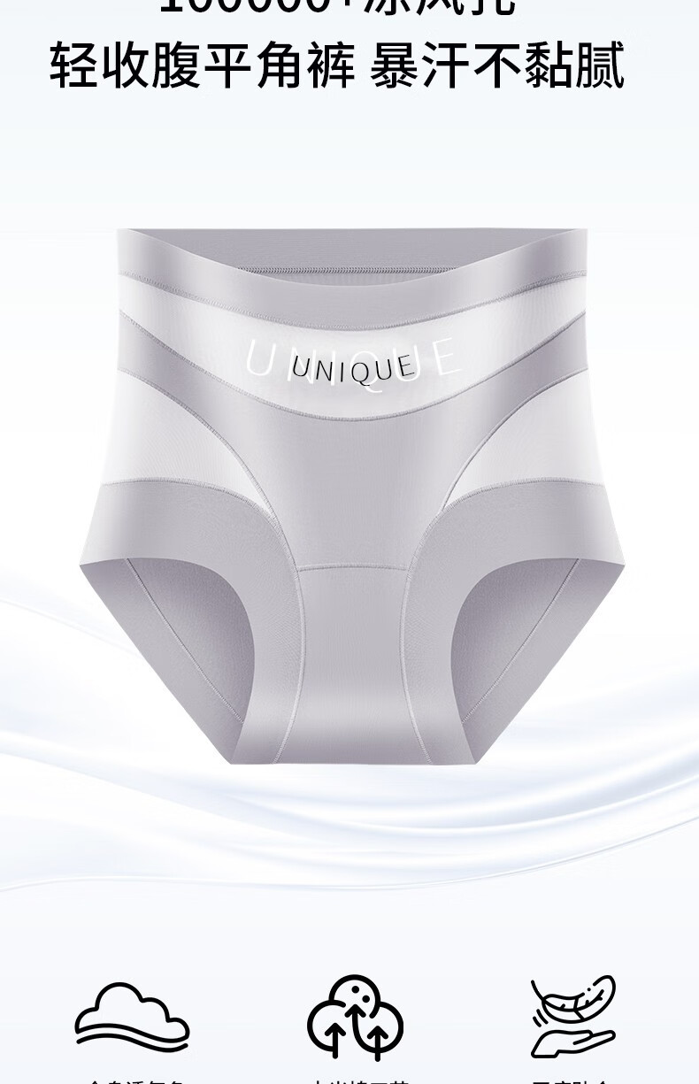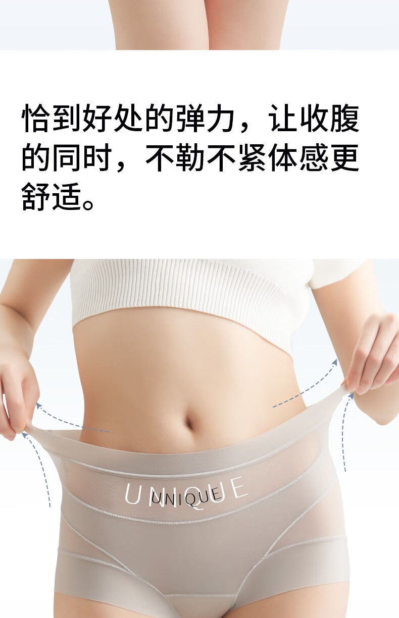 Herbal Primary Color High Waist Tummy Control Panties Women's 2025 New Thin Ice Silk Seamless Breathable Body Shaping Women's Boxer Briefs Light Green + Foundation Skin XL