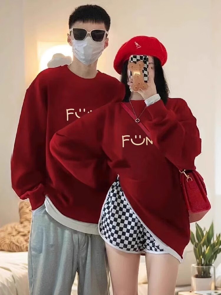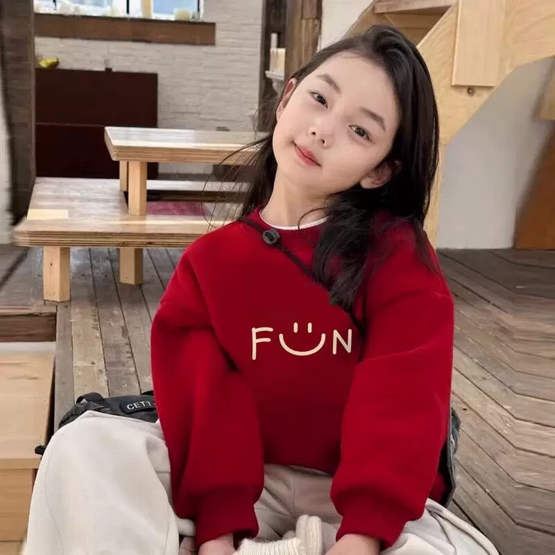 G.duck fried street parent-child outfit plus velvet sweatshirt for a family of three in autumn and winter mother-daughter outfit 2025 New Year baby New Year greeting clothes red (autumn style) 180 adult XL size 135Jin Jin is equal to 0.5kg -150Jin Jin is equal to 0.5kg