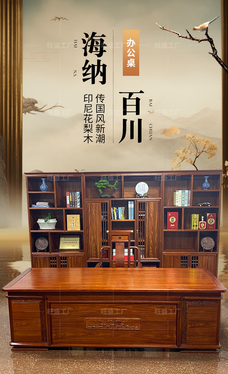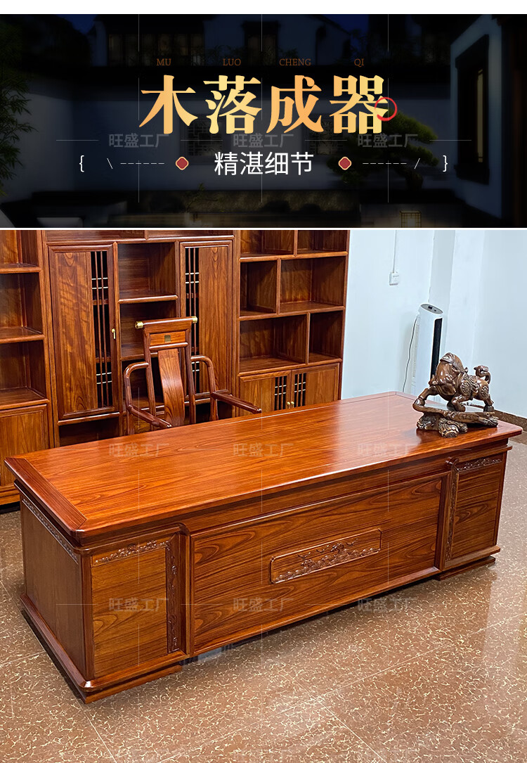 New Chinese style desk and bookcase combination all solid wood boss desk and chair rosewood executive desk desk office furniture rosewood color 2.2m desk