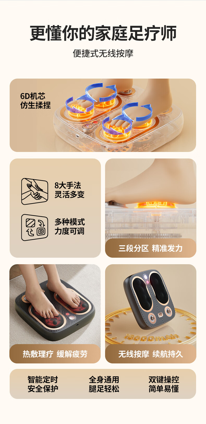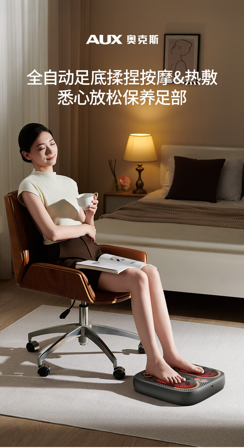 Oaks foot massage machine, leg massager, kneading and heating, fully automatic foot massager, kneading thighs and calves, foot acupoint massager, practical gift for parents and elders, Xiaomi White, simultaneous beating massage + simulated human hand kneading + constant temperature hot compress