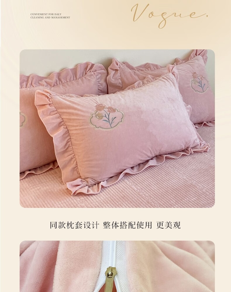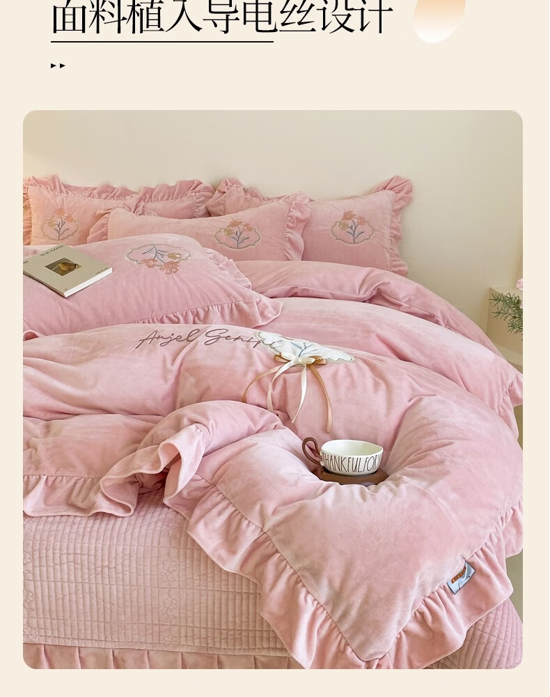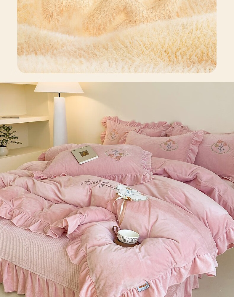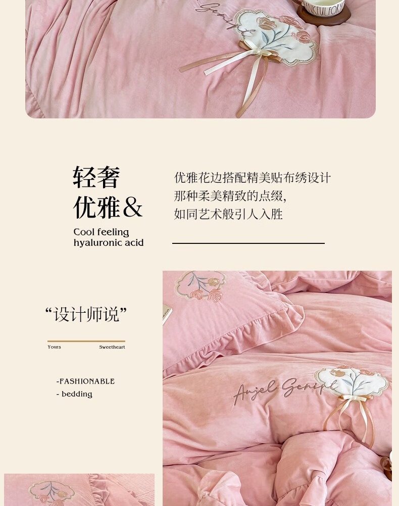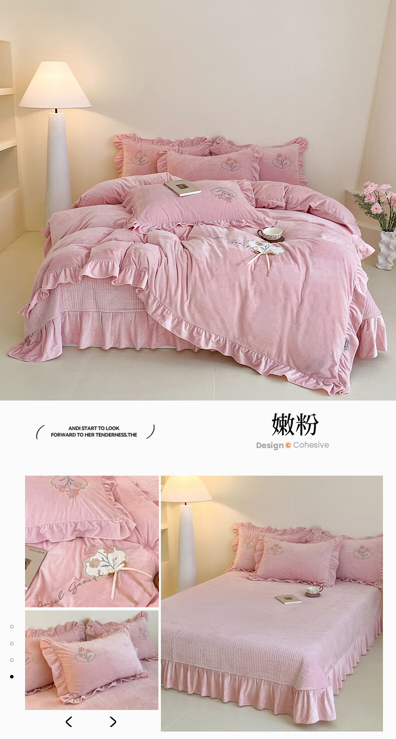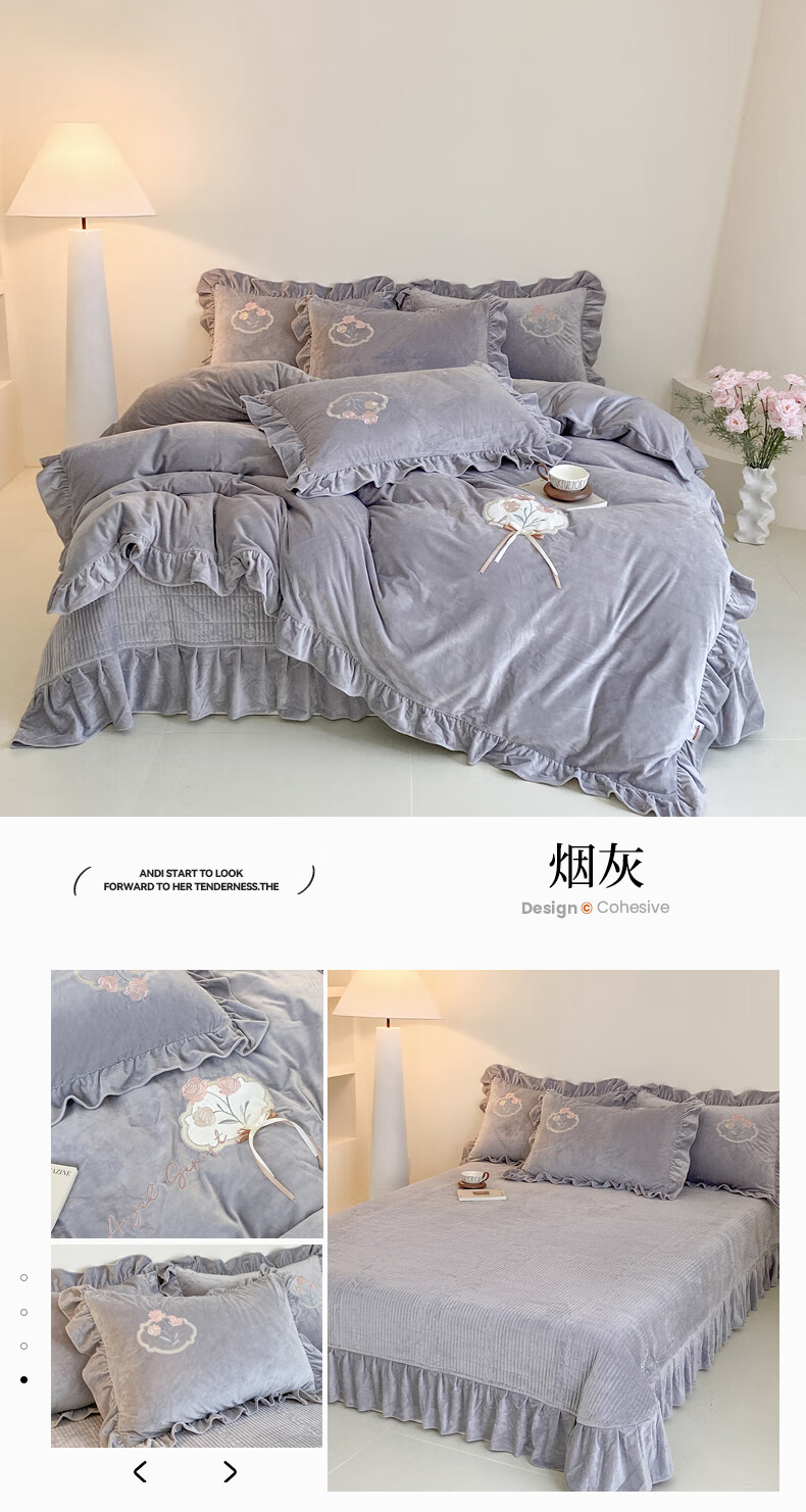 Hongdou 2025 new autumn and winter baby velvet bow patch embroidered bed cover style four-piece set light luxury elegant lace design bow patch embroidery - lake green four-piece set 1.5 bed cover style (quilt cover 200*230cm)