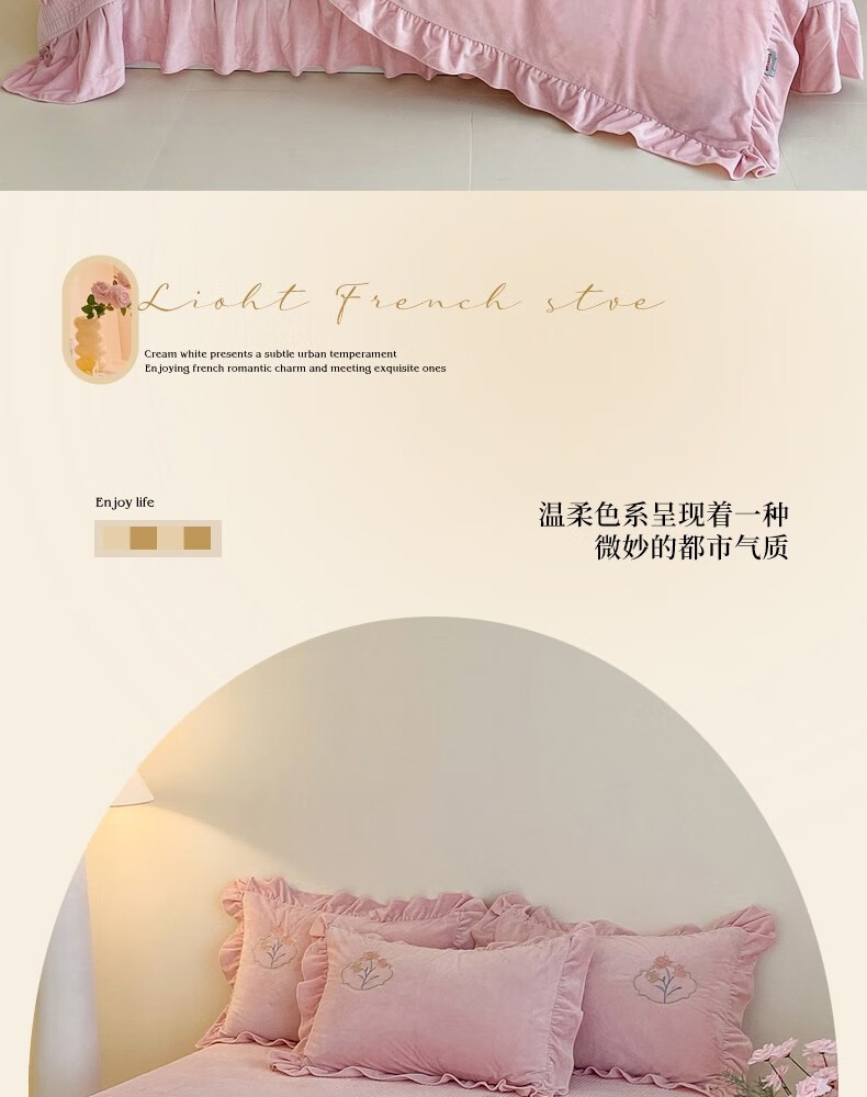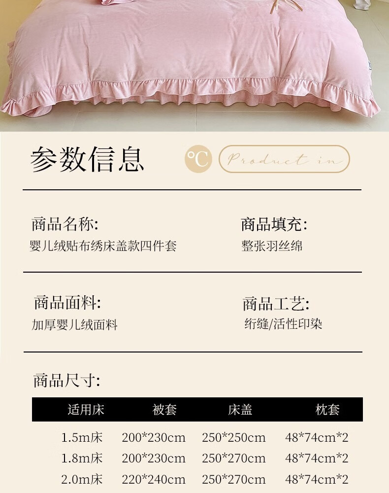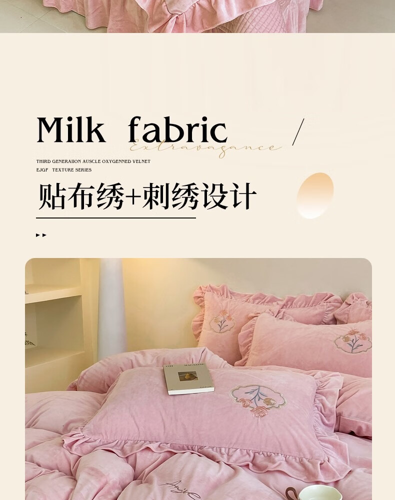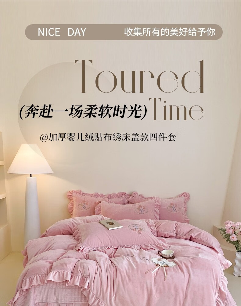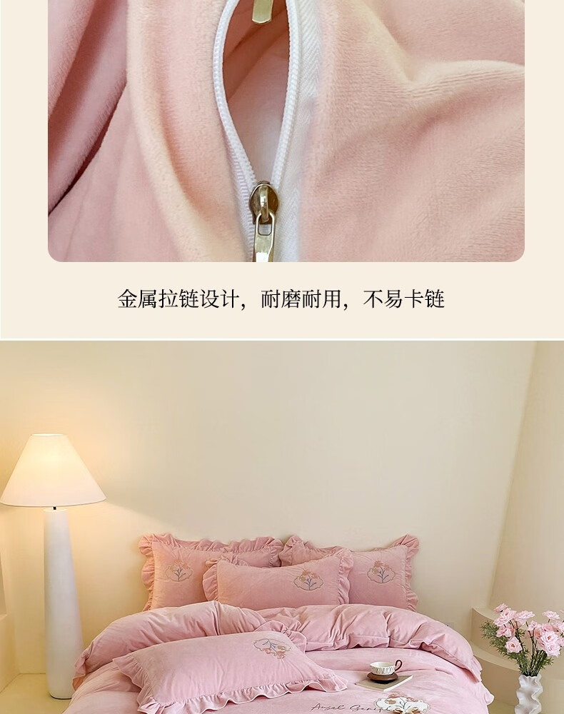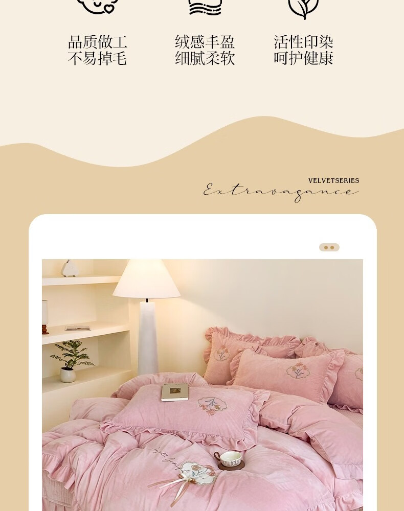 Hongdou 2025 new autumn and winter baby velvet bow patch embroidered bed cover style four-piece set light luxury elegant lace design bow patch embroidery - lake green four-piece set 1.5 bed cover style (quilt cover 200*230cm)