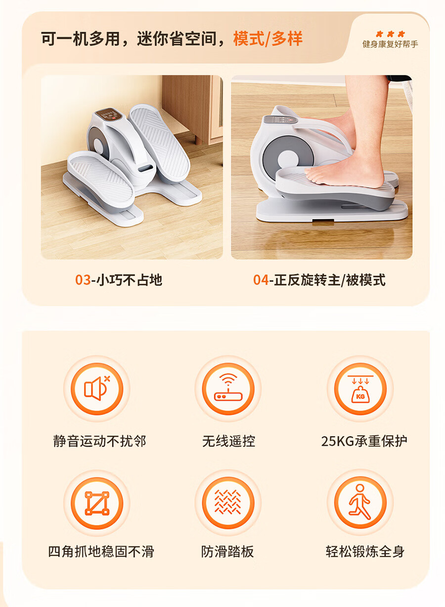 Cypler Electric Stepper Elliptical Machine Home Electric Rehabilitation Training Machine Multifunctional Silent Elderly Training Rehabilitation Instrument Black Gray - Wireless Remote Control + Active Passive Mode