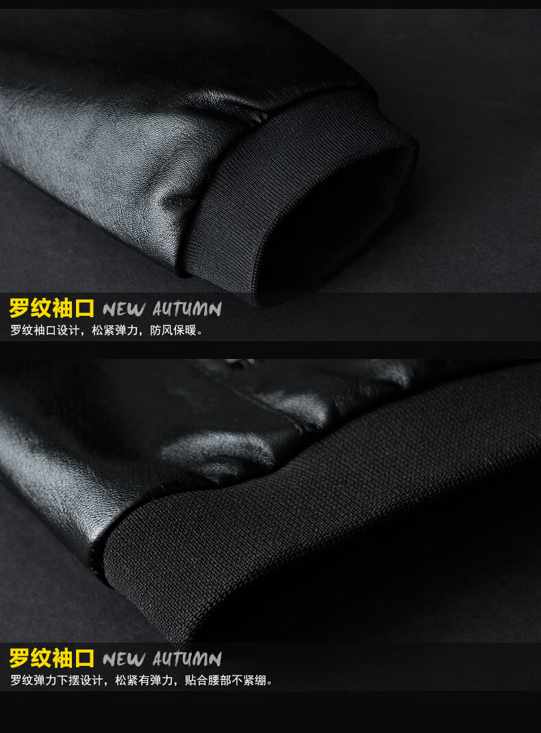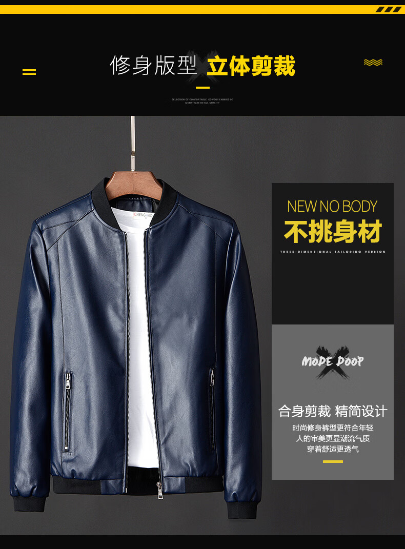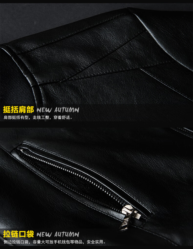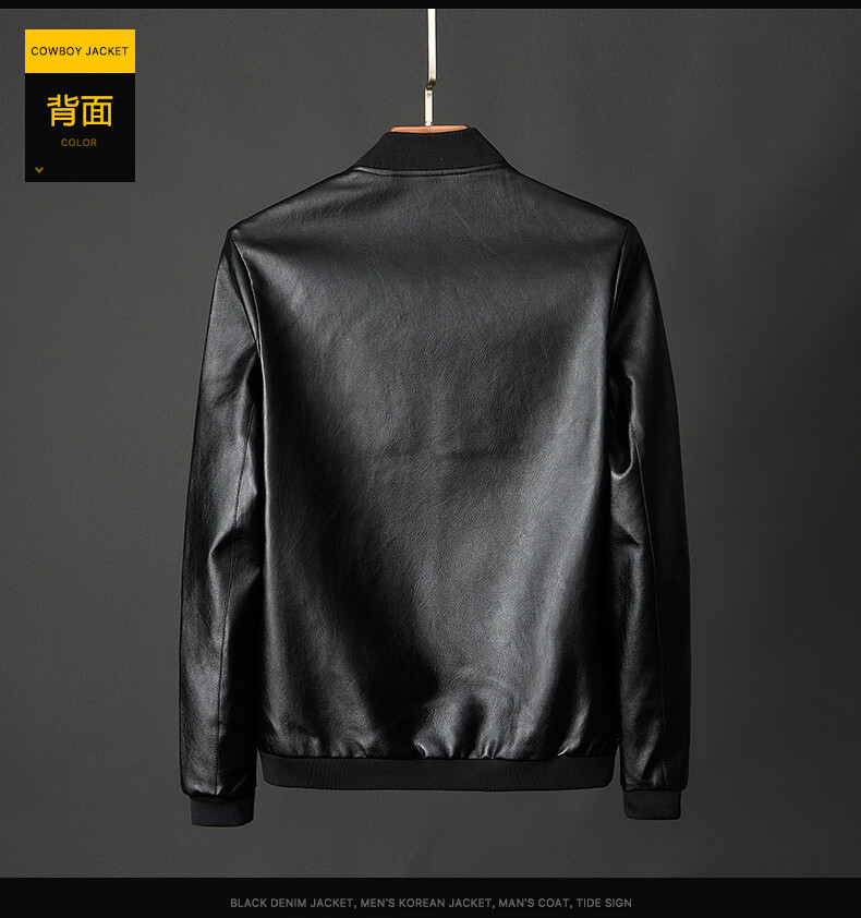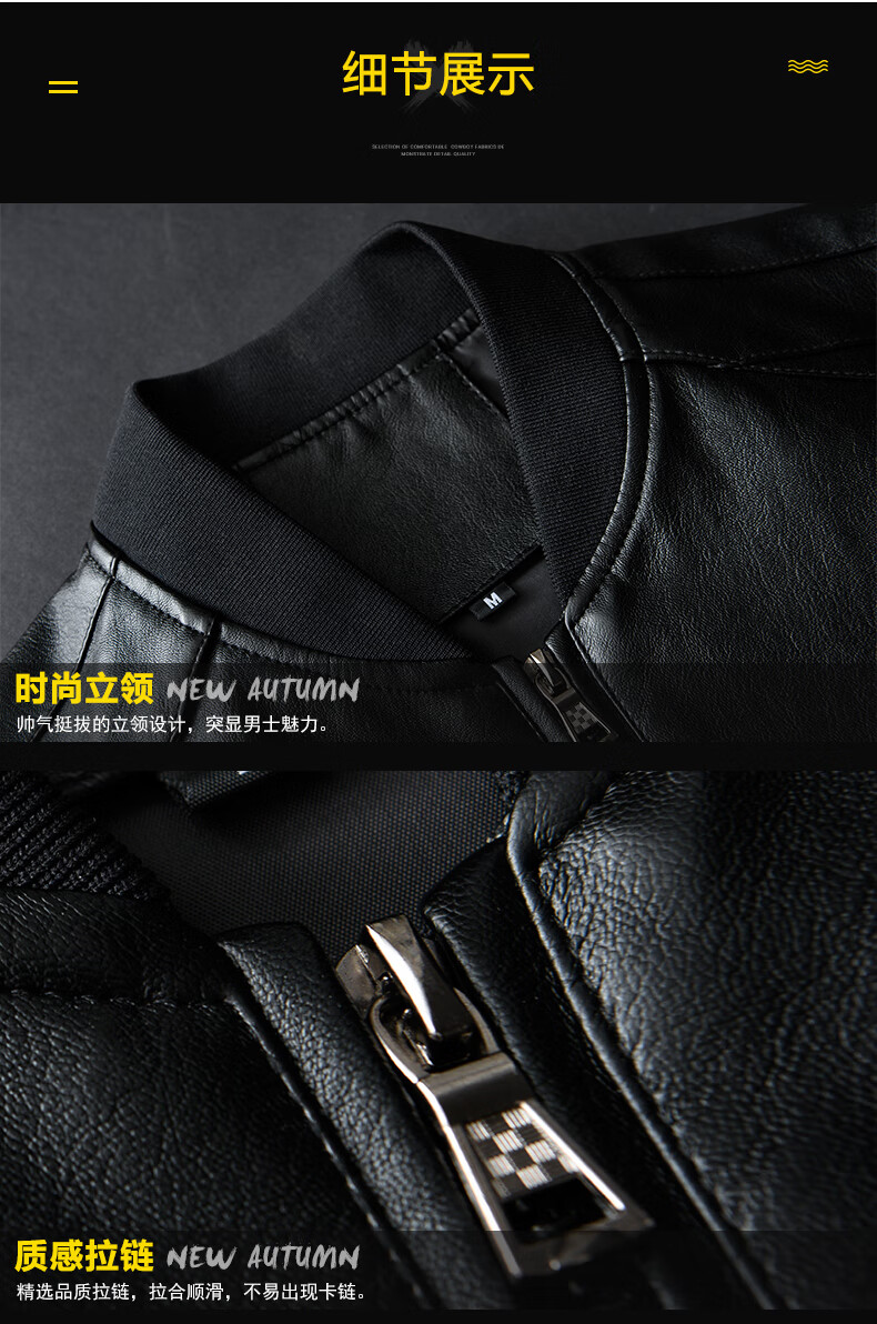 Woodpecker Jacket Men's Jacket Autumn and Winter New Casual Trend Fashionable Stand Collar Motorcycle Leather Jacket Versatile Slim and Handsome Black XL