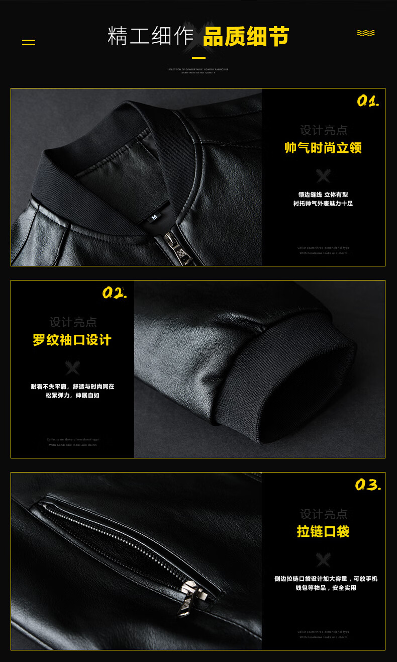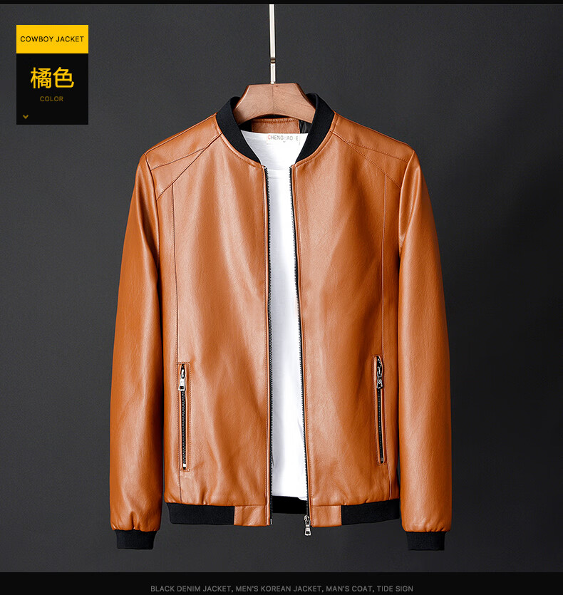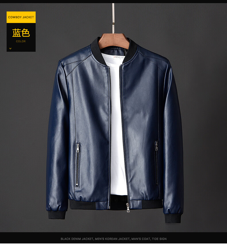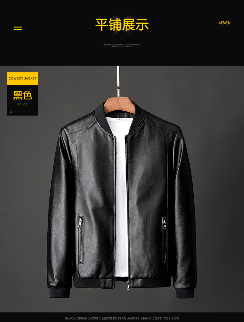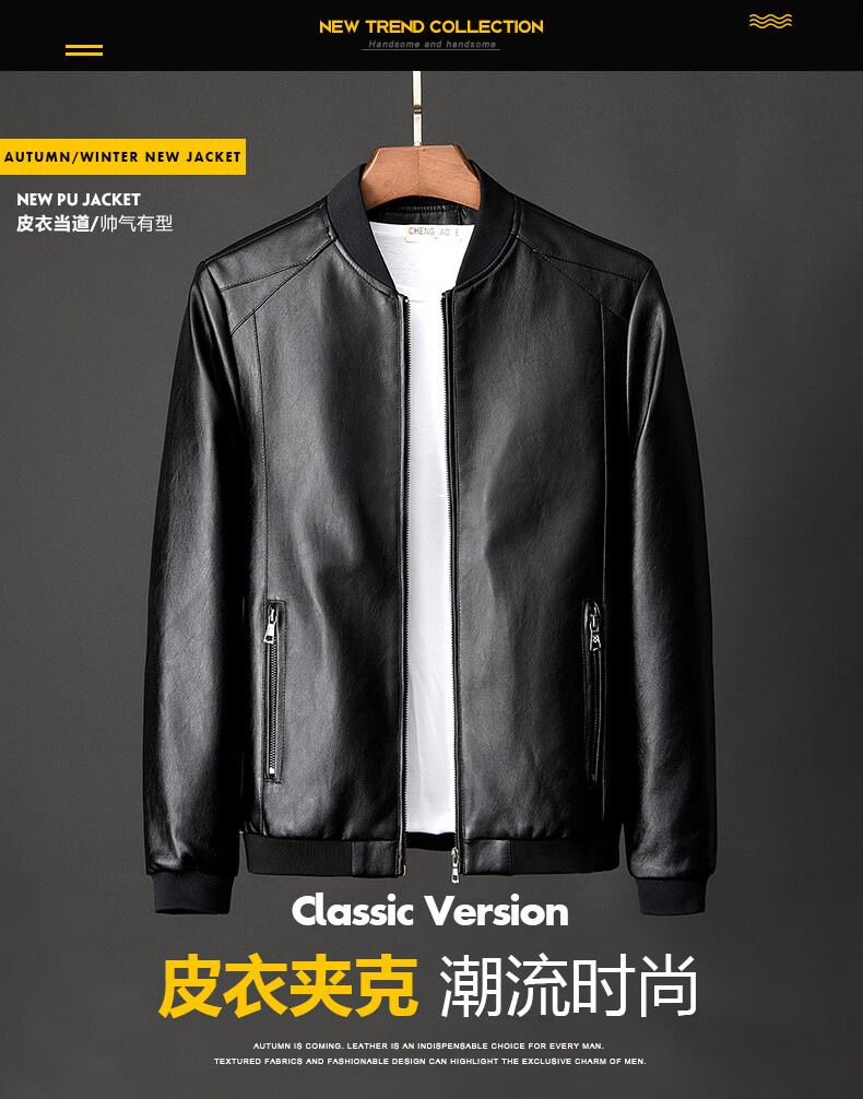Woodpecker Jacket Men's Jacket Autumn and Winter New Casual Trend Fashionable Stand Collar Motorcycle Leather Jacket Versatile Slim and Handsome Black XL