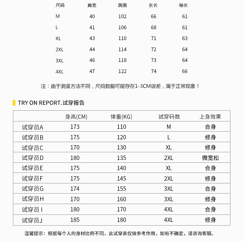China (cm) 165 / 88-90 170 / 96-98 175 / 108-110 180 / 118-122 185 / 126-130