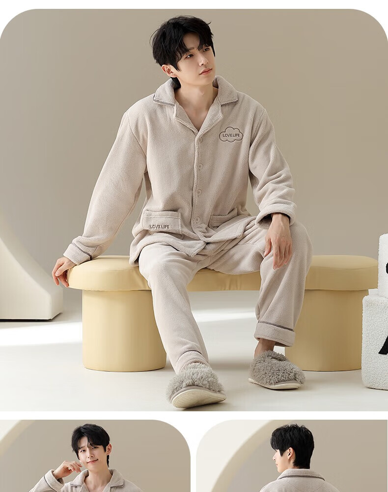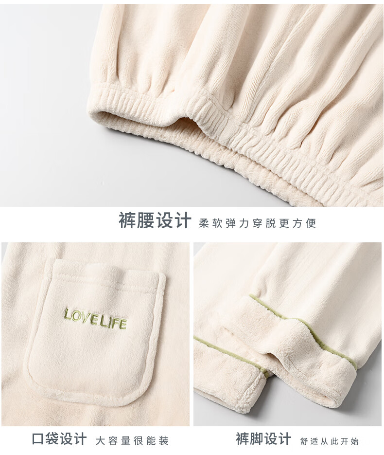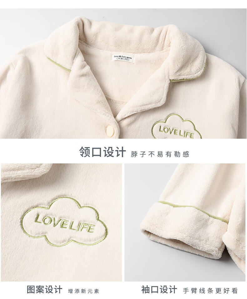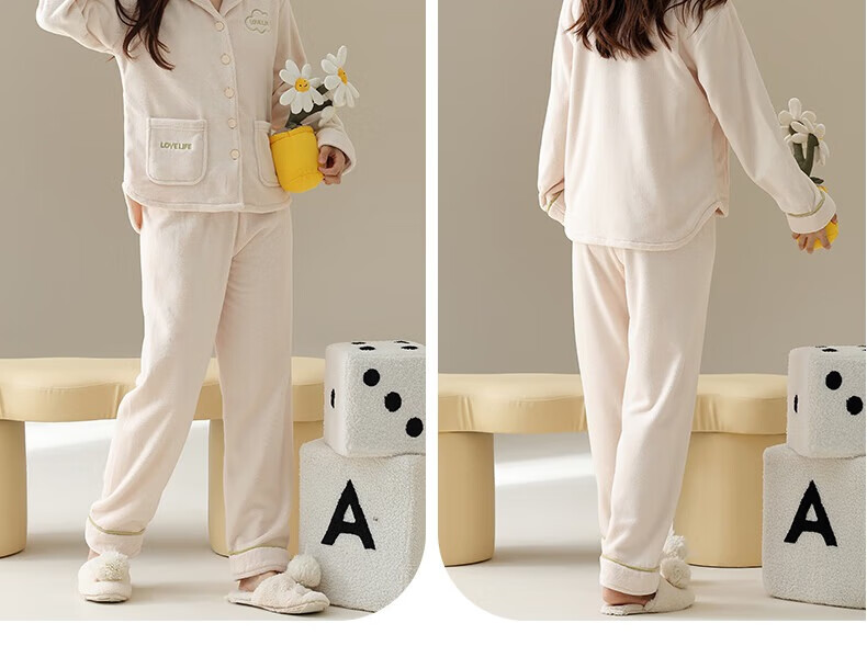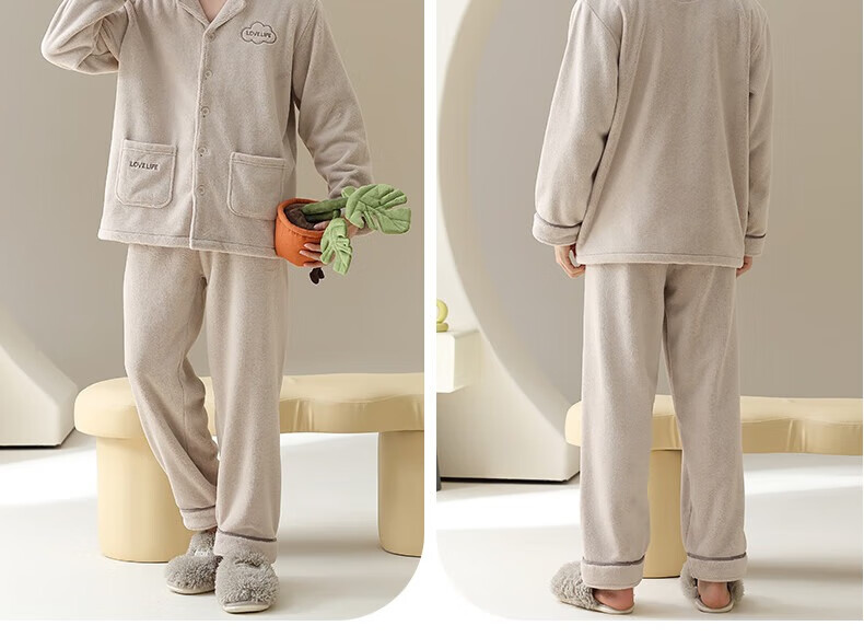 Congxin two sets of soft flannel couple pajamas for autumn and winter, thickened and velvet to keep warm, 25 years new men's and women's home clothes G 64956 light apricot + 75956 rice apricot L male + female M
