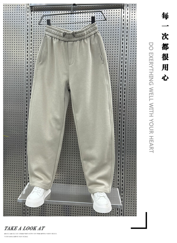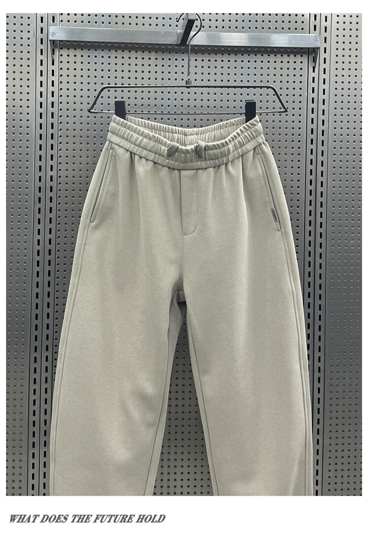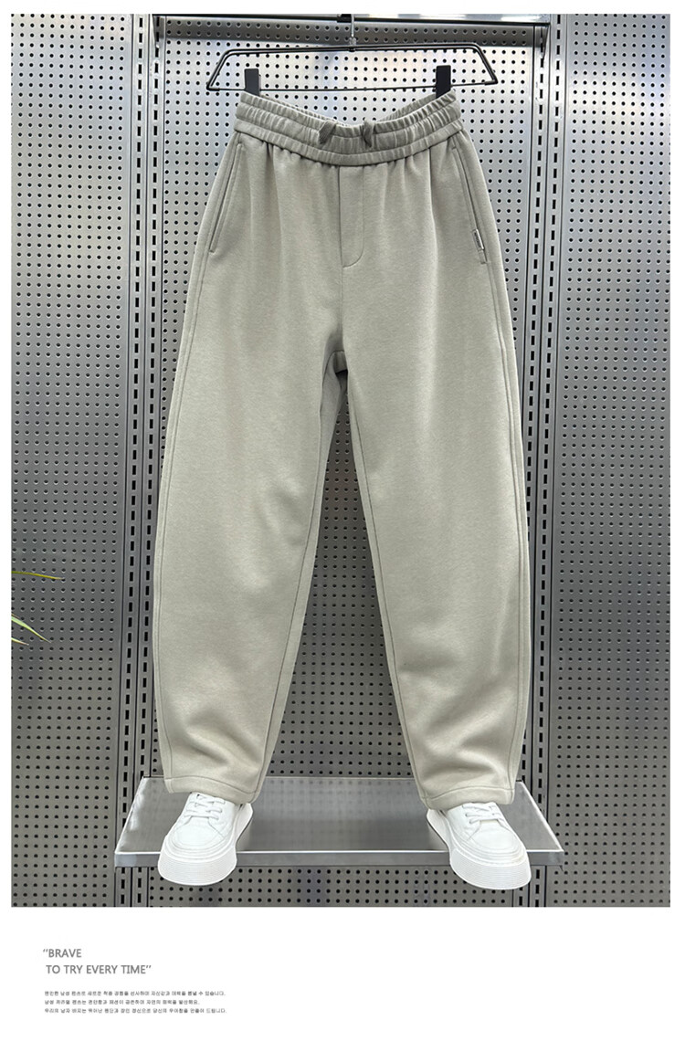 Kuraishi Kazuki 2025 Autumn New Casual Pants Men's Loose Velvet Sports Trendy Straight Sweatpants Solid Color Versatile Scimitar Pants Trendy Khaki XL