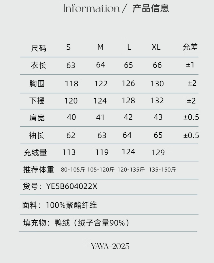 China (cm) 165 / 88-90 170 / 96-98 175 / 108-110 180 / 118-122 185 / 126-130