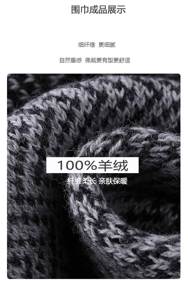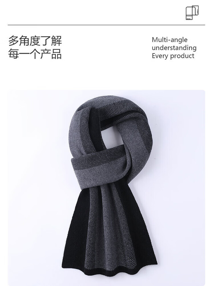 ERDOS Ordos 100% pure cashmere scarf men's winter thickened and warm Korean style plaid boys' wool scarf V2467 dark gray