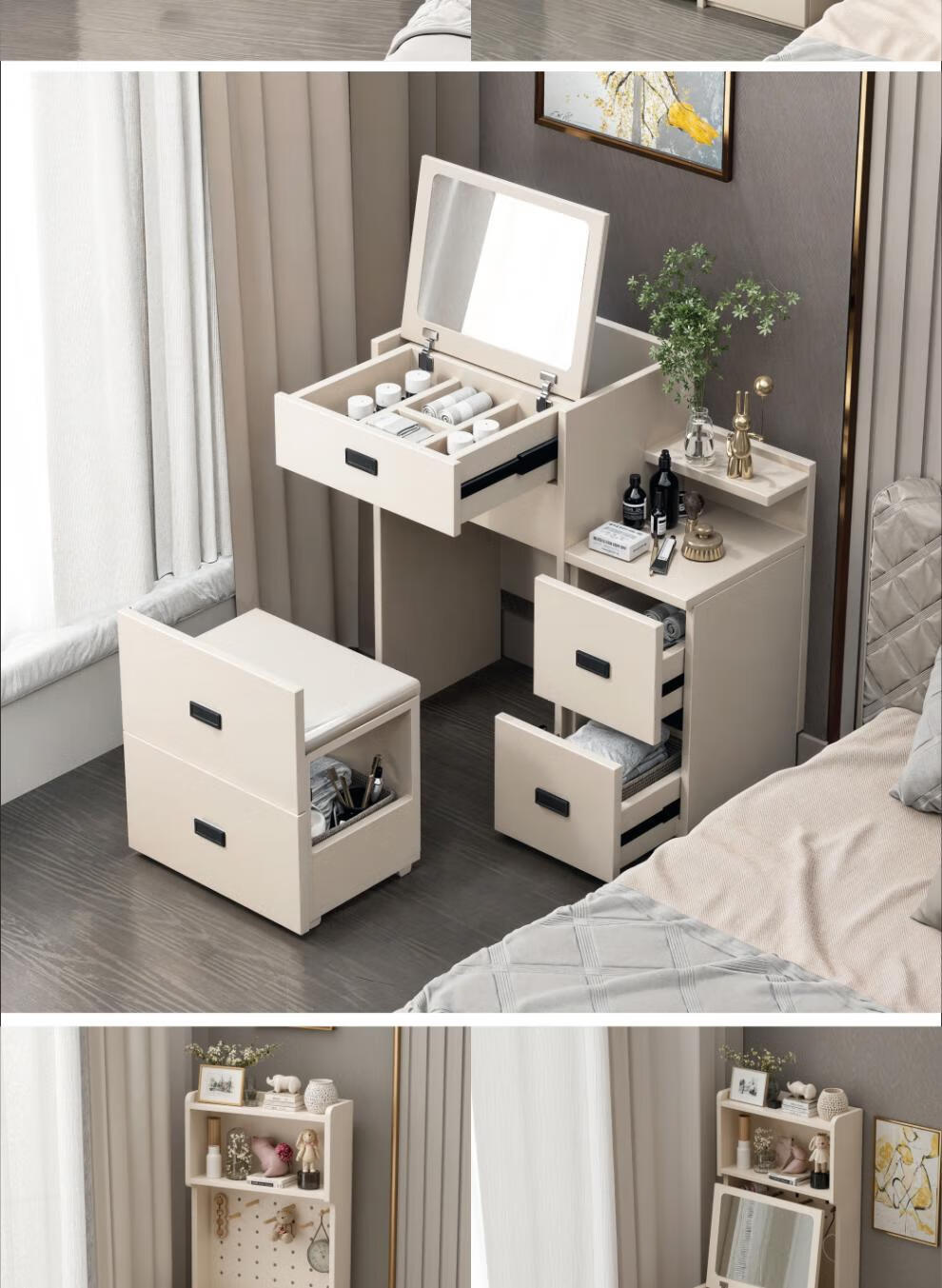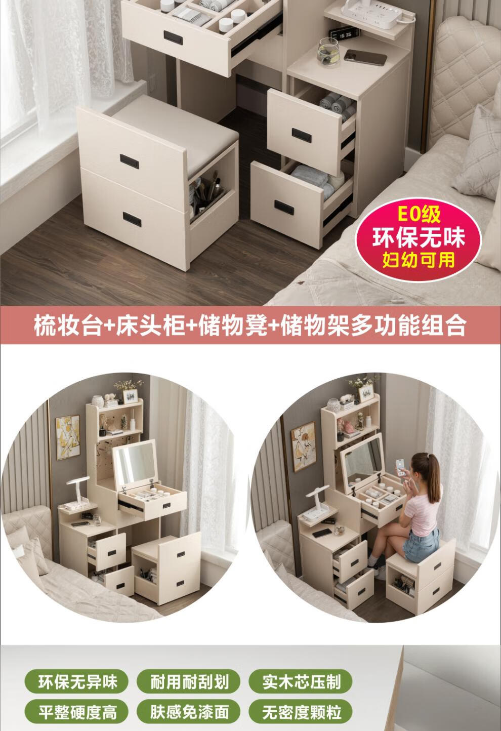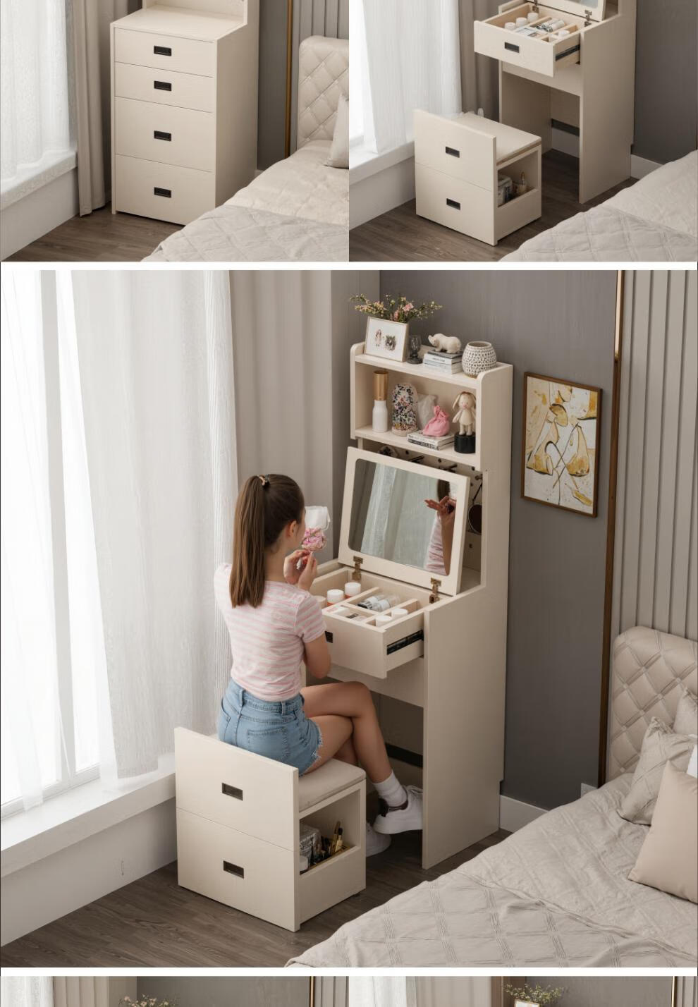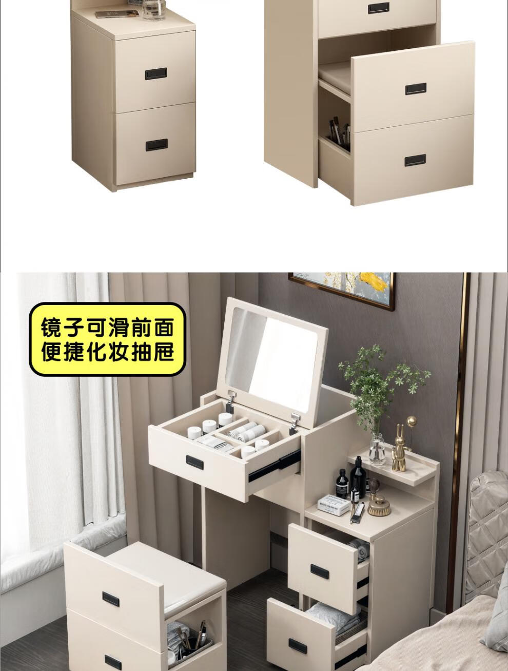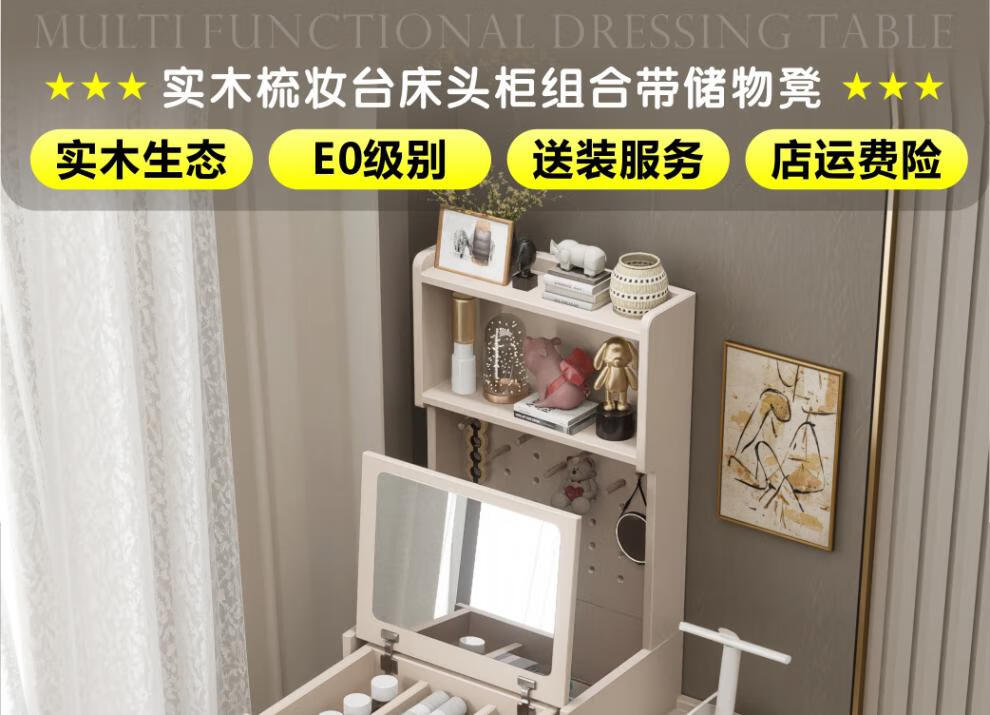 Visage Yuanshi Muyu solid wood dressing table and bedside table integrated small apartment flip-top cupboard bedroom dressing table modern simple warm white/width 45cm dressing table cabinet with stool home installation