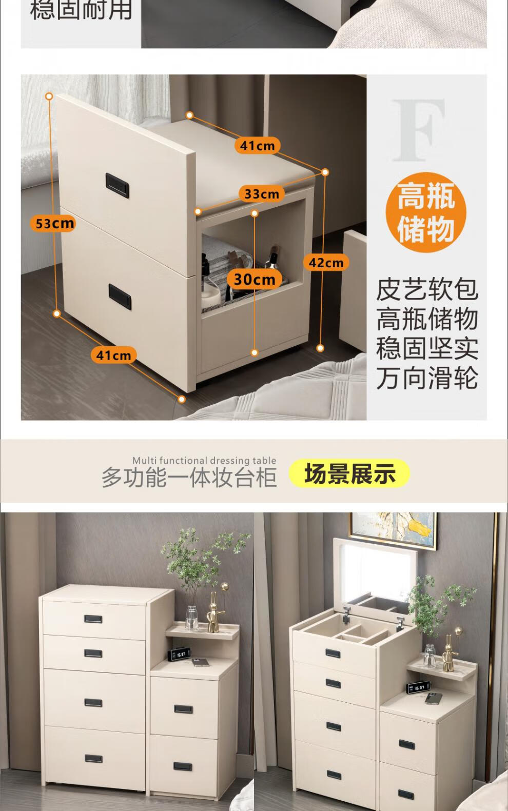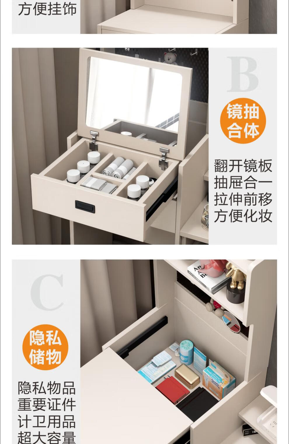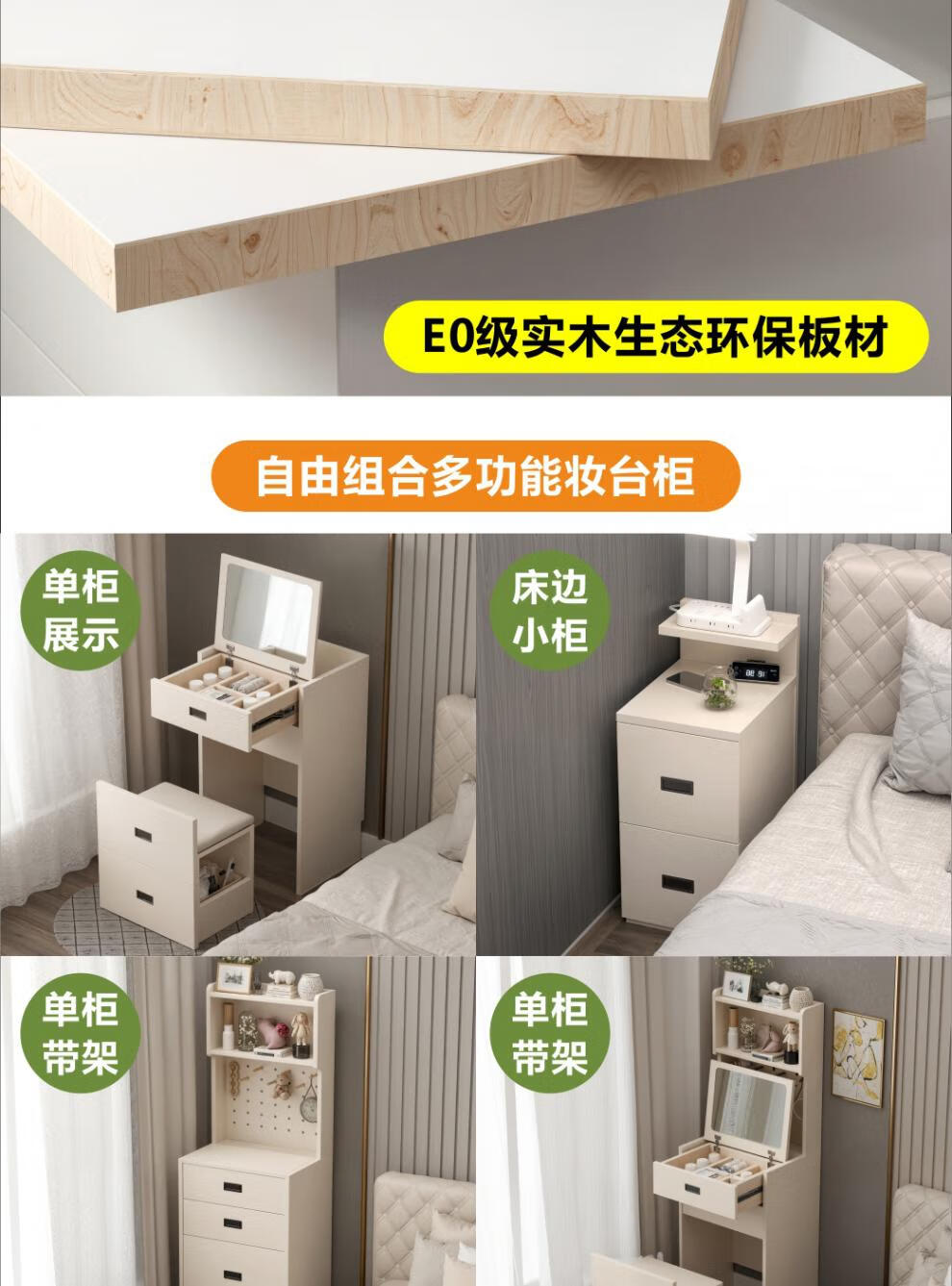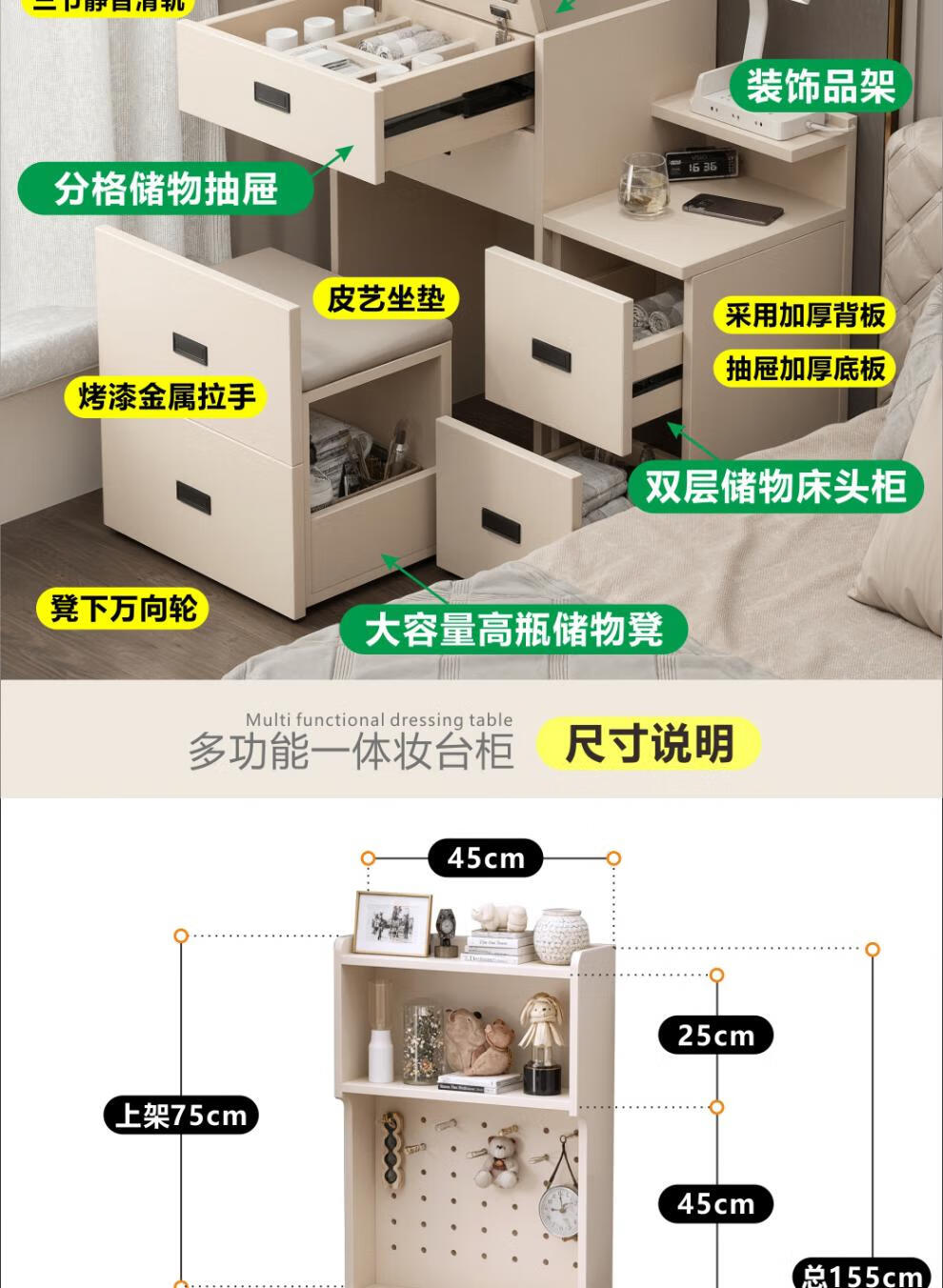 Visage Yuanshi Muyu solid wood dressing table and bedside table integrated small apartment flip-top cupboard bedroom dressing table modern simple warm white/width 45cm dressing table cabinet with stool home installation