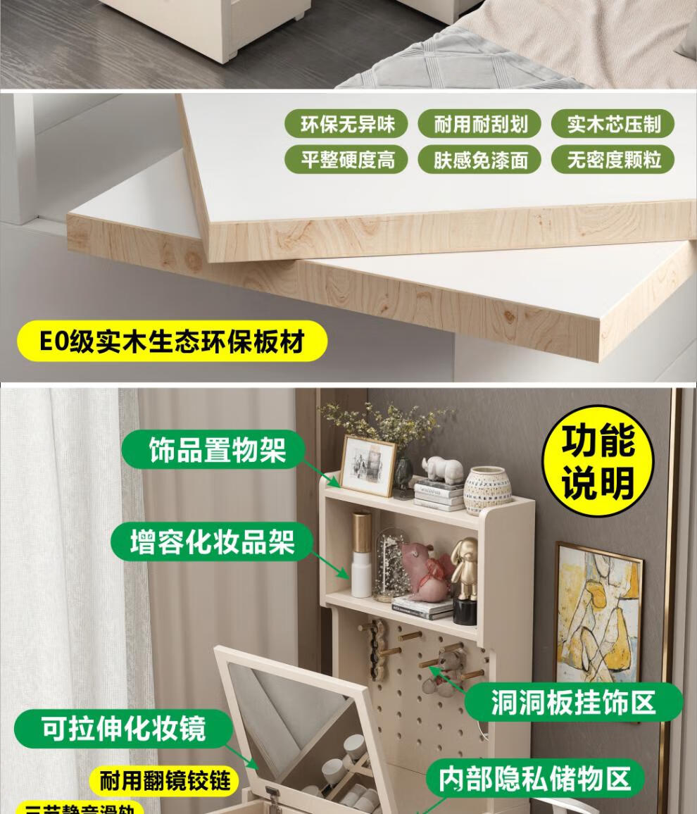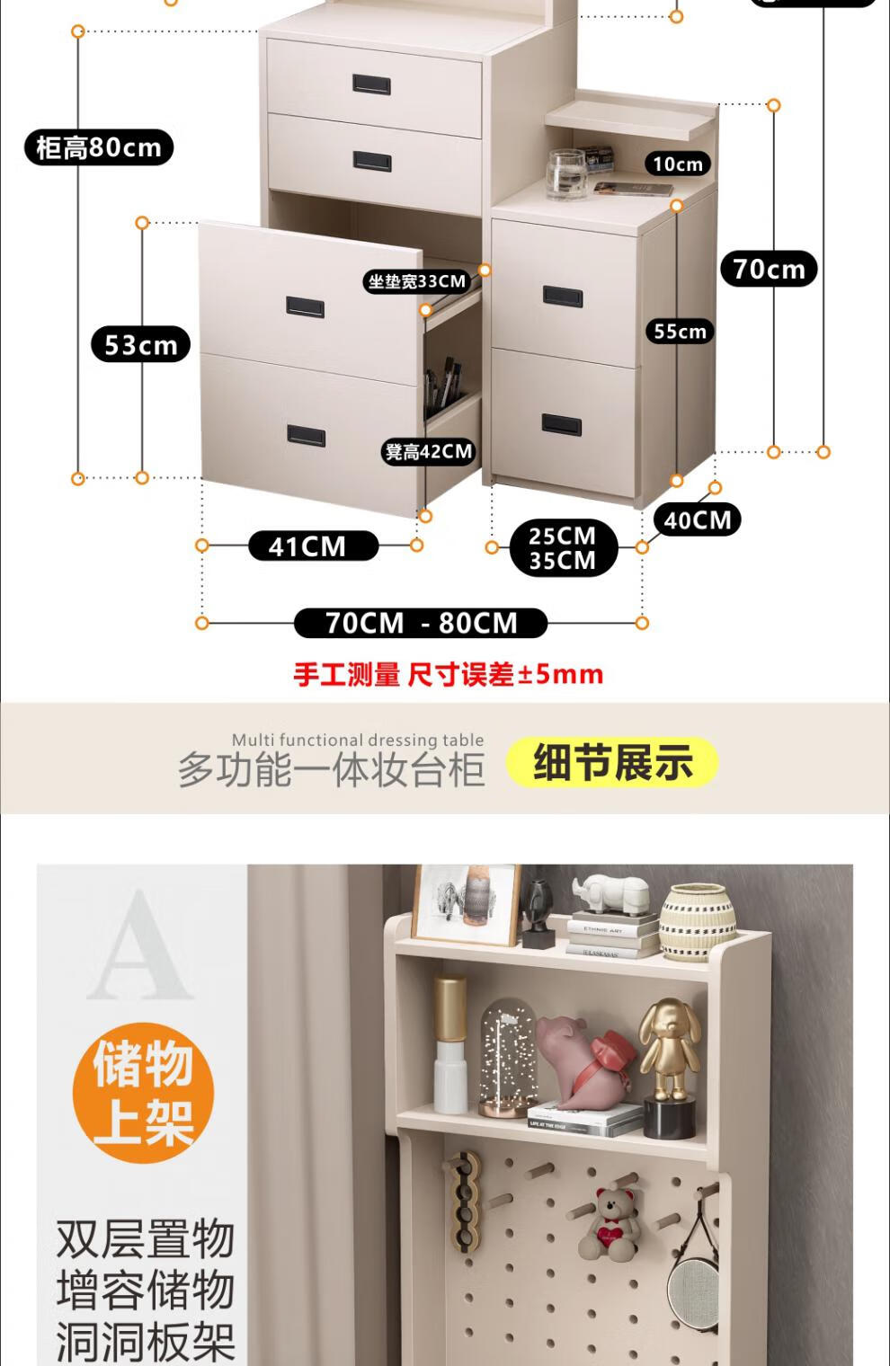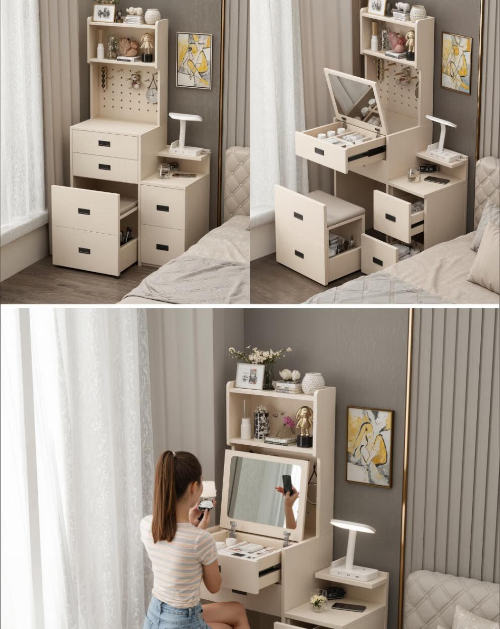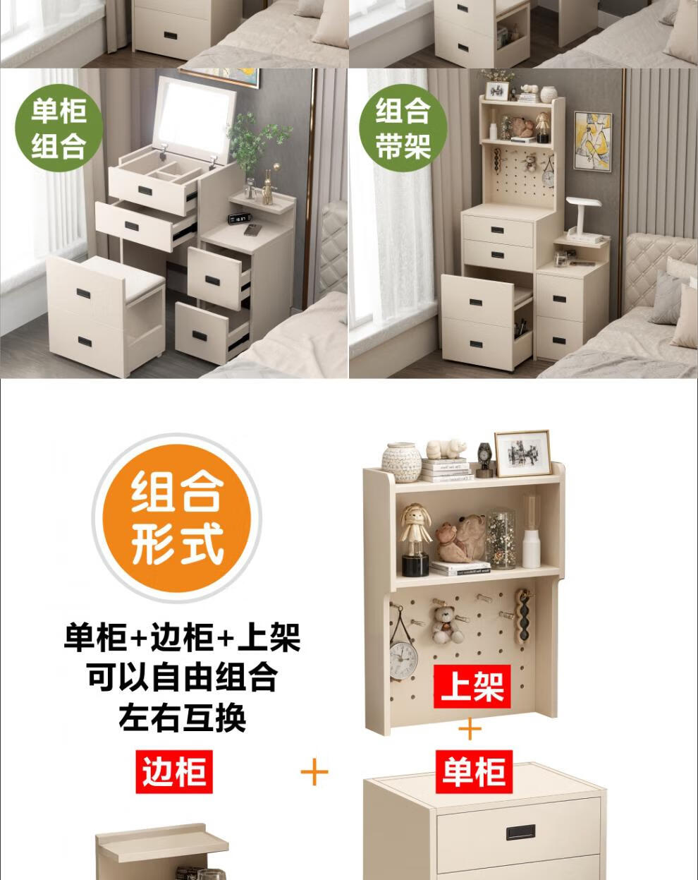 Visage Yuanshi Muyu solid wood dressing table and bedside table integrated small apartment flip-top cupboard bedroom dressing table modern simple warm white/width 45cm dressing table cabinet with stool home installation