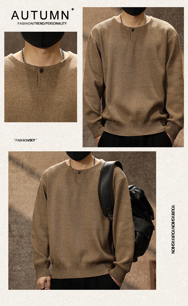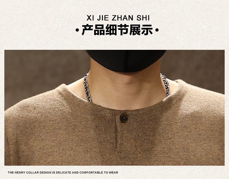 Ten Cranes American retro high-end Henry collar sweater men's autumn and winter trendy loose casual warm bottoming sweater Huaka (520g heavy knitted sweater) 2XL (160-180Jin Jin is equal to 0.5kg)