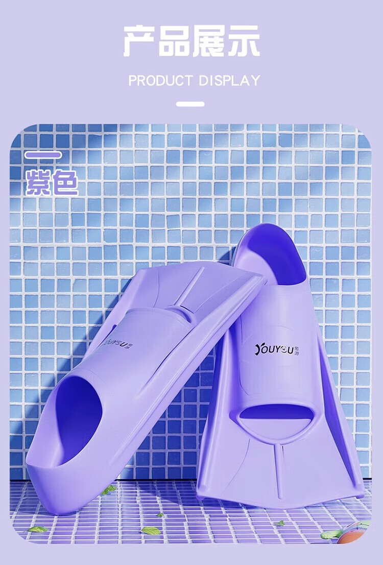 Miaopule swimming fins for men and women freestyle breaststroke silicone short fins for children's diving special lightweight training feet dark purple + portable mesh bag + nose clip earplugs M m